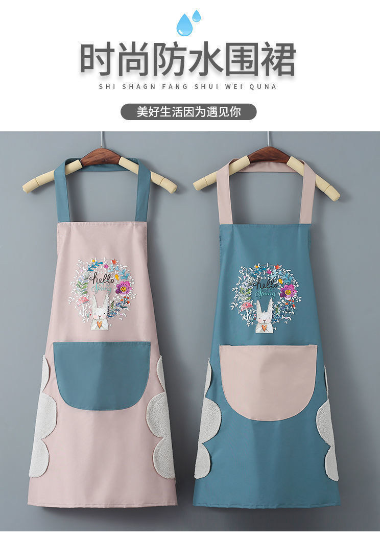 Cartoon Cute Wreath Rabbit Waterproof Coral Fleece Apron for Wiping Hands, Cooking, Doing Housework, Workwear