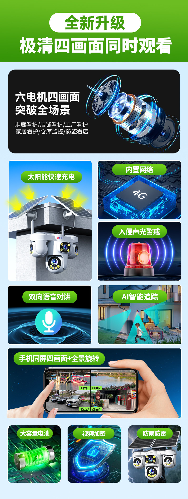 | Color Classification | 4g Solar Single Board-Aov New Technology [Free 99 Years of Traffic] + Ultra-Clear Dual Lens + 24H Video Recording + Induction Video + No Electricity or Network Recommendation + Fast Low-Light Power Generation + Mobile Phone Remote Monitoring,4g Solar Dual Panel-Aov New Technology [Free 99 Years of Traffic] + Ultra-Clear Dual Lens + 24H Video Recording + Induction Video + No Electricity or Network Recommendation + Fast Low-Light Power Generation + Mobile Phone Remote Monitoring,4g Solar Single Board-Aov New Technology [Free 99-Year Traffic] + Rotatable Ultra-Clear Three Lenses + 24H Video Recording + Induction Video + No Electricity or Network Recommendation + Fast Low-Light Power Generation + Mobile Phone Remote Monitoring,4g Solar Dual Panel-Aov New Technology [Free 99-Year Traffic] + Rotatable Ultra-Clear Three Lenses + 24H Video Recording + Induction Video + No Electricity or Network Recommended + Fast Low-Light Power Generation + Mobile Phone Remote Monitoring,4g Solar Single Board-Aov New Technology [Free 99 Years of Traffic + 6 Motors + Three Lenses and Three Screens] 24H Video Recording + Induction Video Recording + No Electricity and No Network Recommendation + Fast Low-Light Power Generation + Mobile Phone Remote Monitoring,4g Solar Dual Panel-Aov New Technology [Free 99 Years of Traffic + 6 Motors + Three Lenses and Three Screens] 24H Video Recording + Induction Video + No Electricity and No Network Recommendation + Fast Low-Light Power Generation + Mobile Phone Remote Monitoring,4g Solar Single Board-Aov New Technology [Free 99 Years of Traffic + 6 Motors + Four Lenses and Four Screens] 24H Video Recording + Induction Video + No Electricity and No Network Recommendation + Fast Low-Light Power Generation + Mobile Phone Remote Monitoring,4g Solar Dual Panel-Aov New Technology [Free 99 Years of Traffic + 6 Motors + Four Lenses and Four Screens] 24H Video Recording + Induction Video + No Electricity and No Network Recommendation + Fast Low-Light Power Generation + Mobile Phone Remote Monitoring |