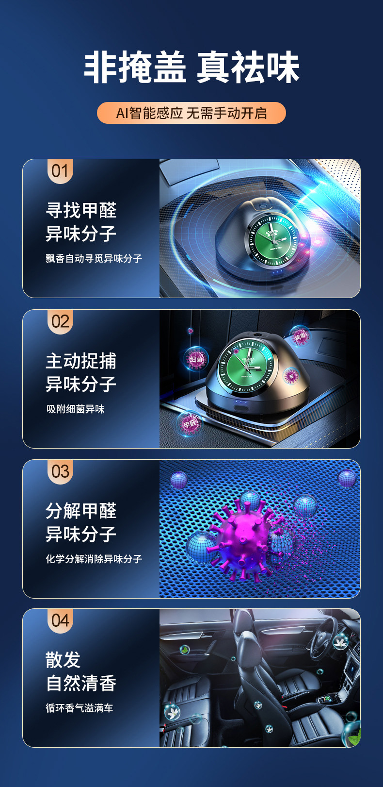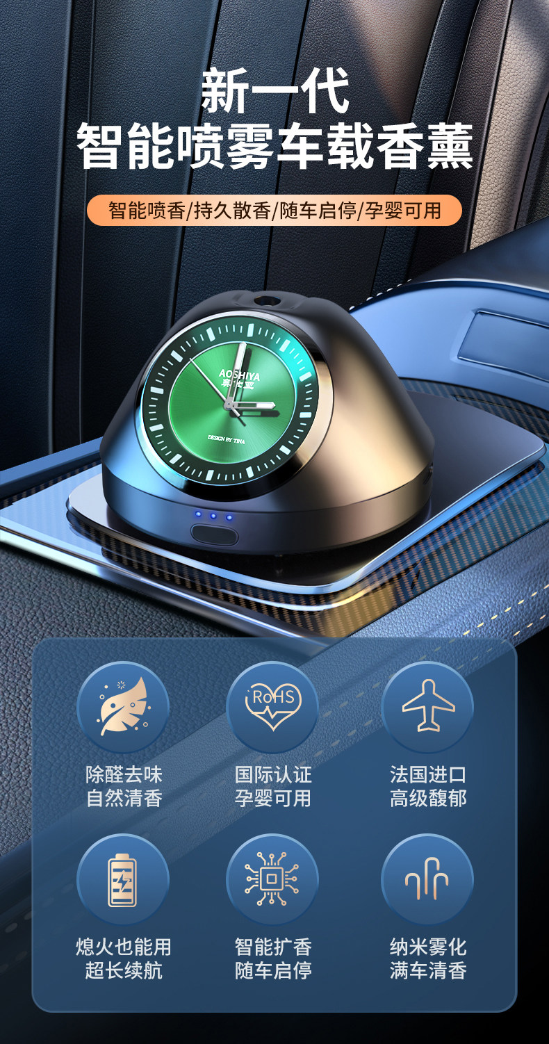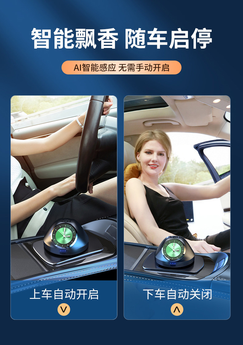Car Perfume, Car Fragrance, In-Car Odor Removal, Formaldehyde Removal, Long-Lasting Fragrance, Smart Clock, Atomized Fragrance Ornament