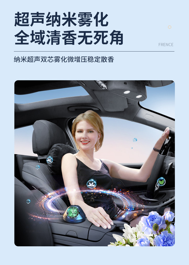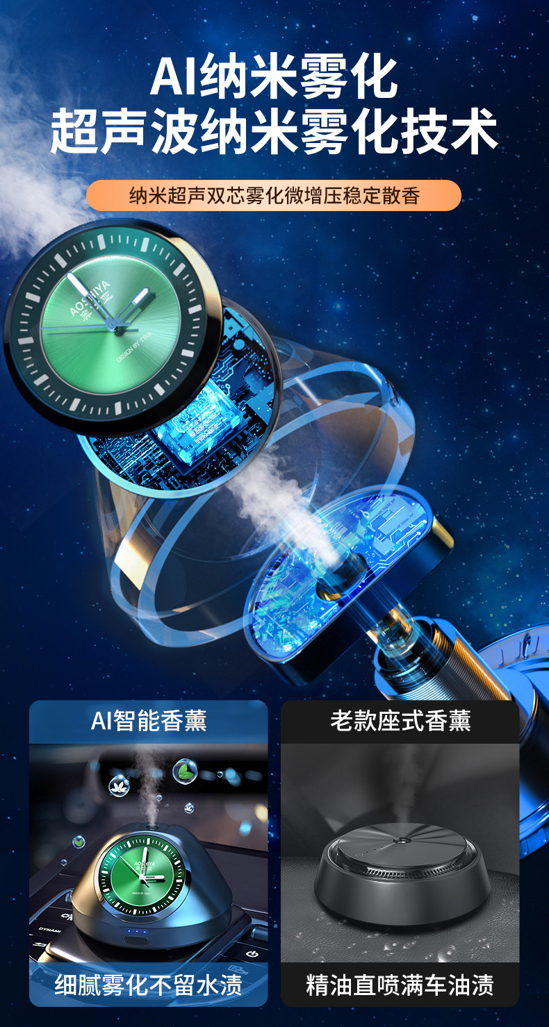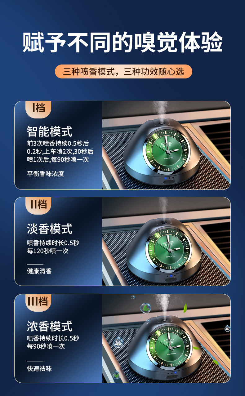 Car Perfume, Car Fragrance, In-Car Odor Removal, Formaldehyde Removal, Long-Lasting Fragrance, Smart Clock, Atomized Fragrance Ornament
