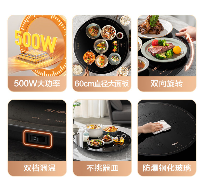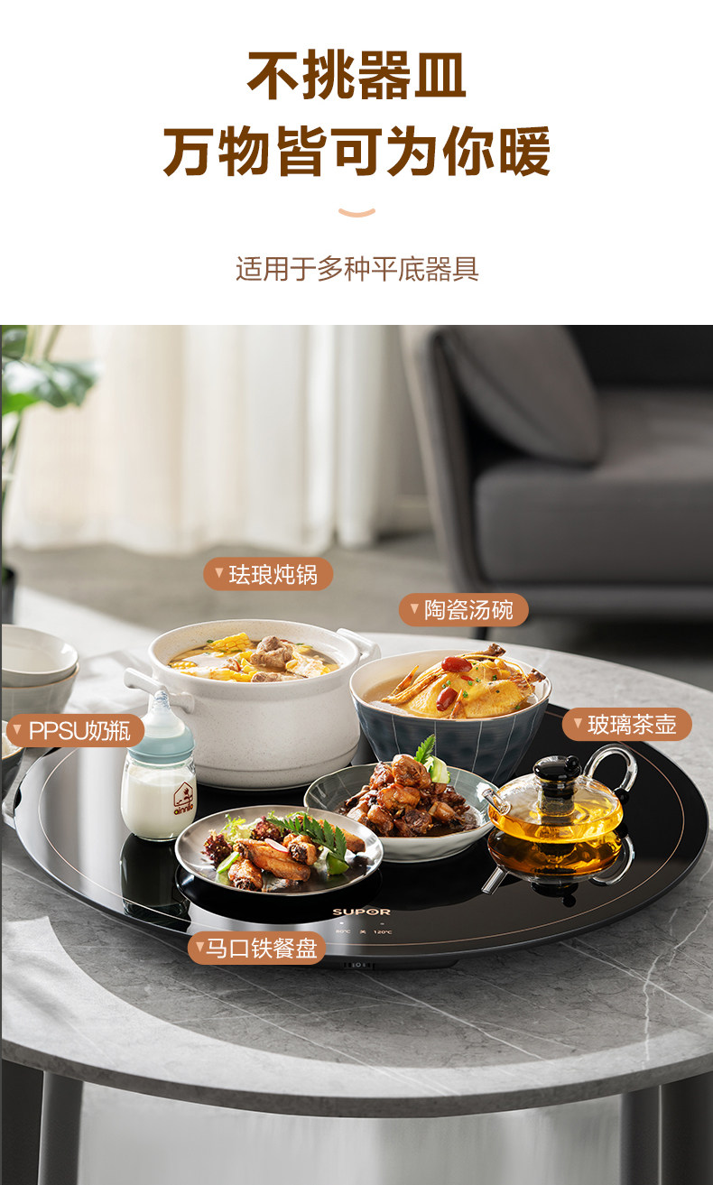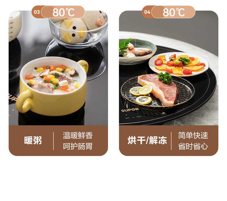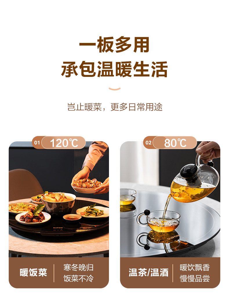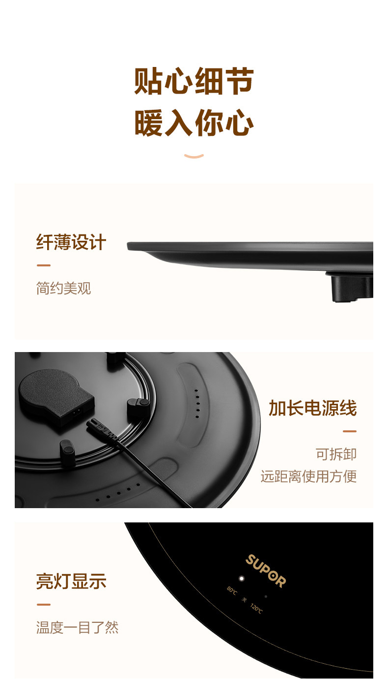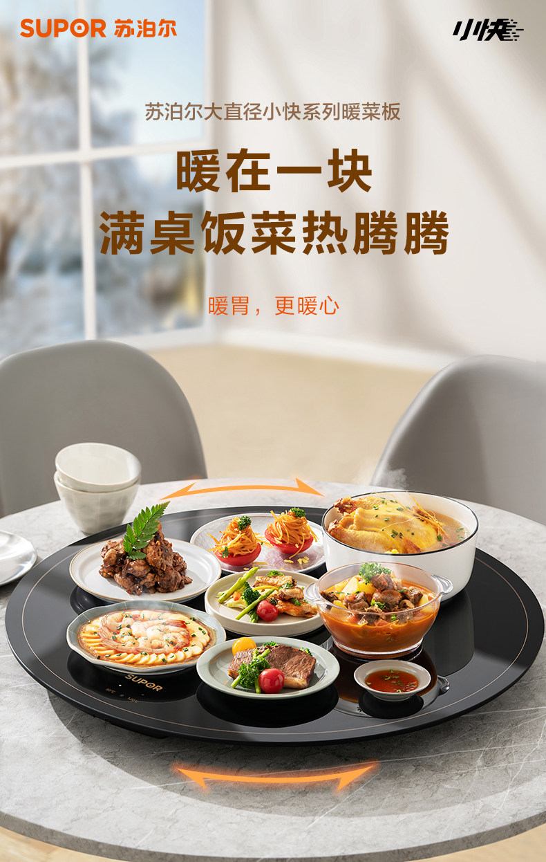 Supor Warming Plate, Hot Dish Plate, Food Insulation Plate, Round Multifunctional Household Plate, Heating Table Mat, Hot Dish Magic Tool