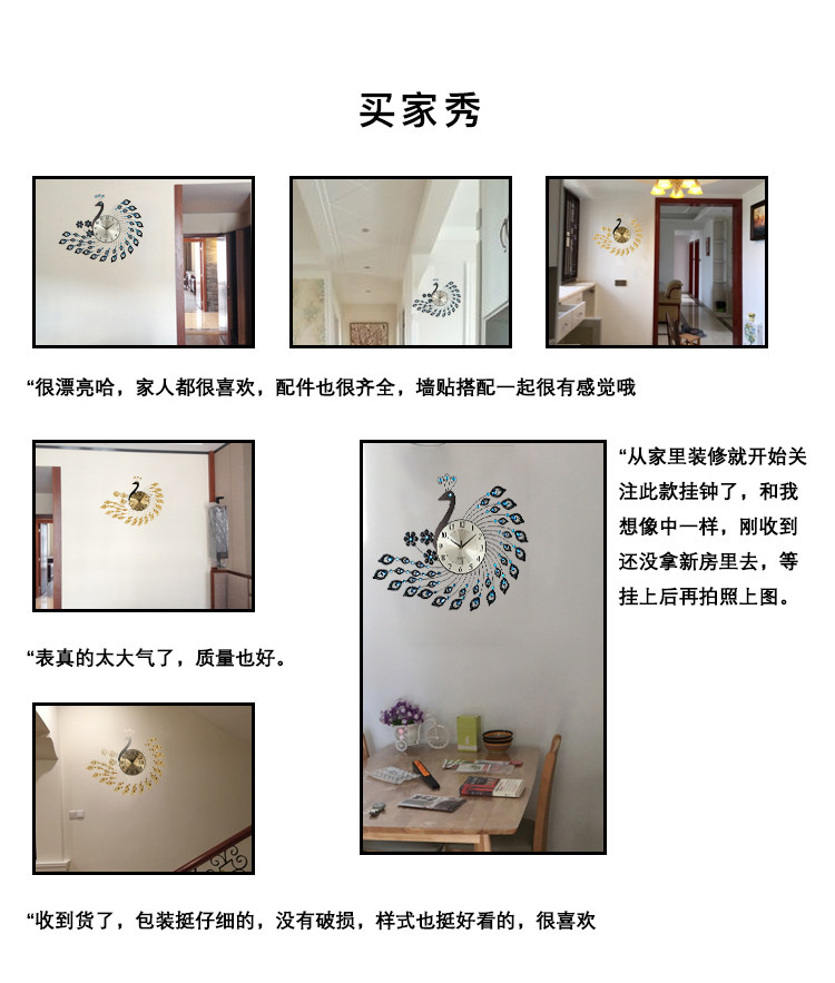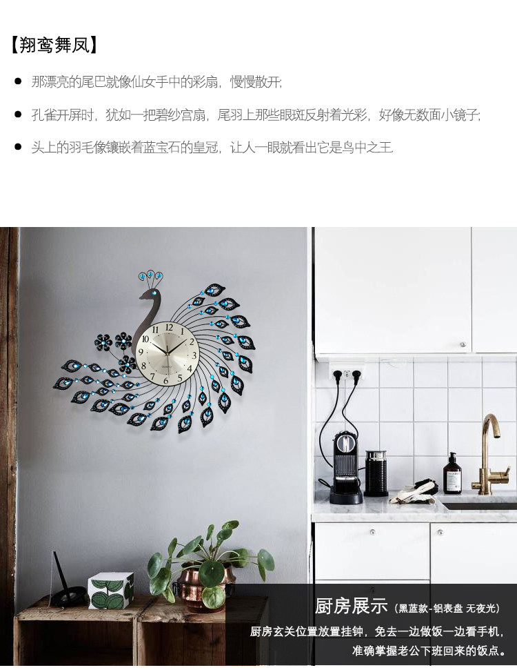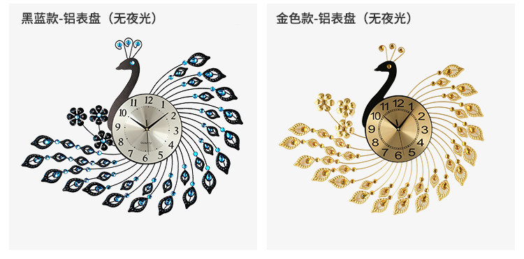 European-Style Peacock Clock Wall Clock Living Room Simple Modern Personalized Creative Clock Home Decoration Silent Quartz Clock