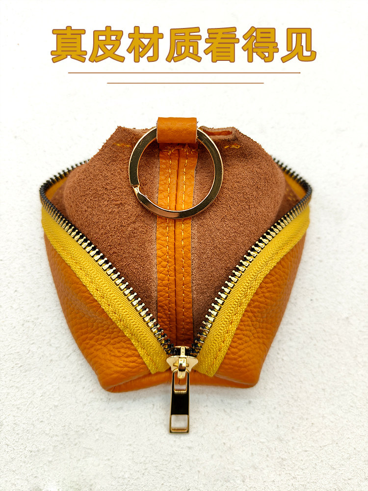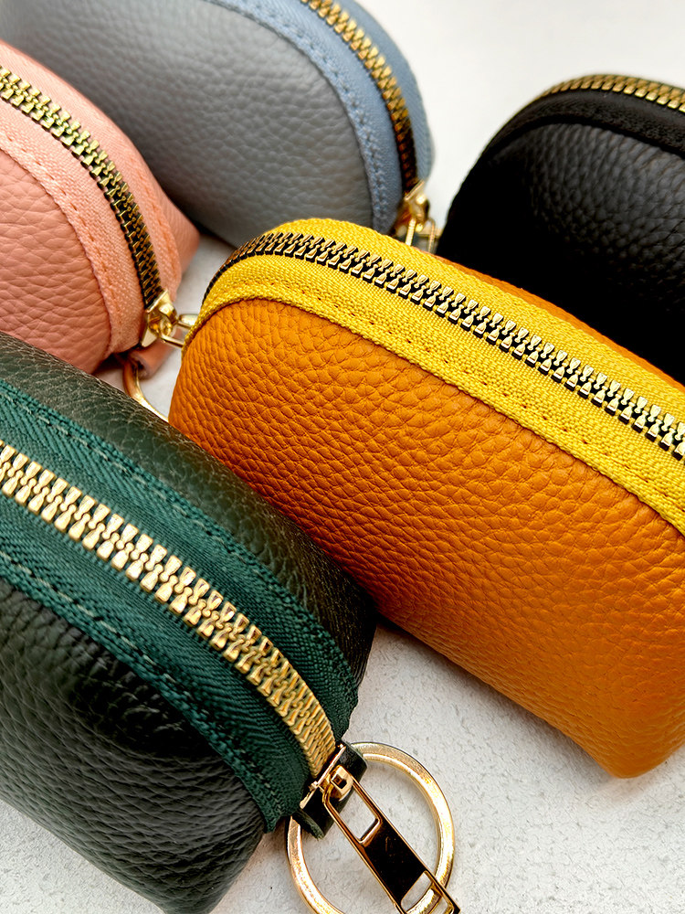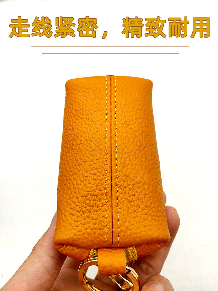 Genuine Leather Car Key Case, Compact, Unisex, Universal, Large Capacity, Simple, Cute Korean Style Key Case, Mini, for Home Use