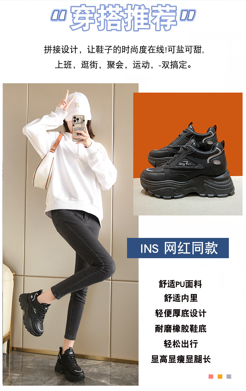 Platform Sneakers for Petite Women, Versatile Thick-Soled Shoes, 2025 Spring and Autumn New Style, Breathable Casual Sports Shoes