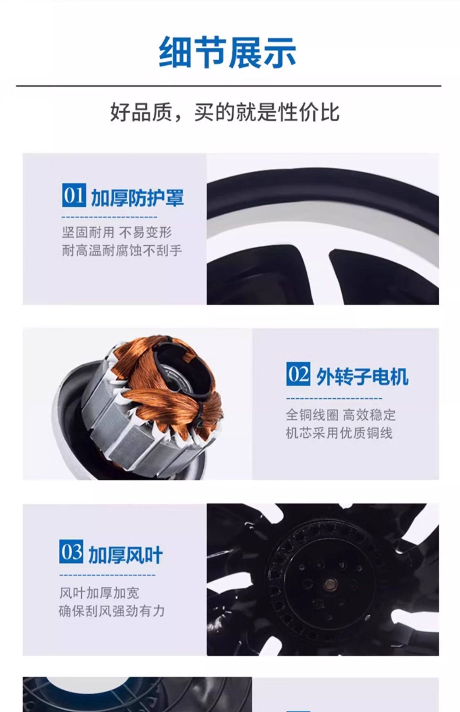 High Suction Power Exhaust Fan Kitchen Exhaust Fan Ultra-Thin Ventilation Fan Smoke Exhaust Fan External Rotor Thin Exhaust Fan