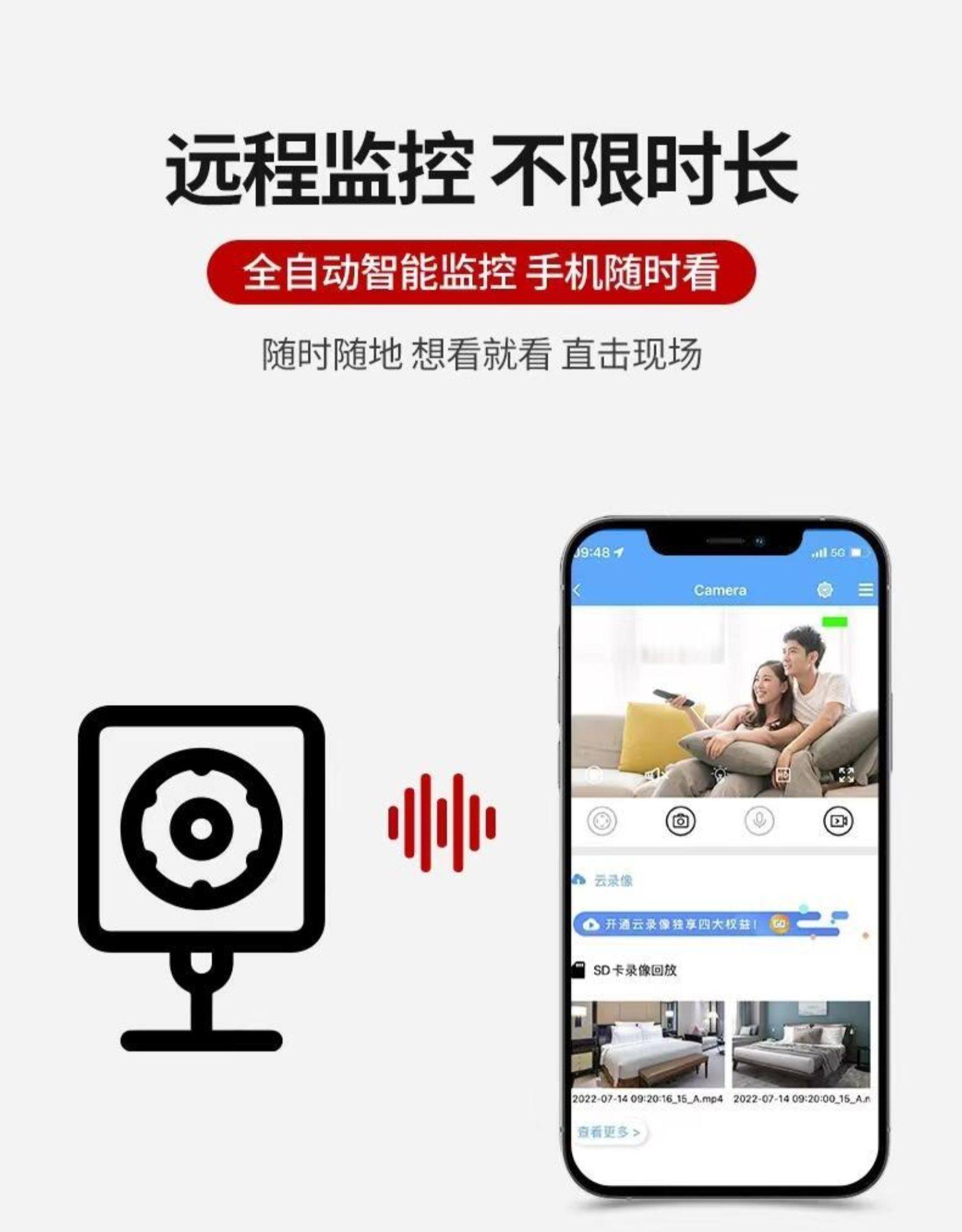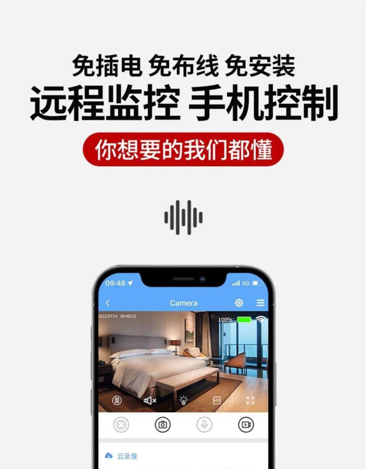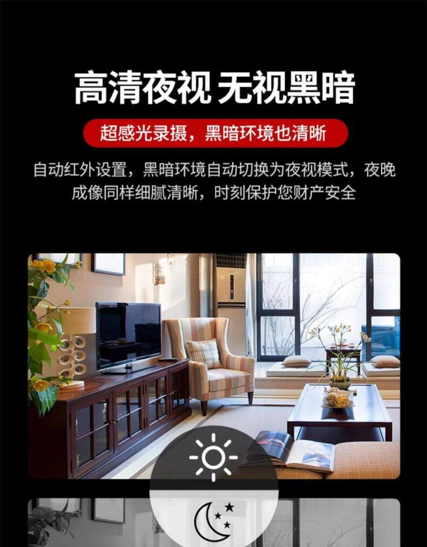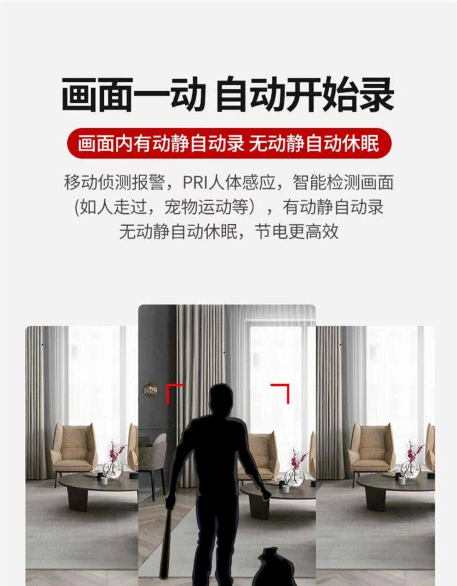 Camera with Wireless Wifi for Home Use, Connects to Mobile Phone for Remote Access, No Need to Plug In, No Drilling Required, High-Definition Night Vision Photography, Indoor Monitor