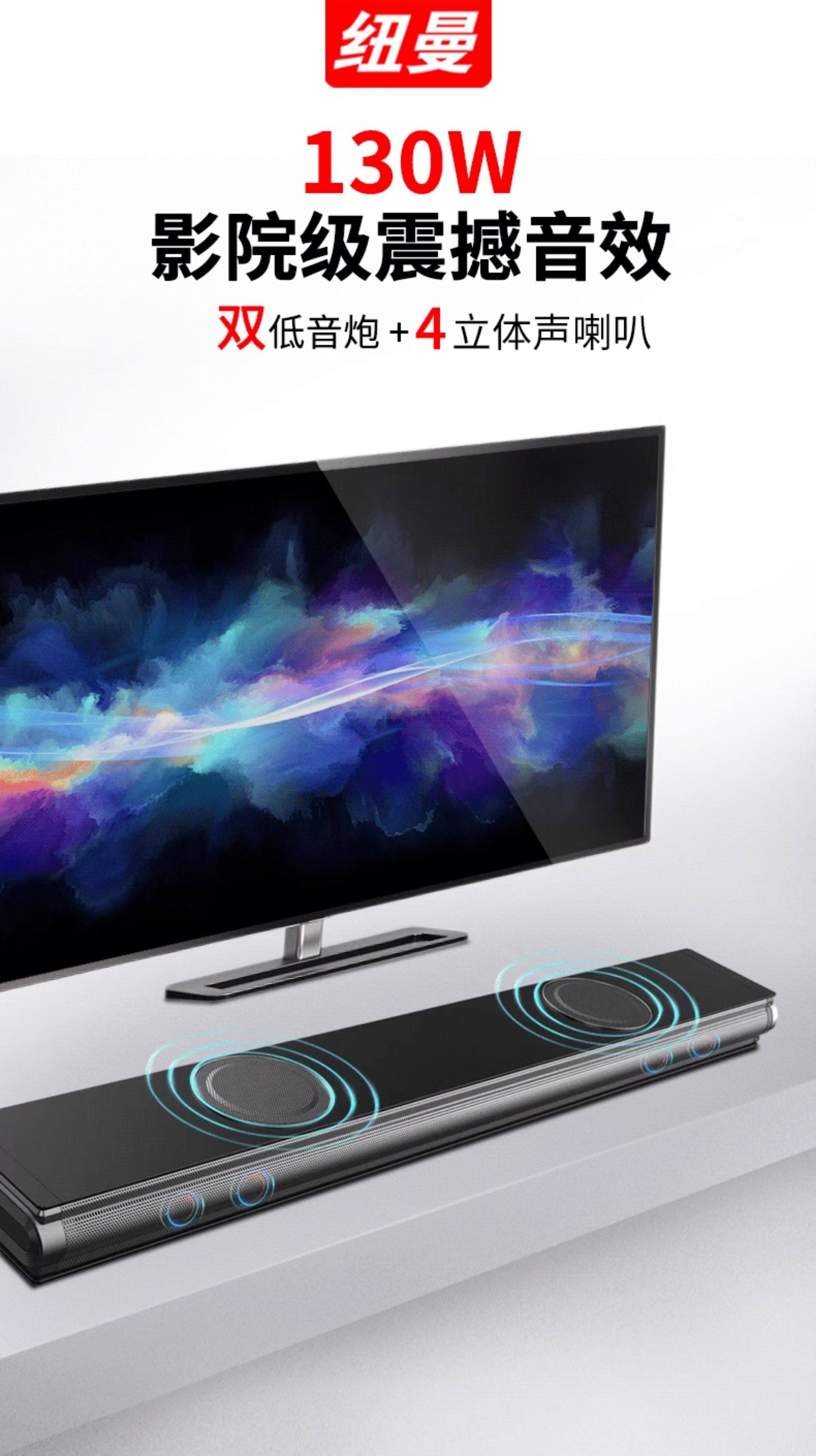 Newman Tv Soundbar Surround Sound Home Theater Subwoofer Bluetooth Speaker Connected to Projector