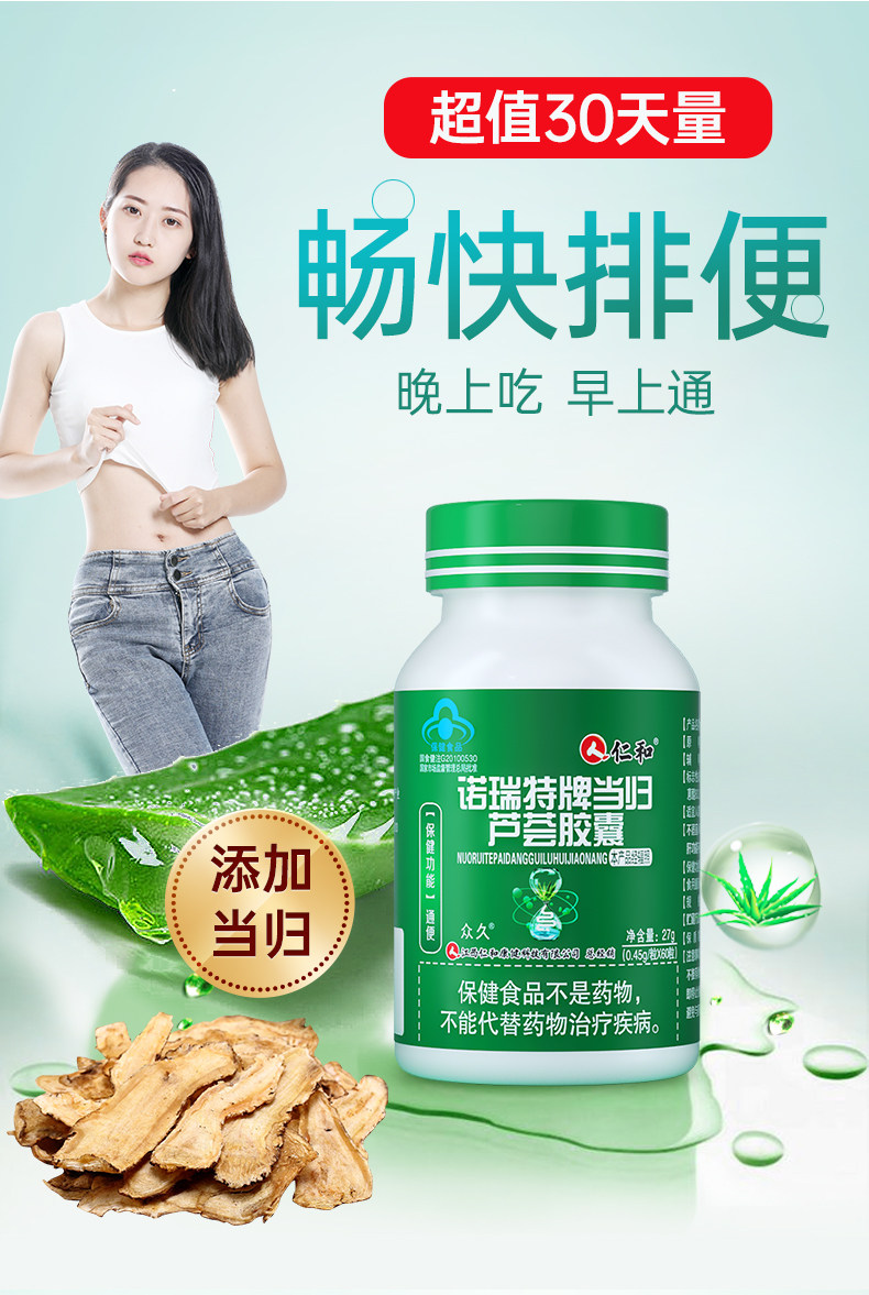 Renhe Brand Aloe Vera Laxative Capsules with Angelica for Constipation, Official Flagship Store, Nuo Rui Te Official Genuine Product Y