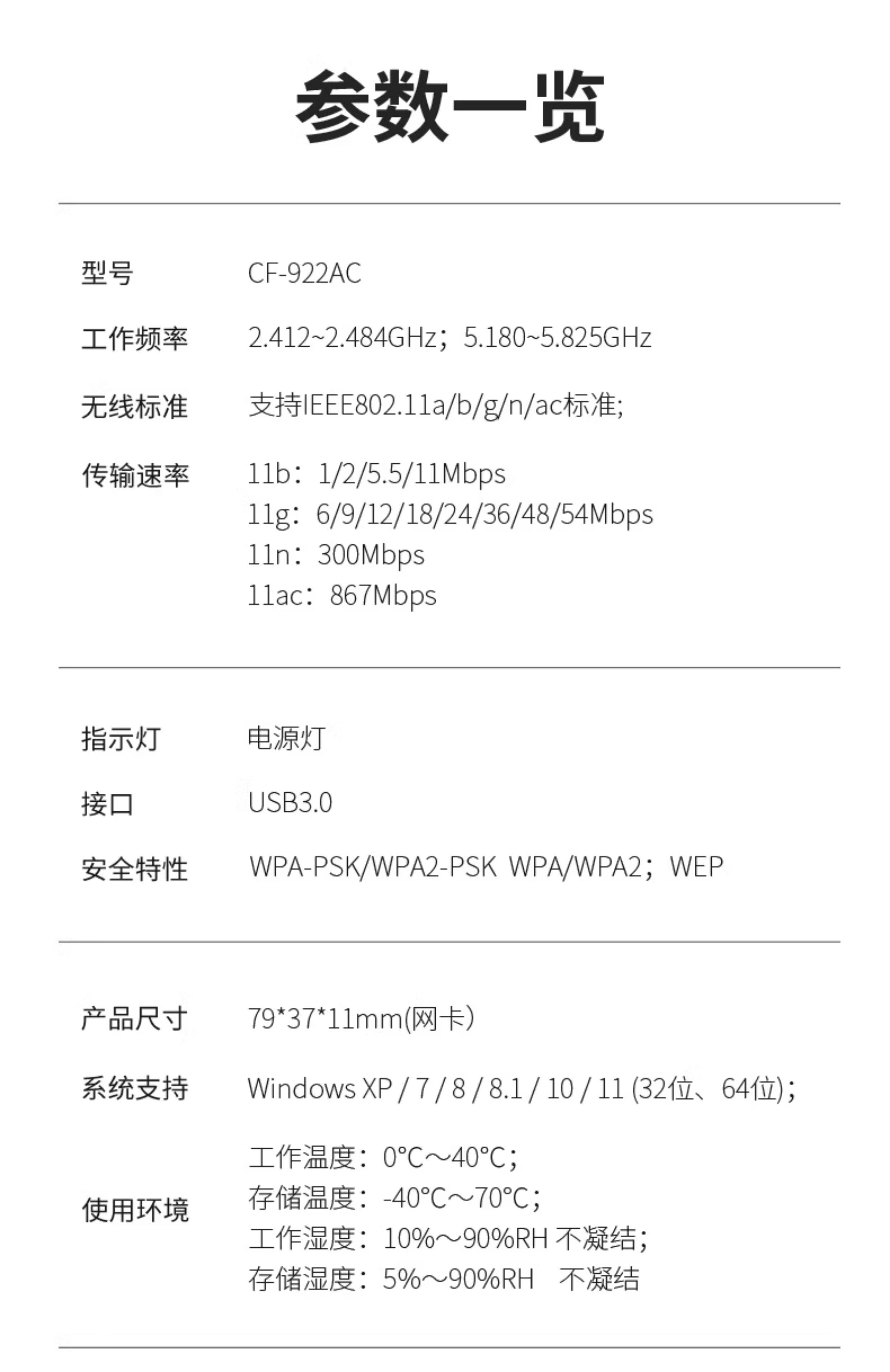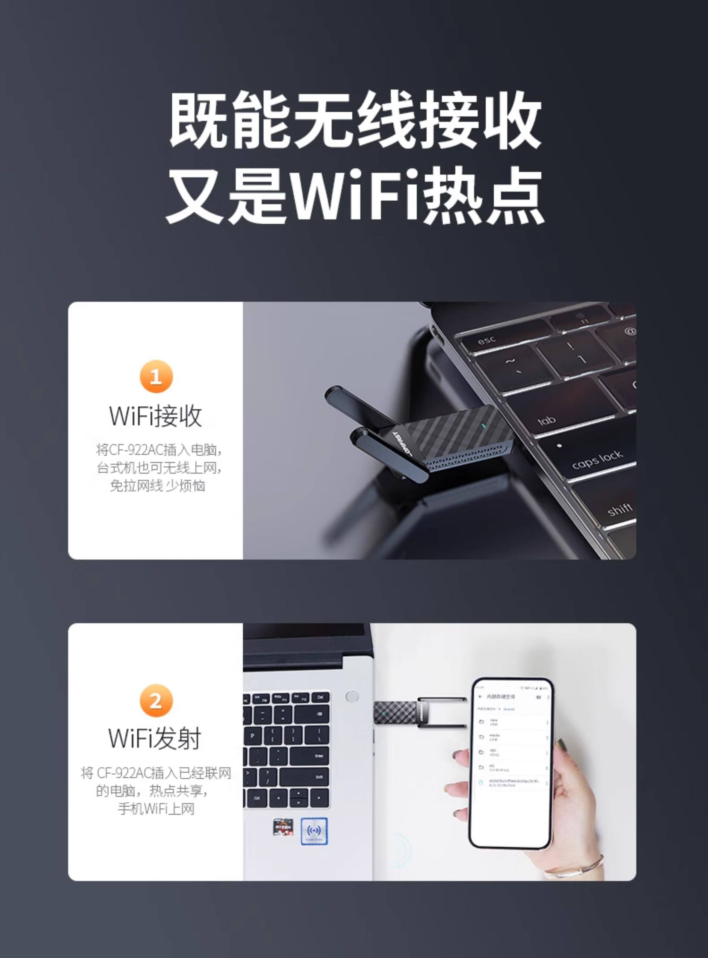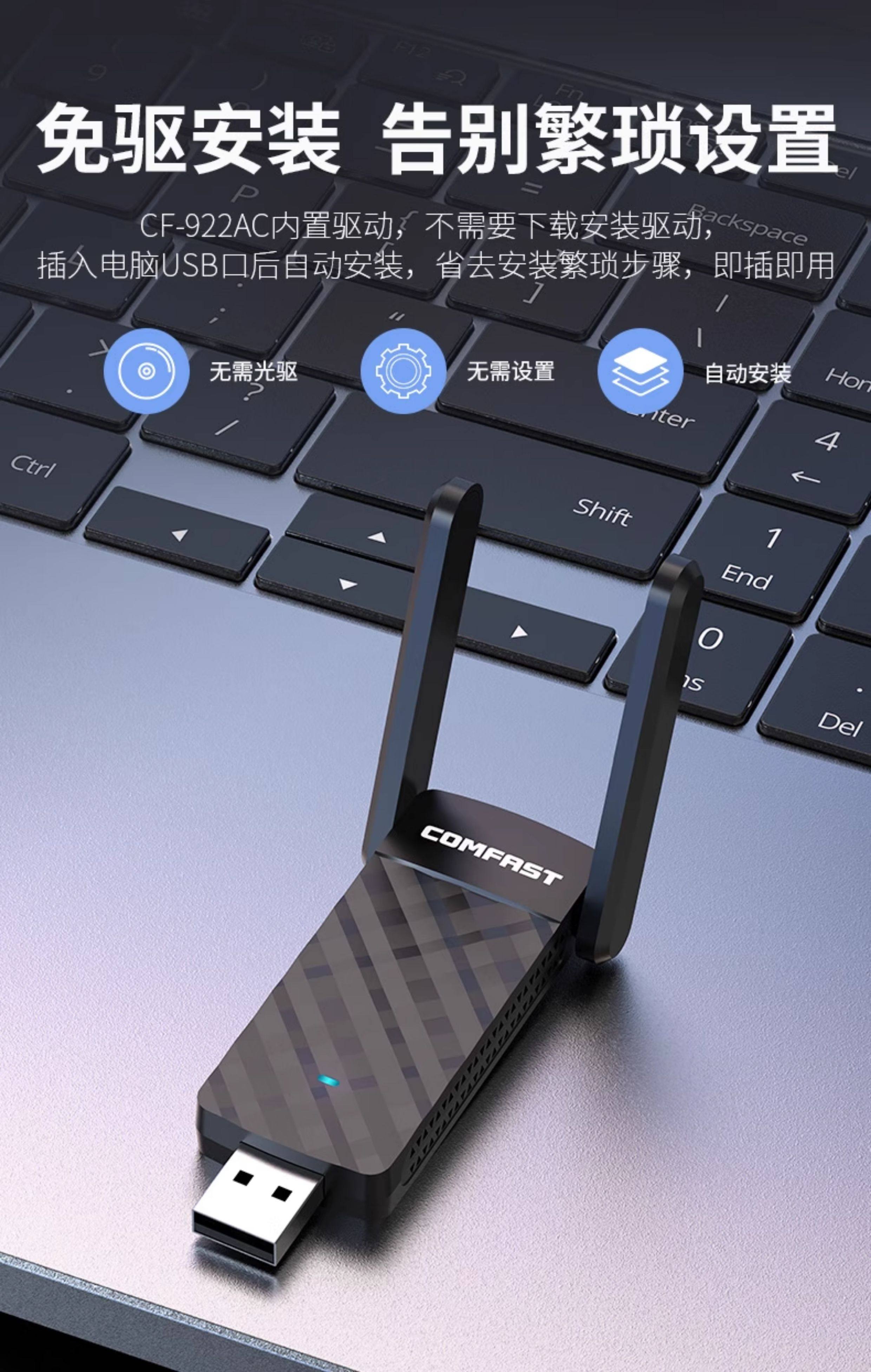 Comfast Cf-922Ac Wireless Network Card Desktop 1300m Dual-Band 5g High-Power Wall-Penetrating Wifi Receiver Notebook Gigabit USB External Wireless Network Signal Receiver