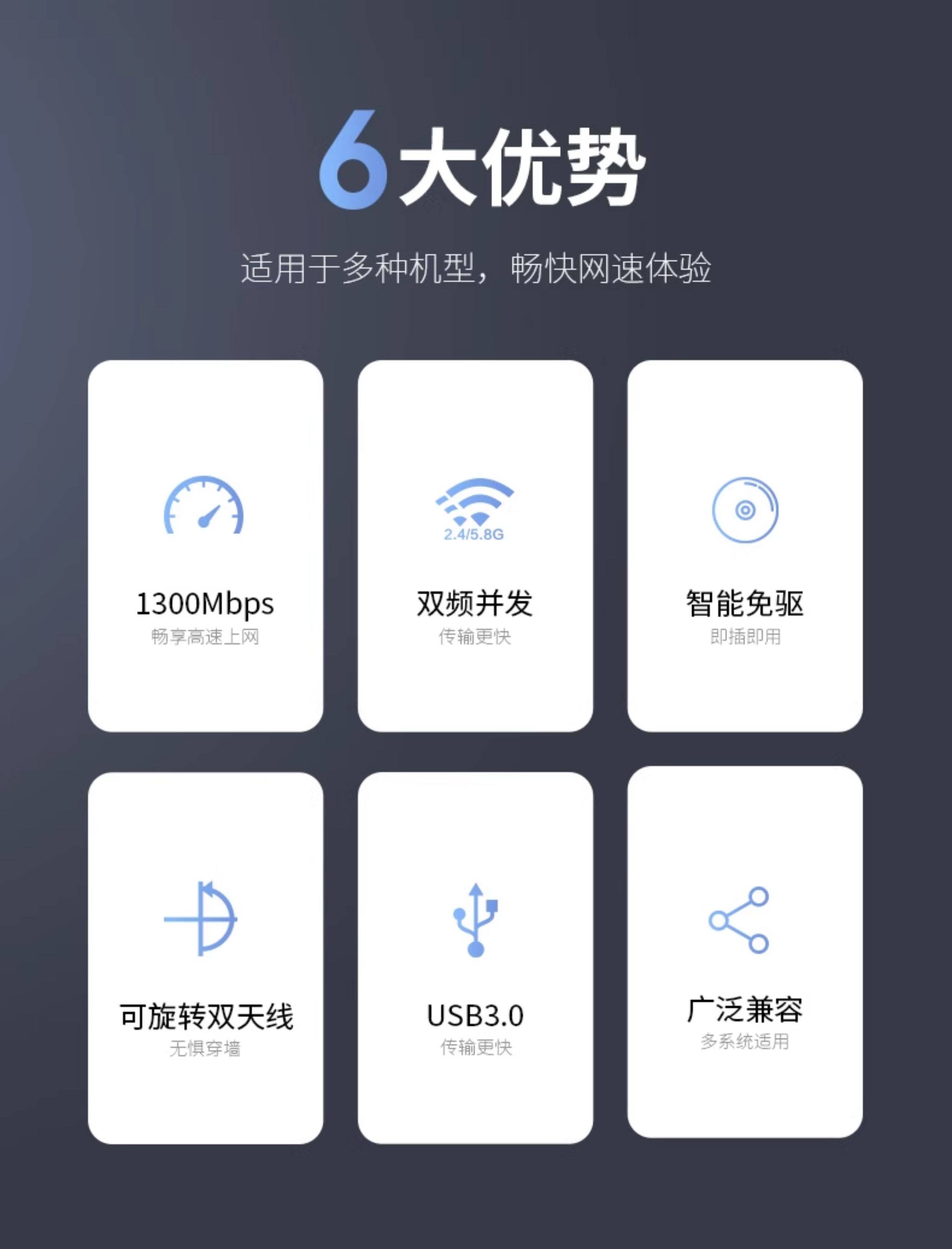| Color Classification | [1300m Driver-Free]Dual-Band, Through-Wall, High-Speed Transmission - Newly Upgraded,[1300m Driver-Free]Four Antennas through the Wall, High-Speed Transmission,1800m Driver-Free[E-Sports Wifi6]Only Supports Win10/11 6Th Generation Wifi,5374m Driver-Free[E-Sports Wifi6]Only Supports Win 10\11,3000m Driver-Free[Full Blood Wifi6]Only Supports Win10/11,Brand Direct Sales ★ ★ Quality Assurance |
