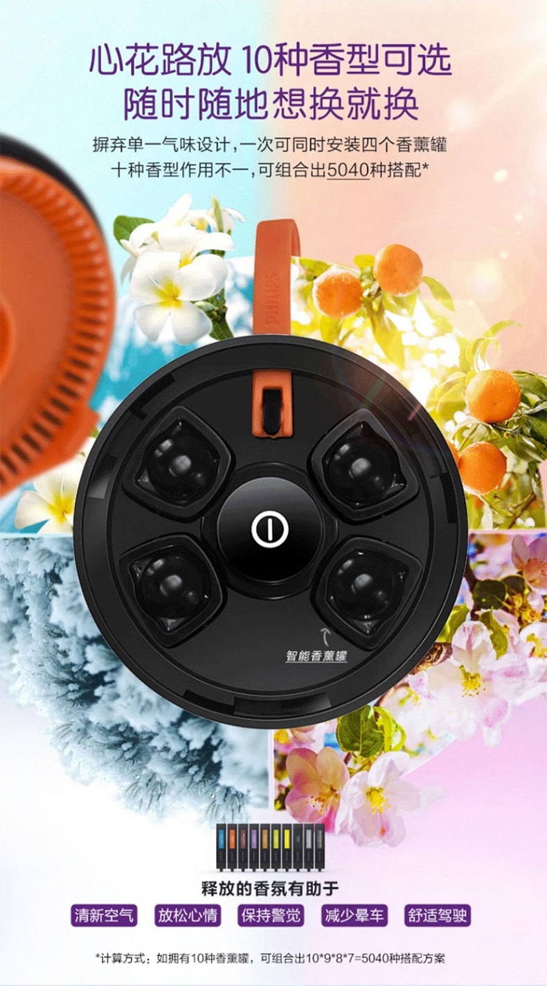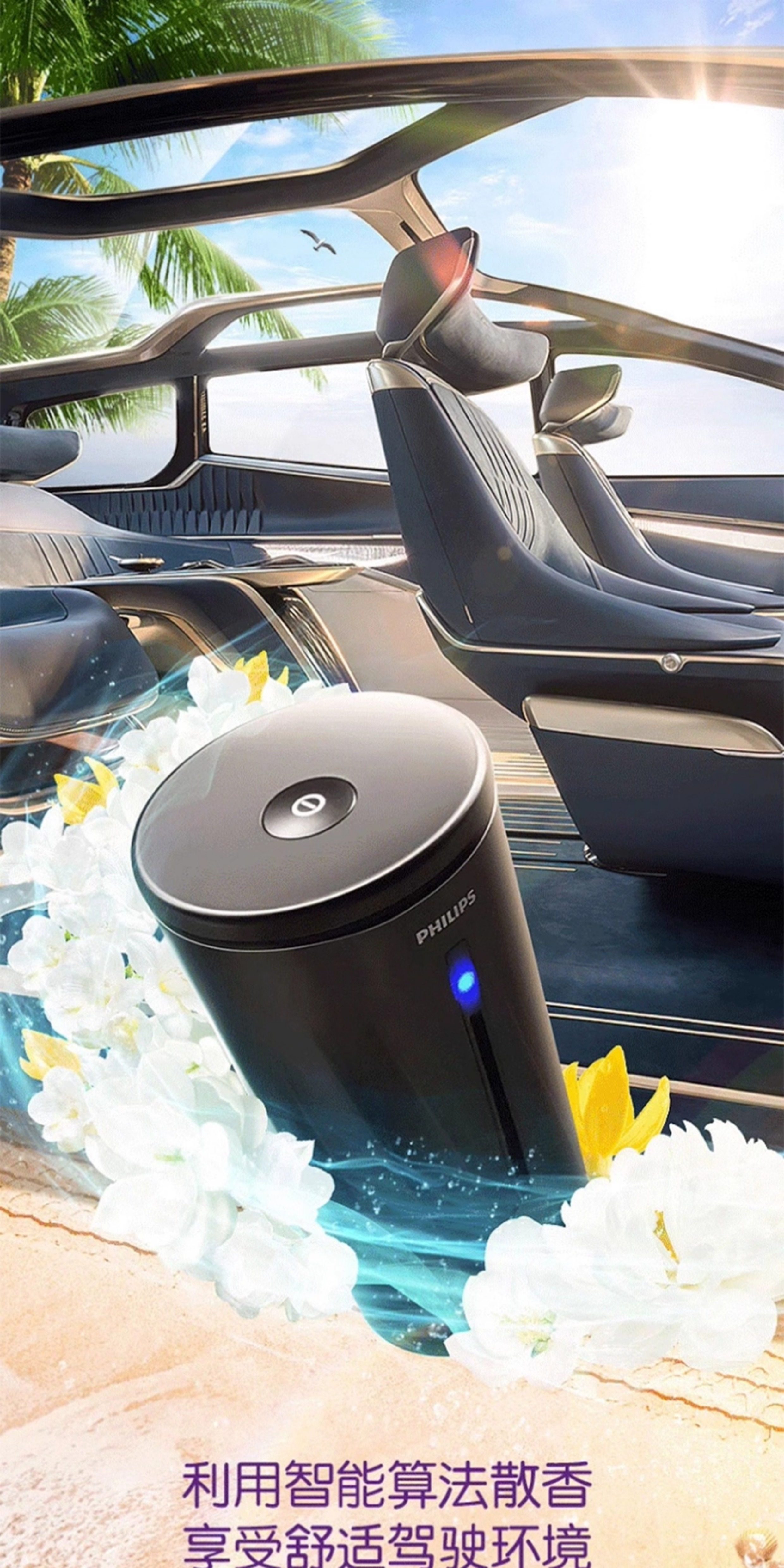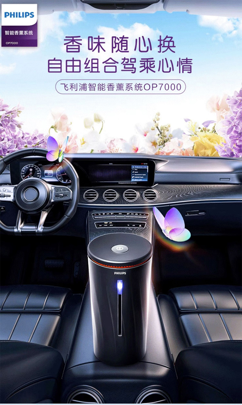 Philips Purifier Fragrance Eliminates Car Odor, In-Car Small Fragrance Diffuser, App Smart Cup Holder Fragrance Diffuser Op7000