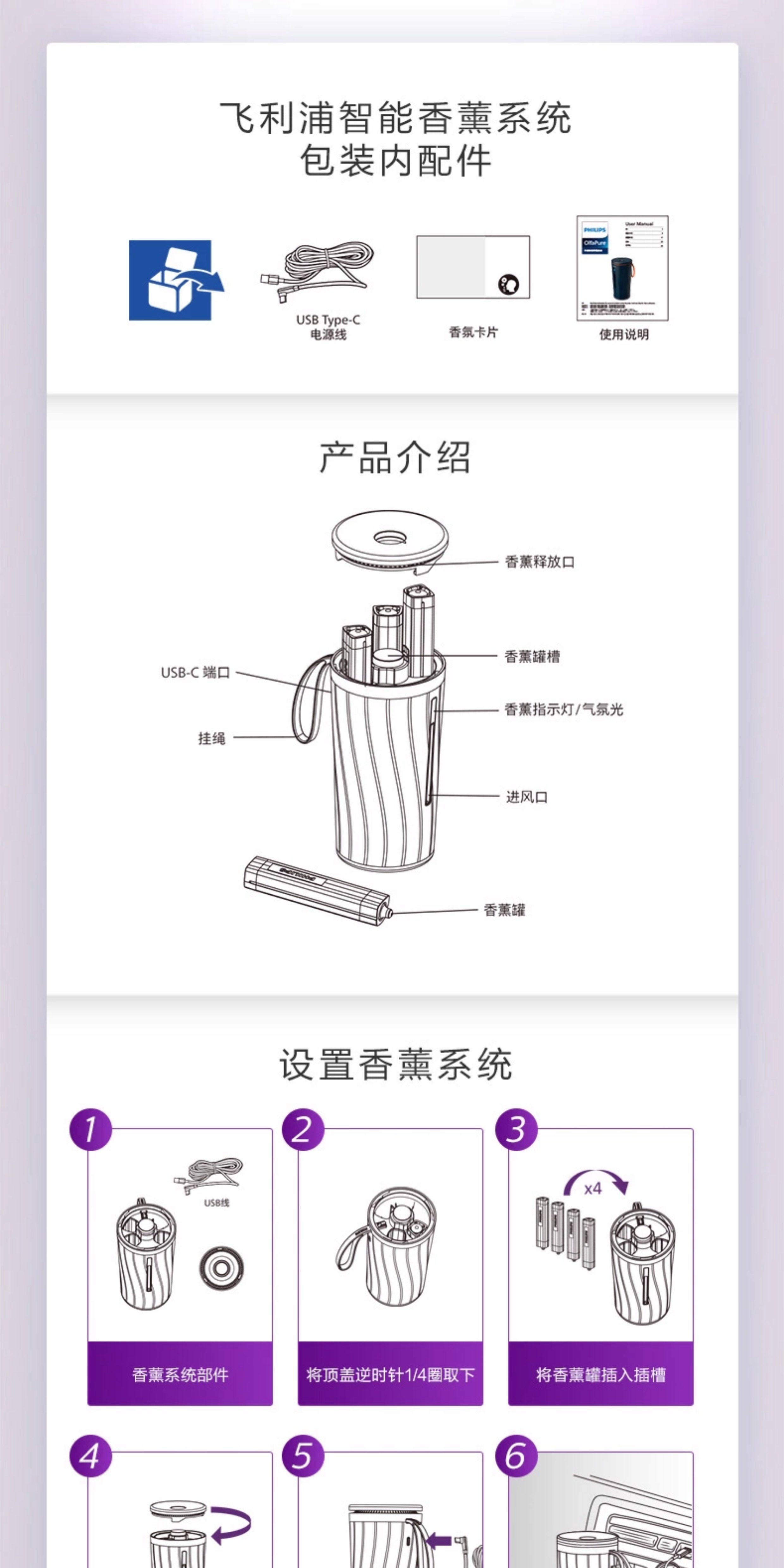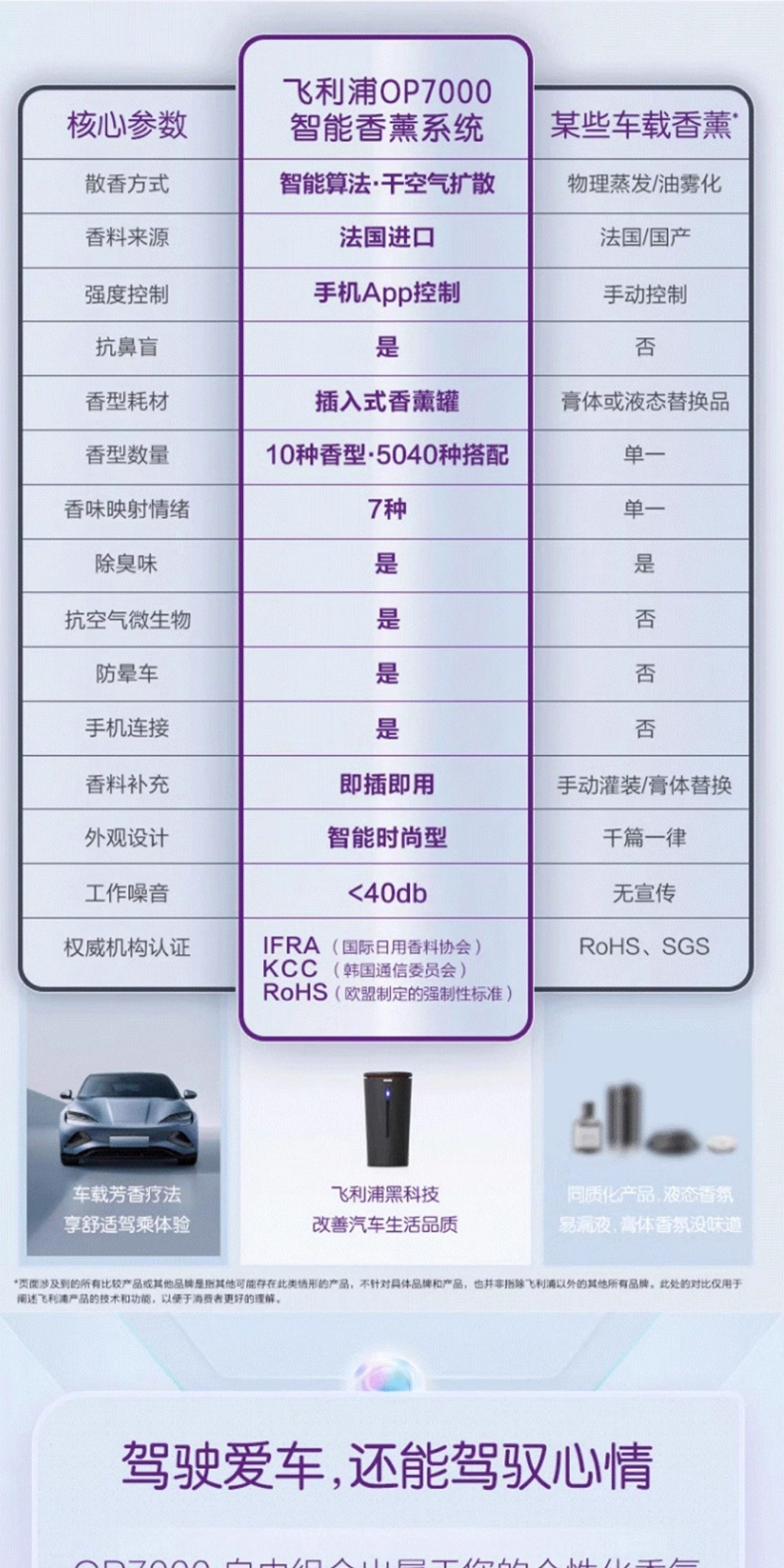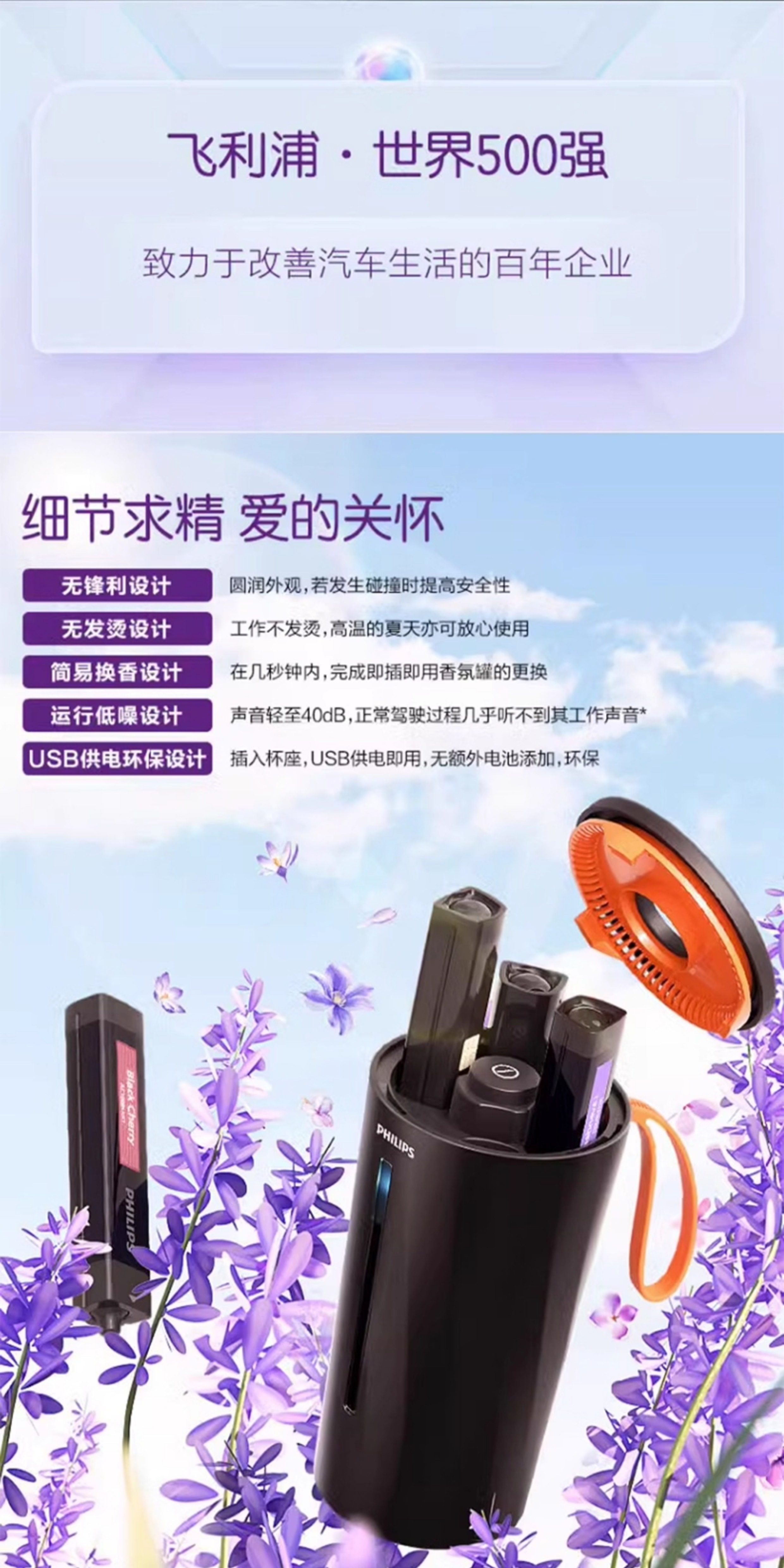 Philips Purifier Fragrance Eliminates Car Odor, In-Car Small Fragrance Diffuser, App Smart Cup Holder Fragrance Diffuser Op7000