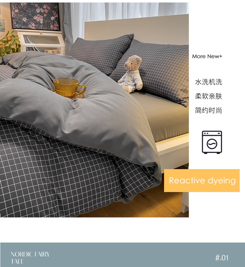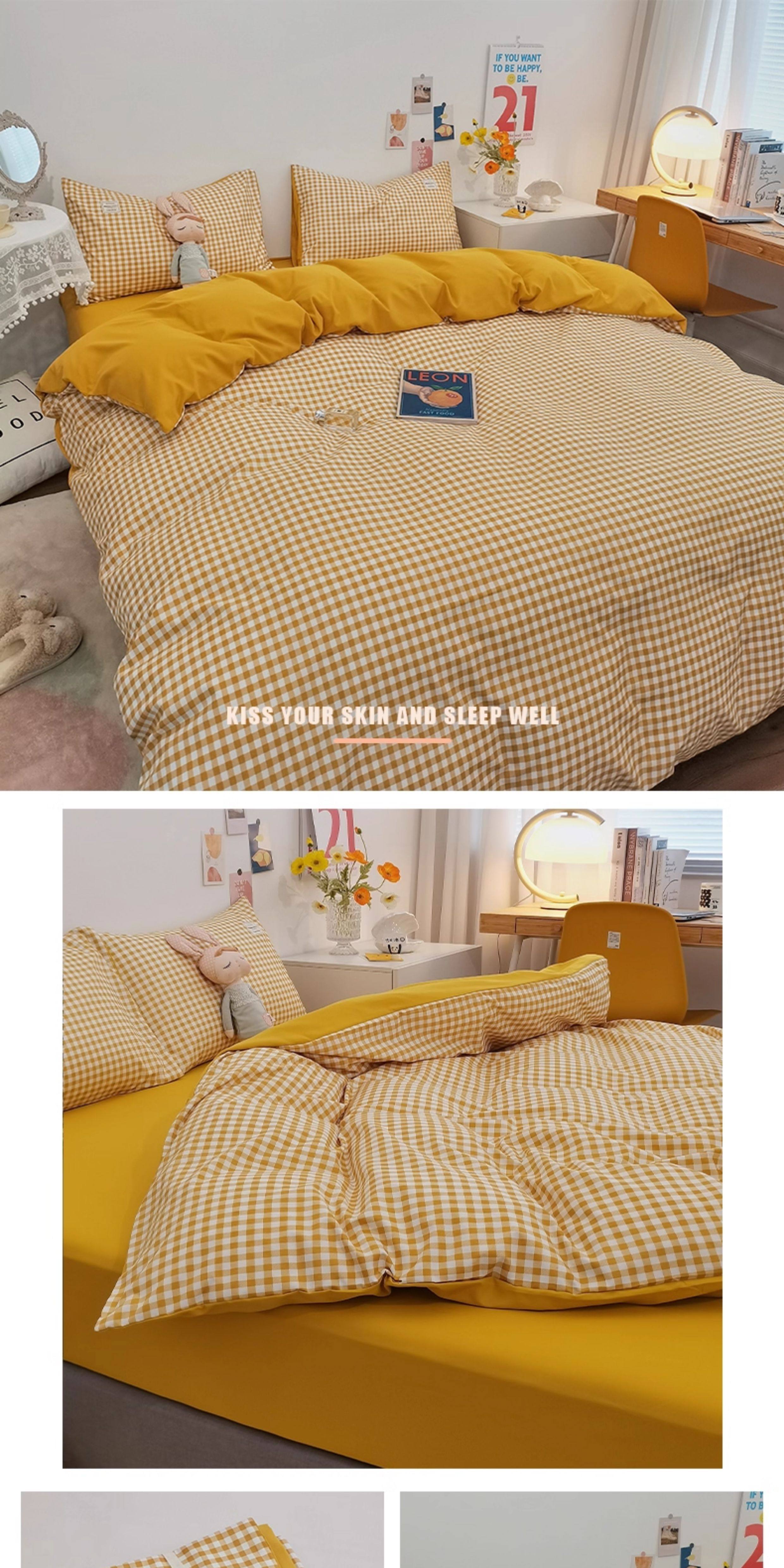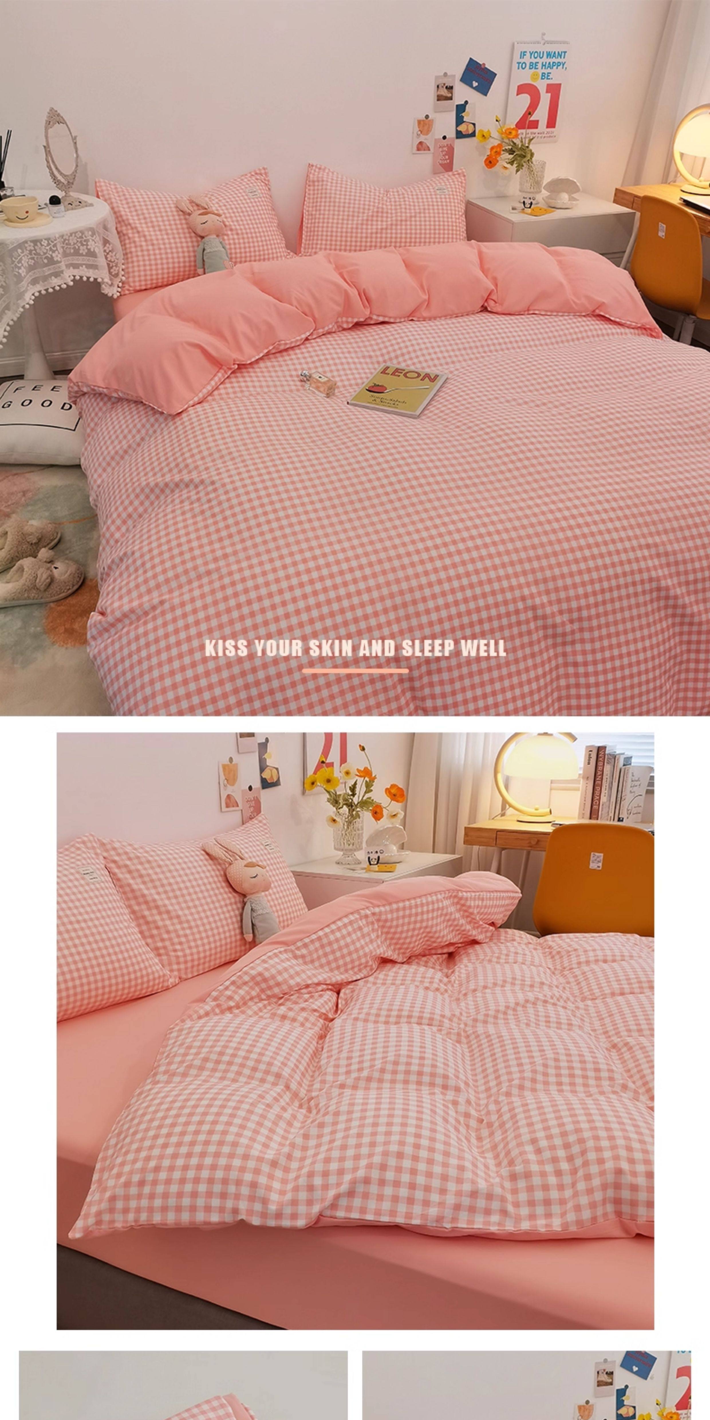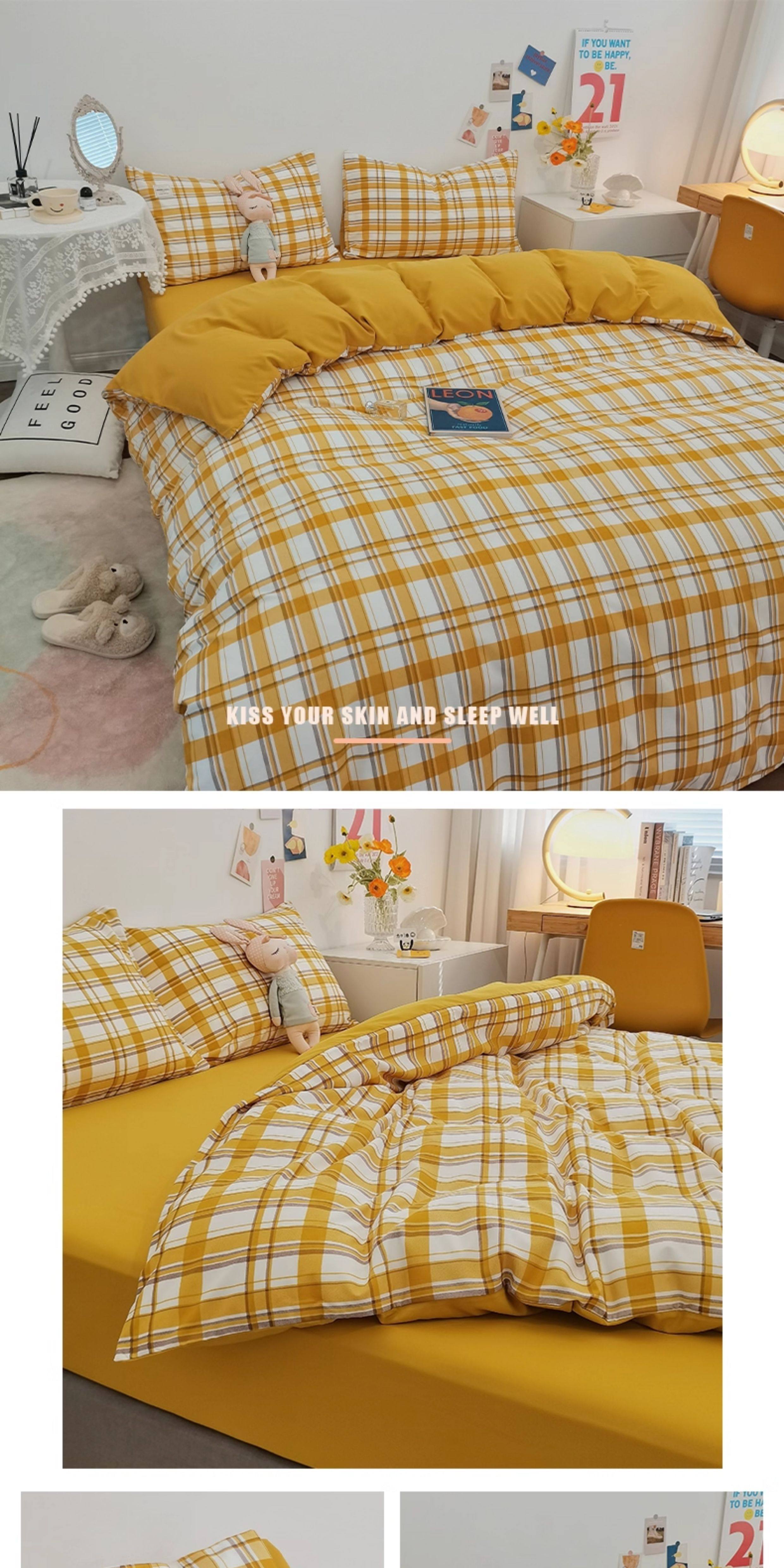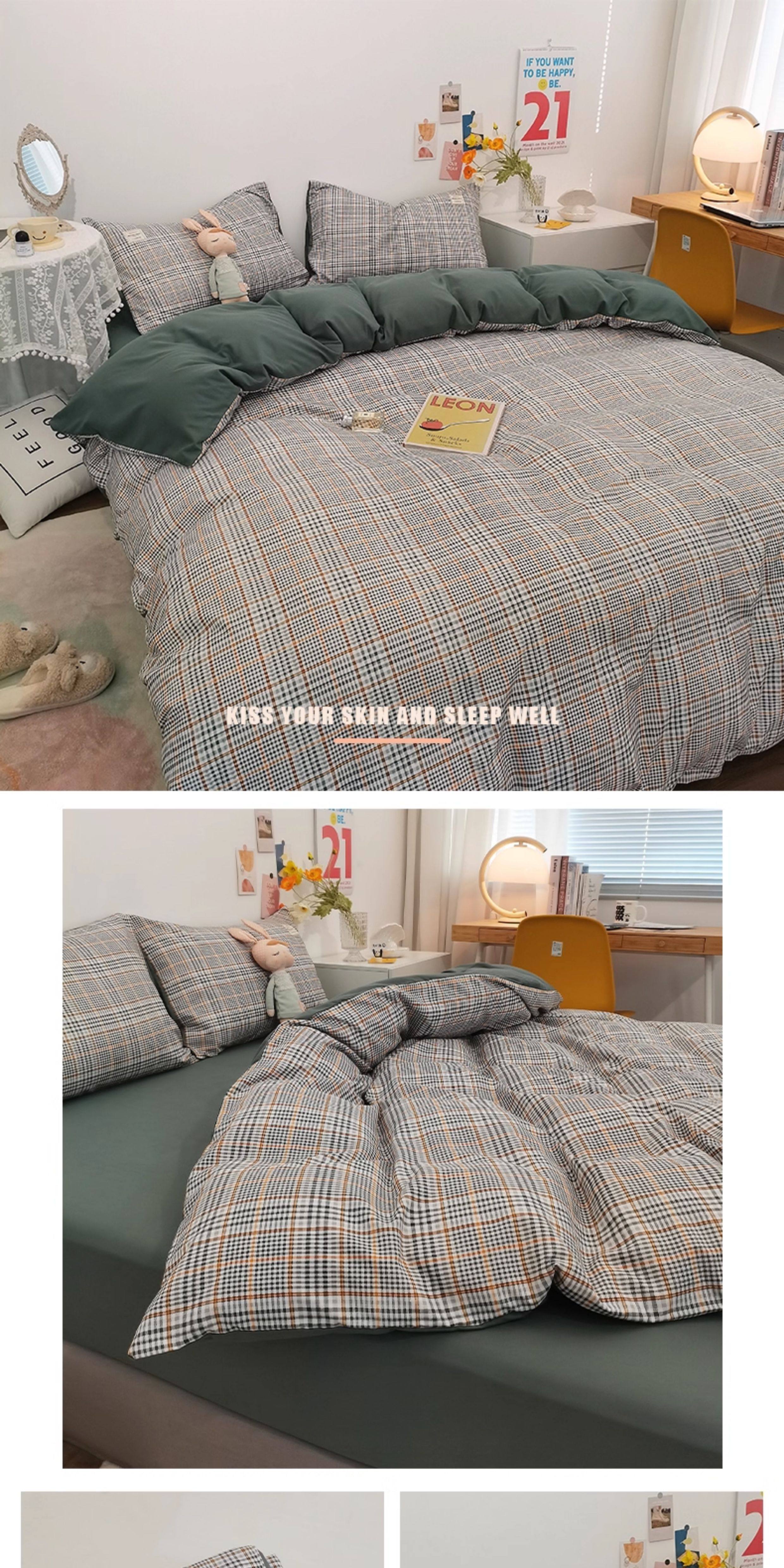 Simple Washed Cotton Four-Piece Set, Solid Color Plaid Stripe Four-Season Duvet Cover, Student Dormitory Bed Single Bed Fitted Sheet Three-Piece Set
