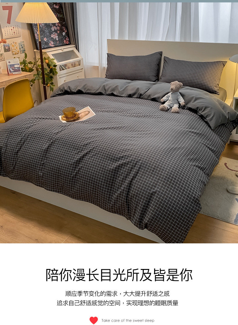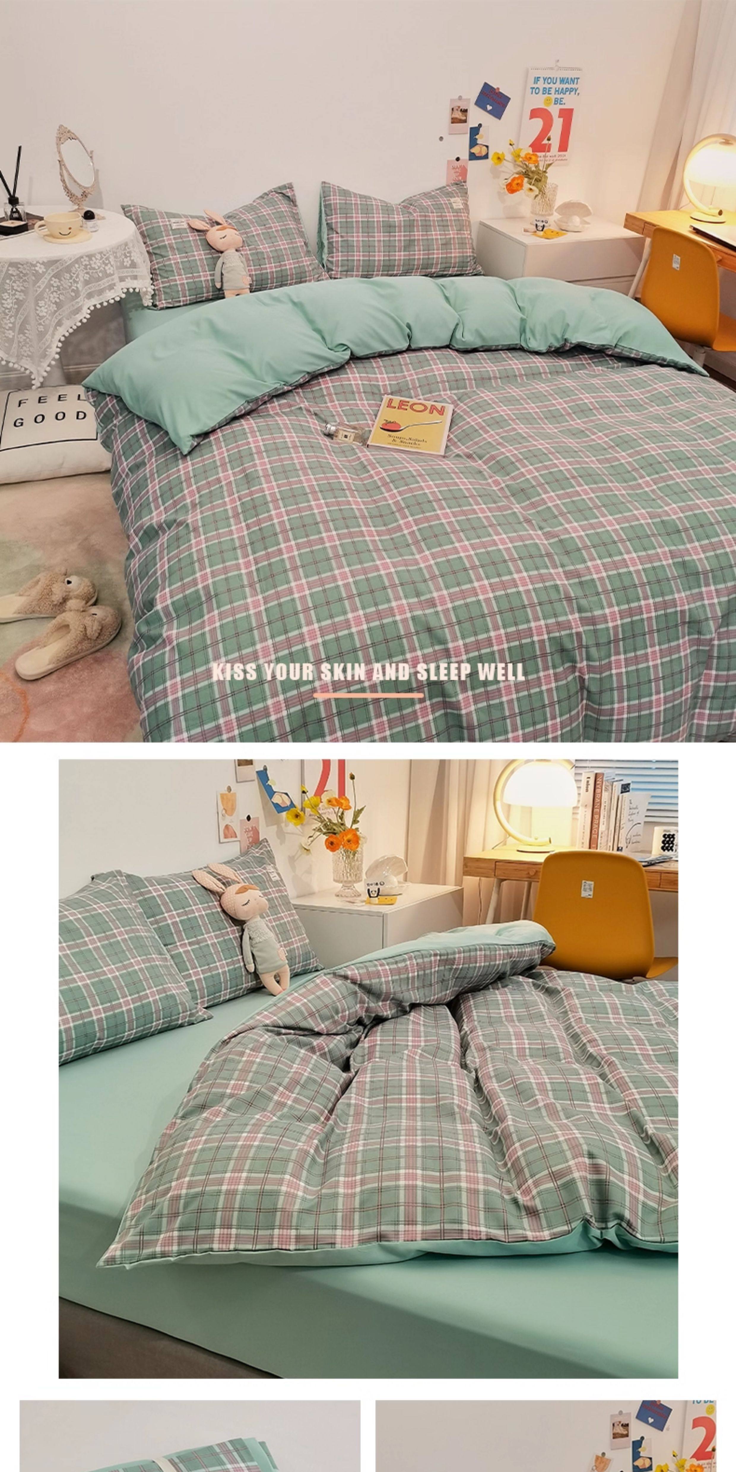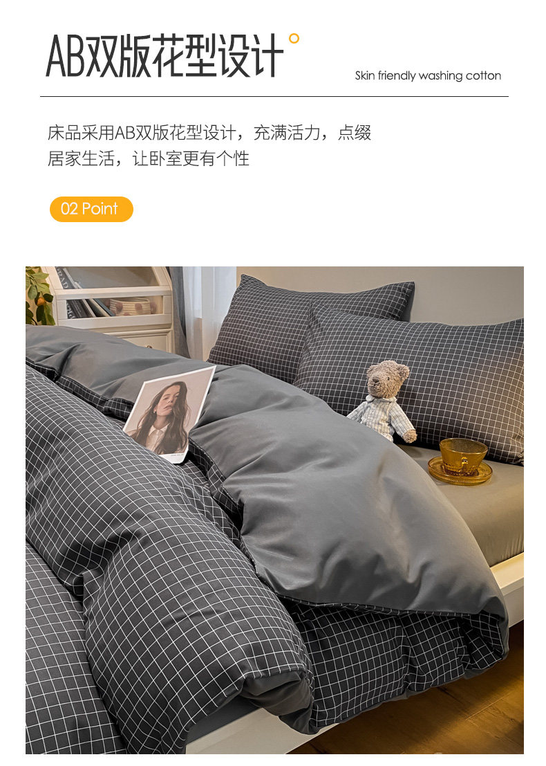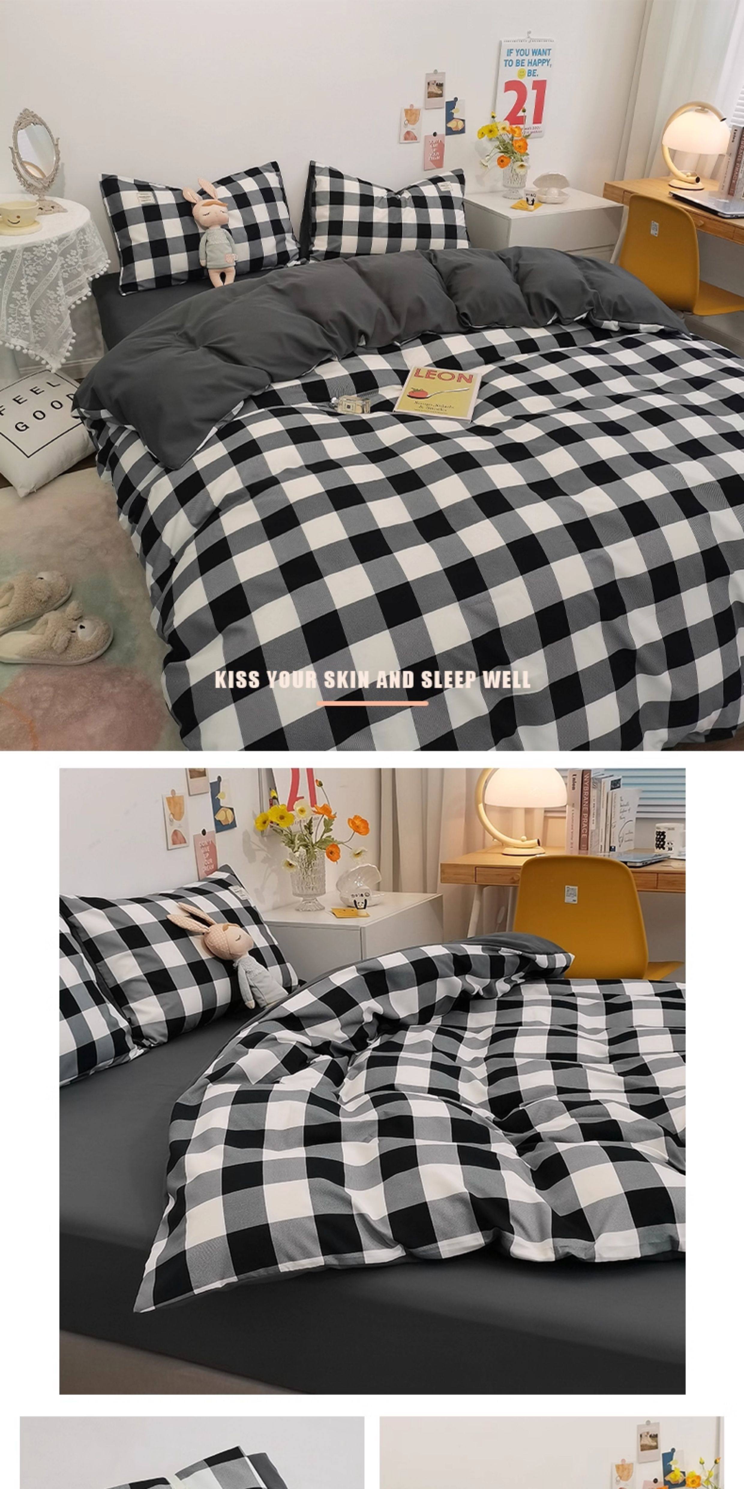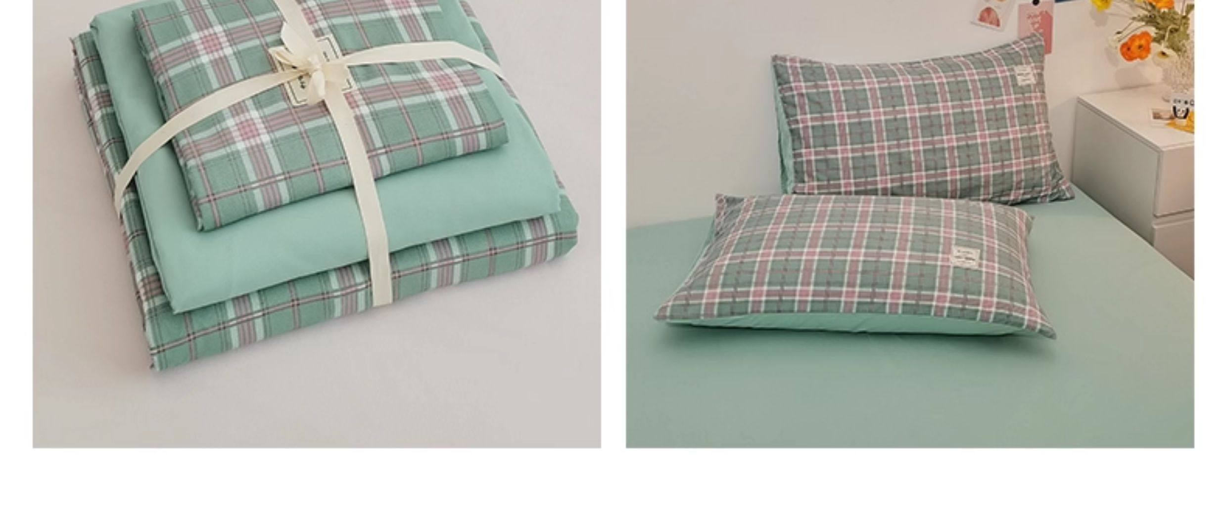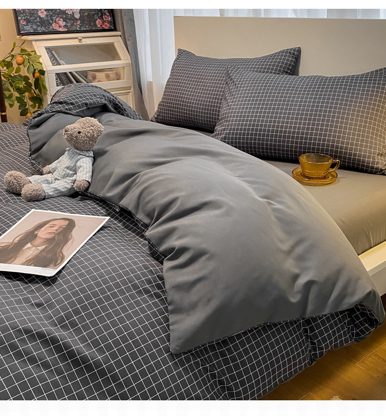Simple Washed Cotton Four-Piece Set, Solid Color Plaid Stripe Four-Season Duvet Cover, Student Dormitory Bed Single Bed Fitted Sheet Three-Piece Set