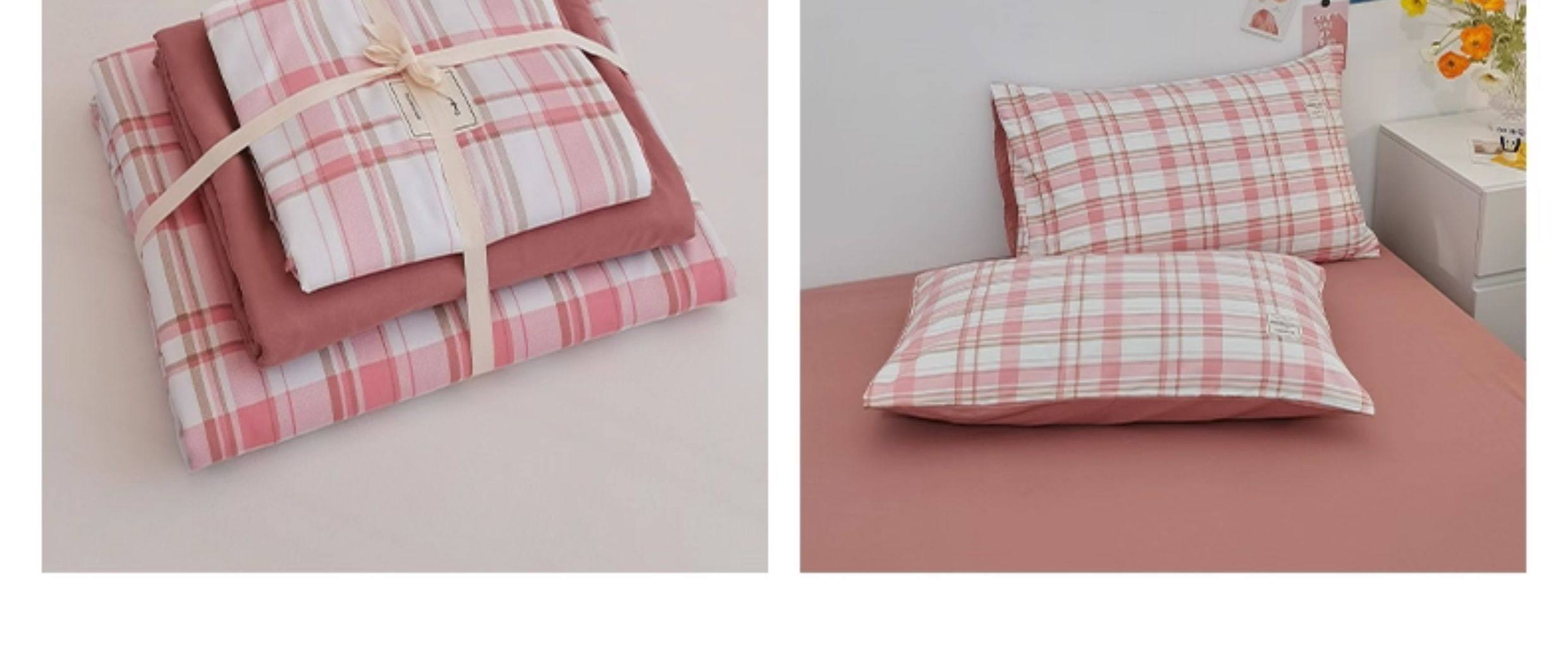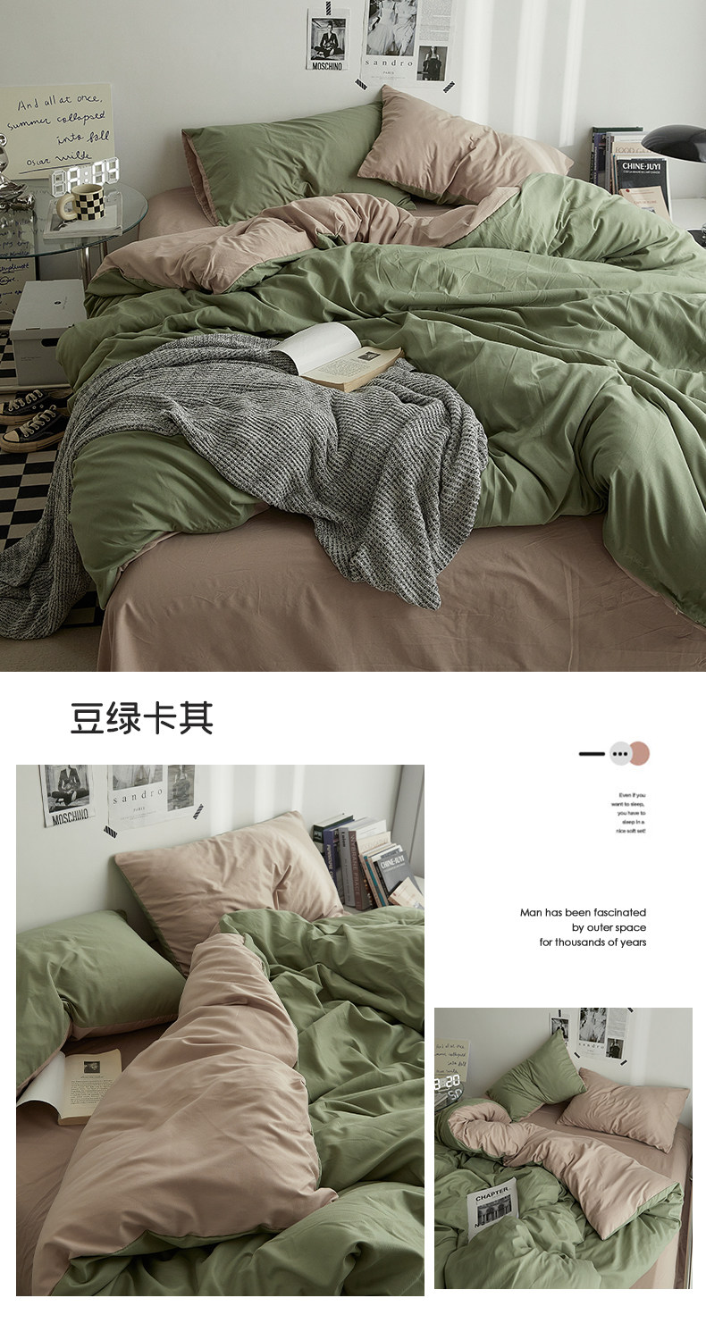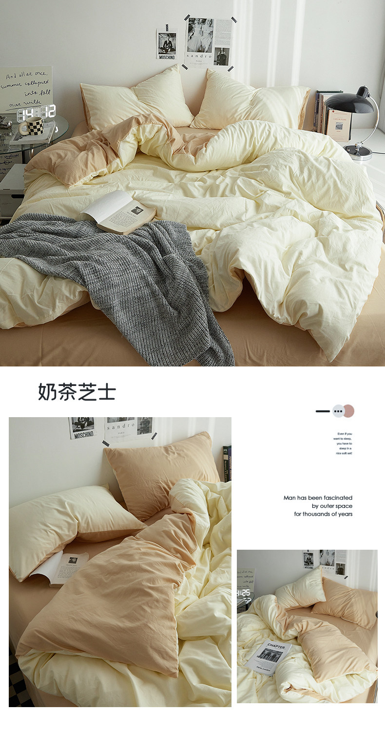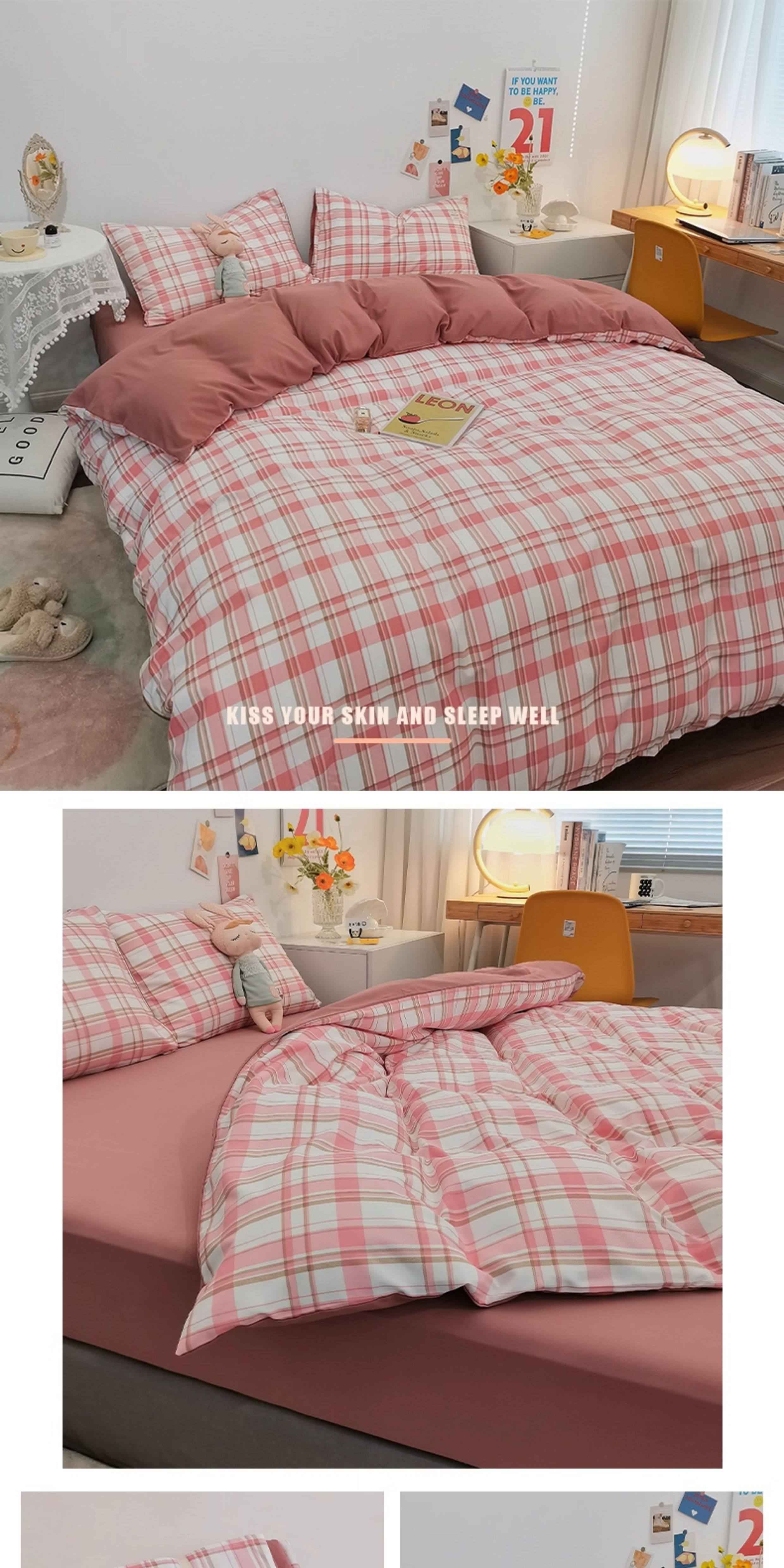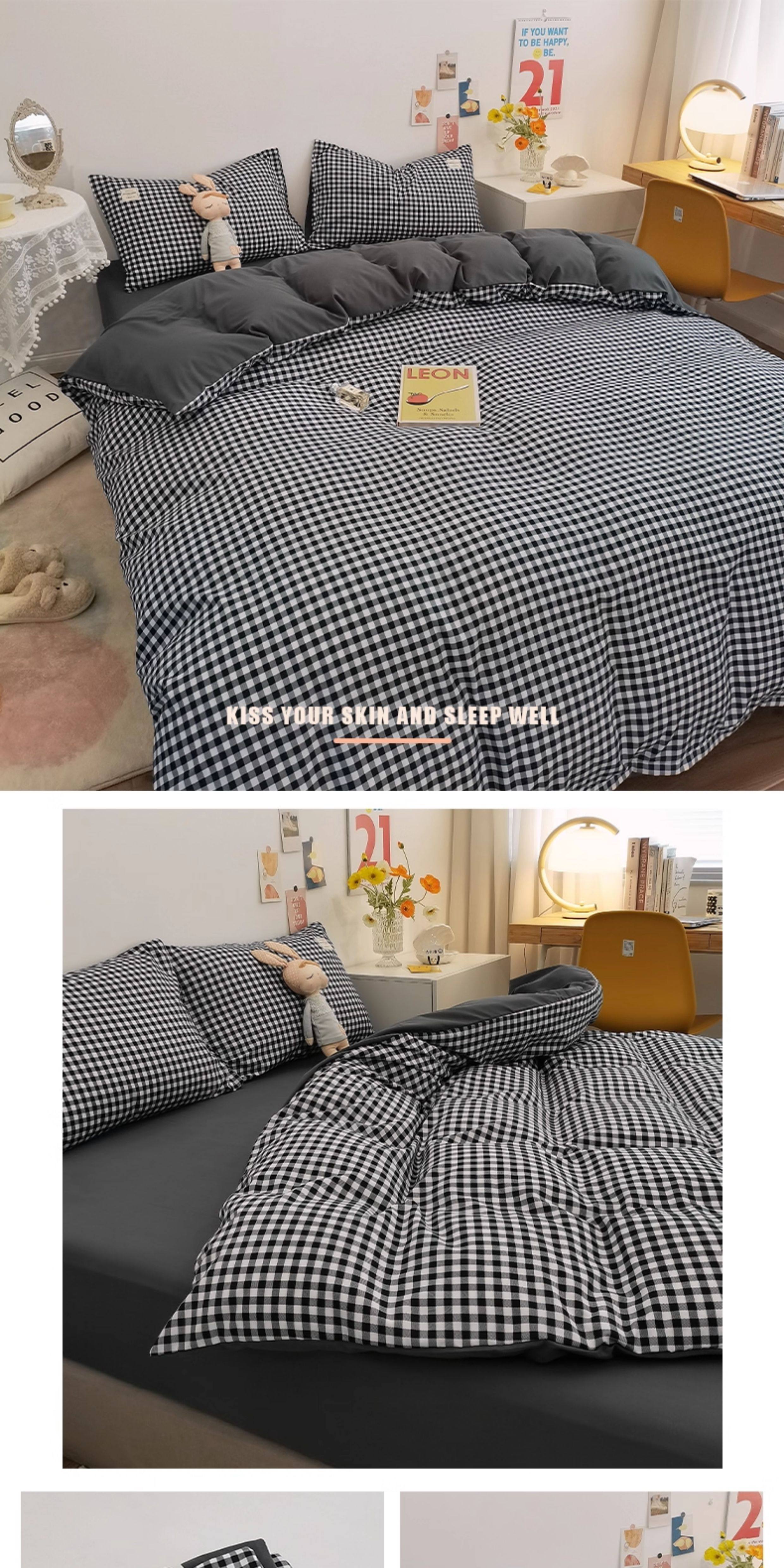 Simple Washed Cotton Four-Piece Set, Solid Color Plaid Stripe Four-Season Duvet Cover, Student Dormitory Bed Single Bed Fitted Sheet Three-Piece Set