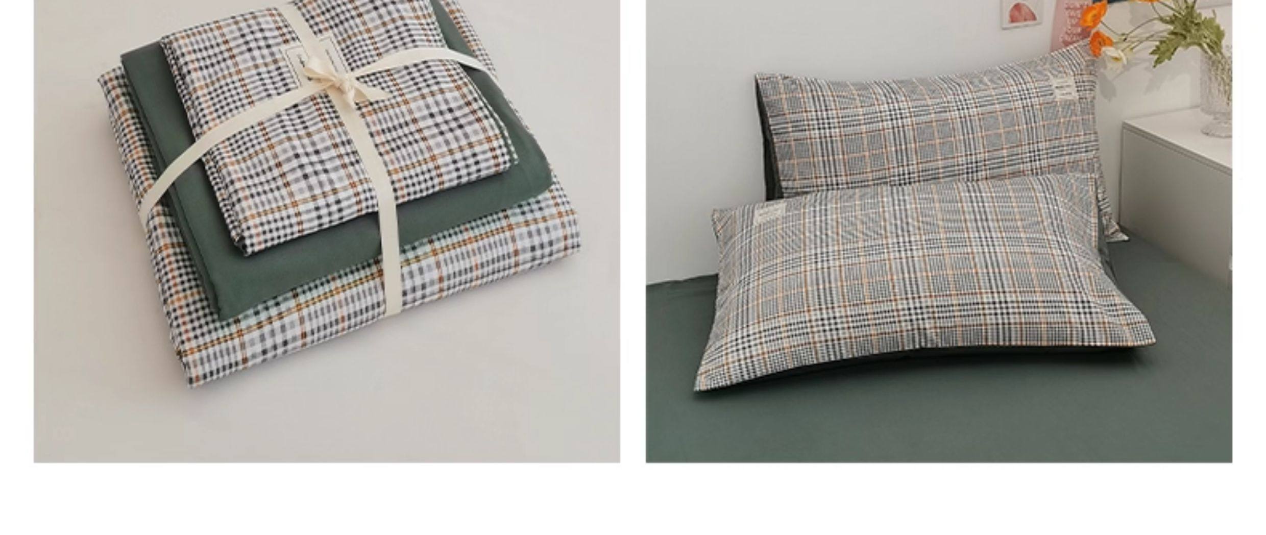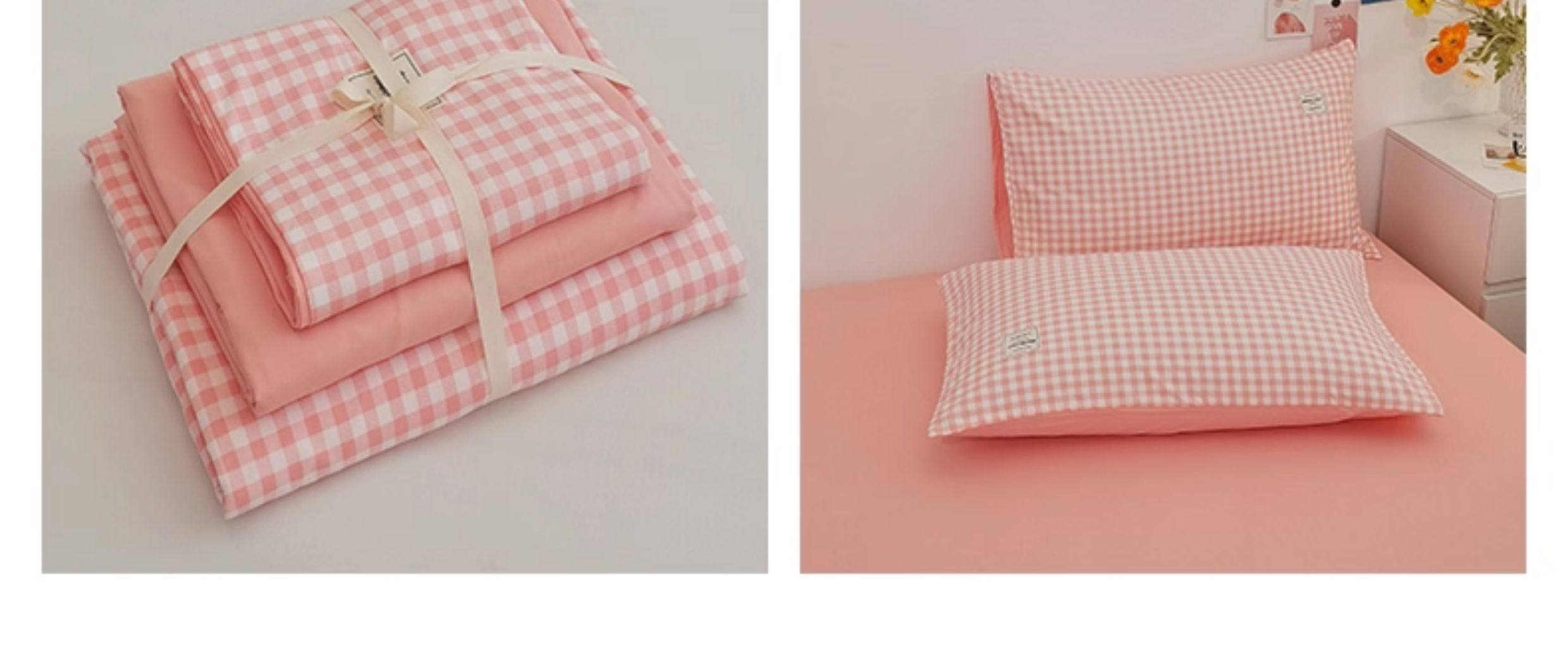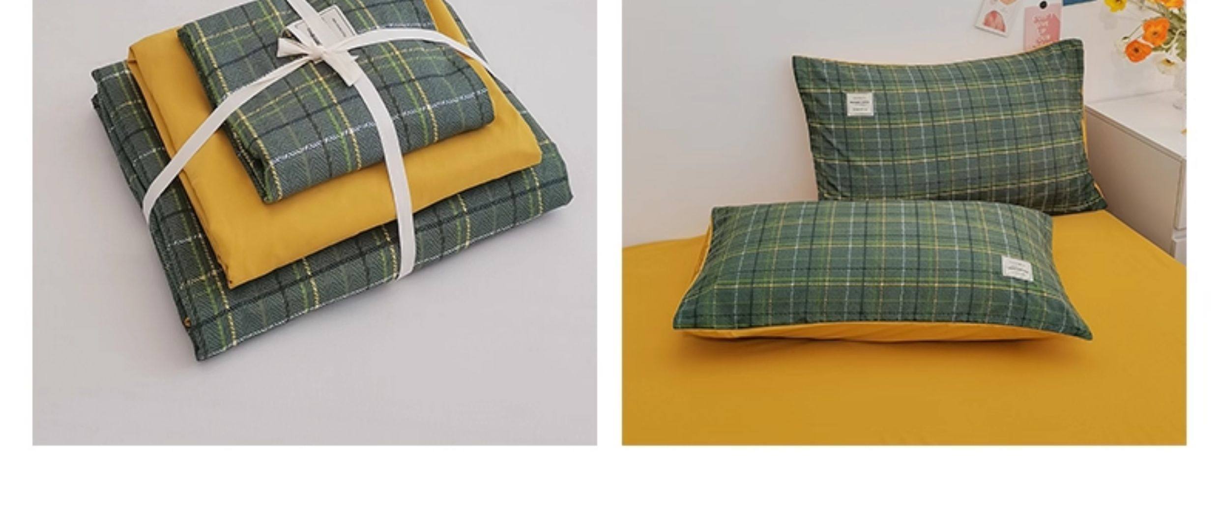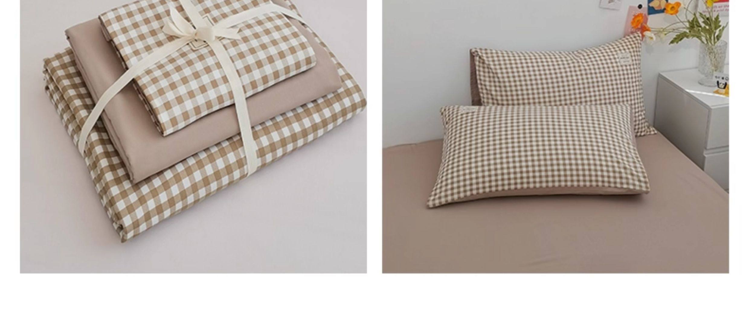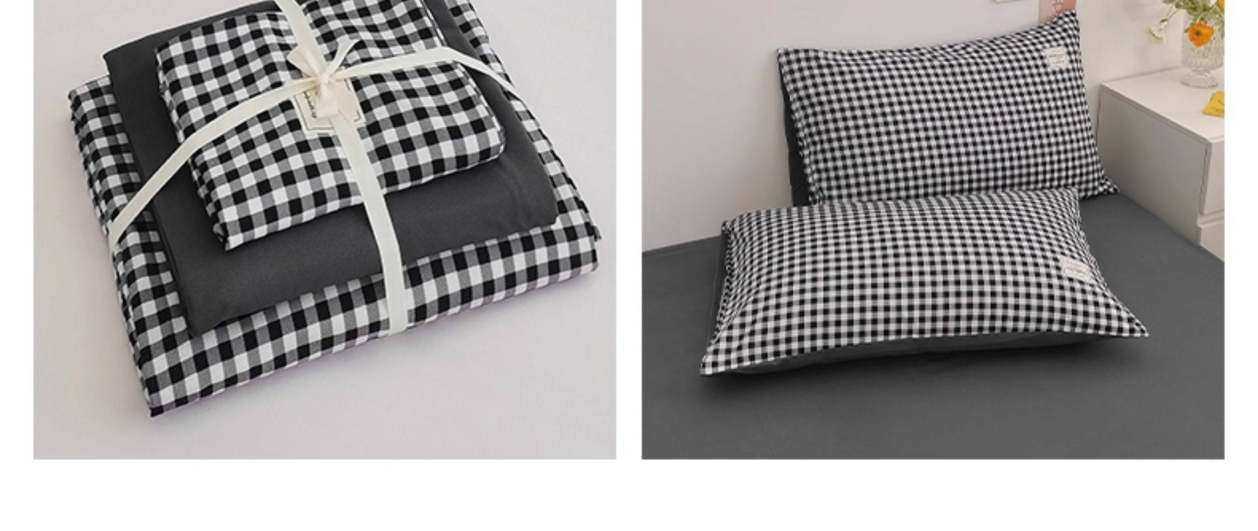 Simple Washed Cotton Four-Piece Set, Solid Color Plaid Stripe Four-Season Duvet Cover, Student Dormitory Bed Single Bed Fitted Sheet Three-Piece Set