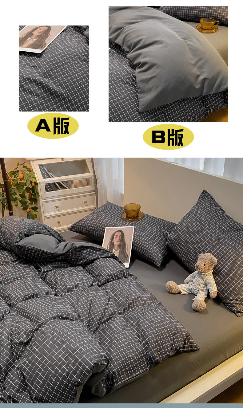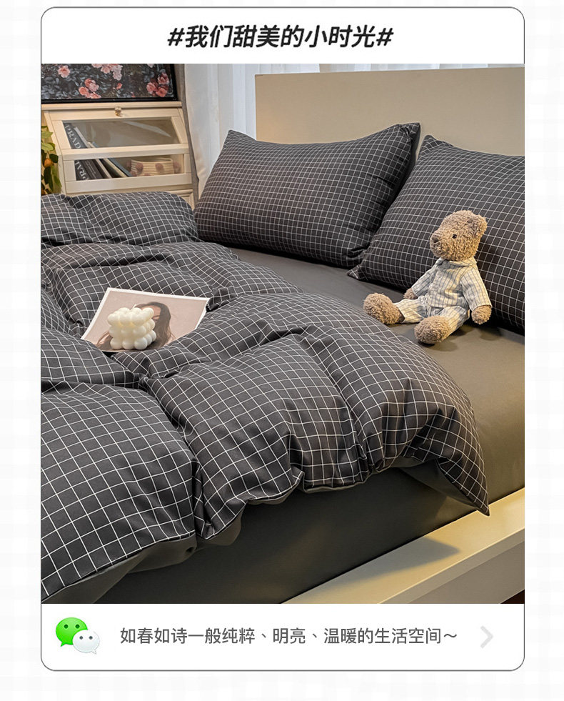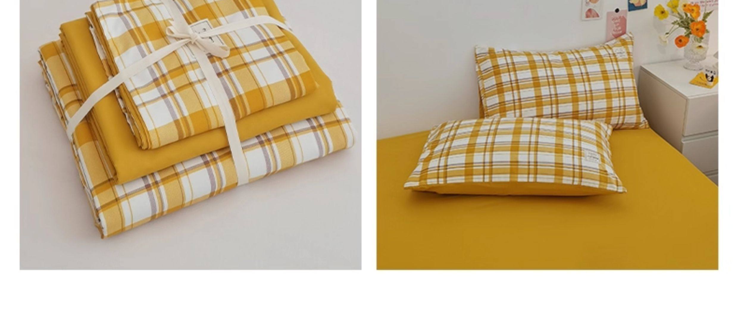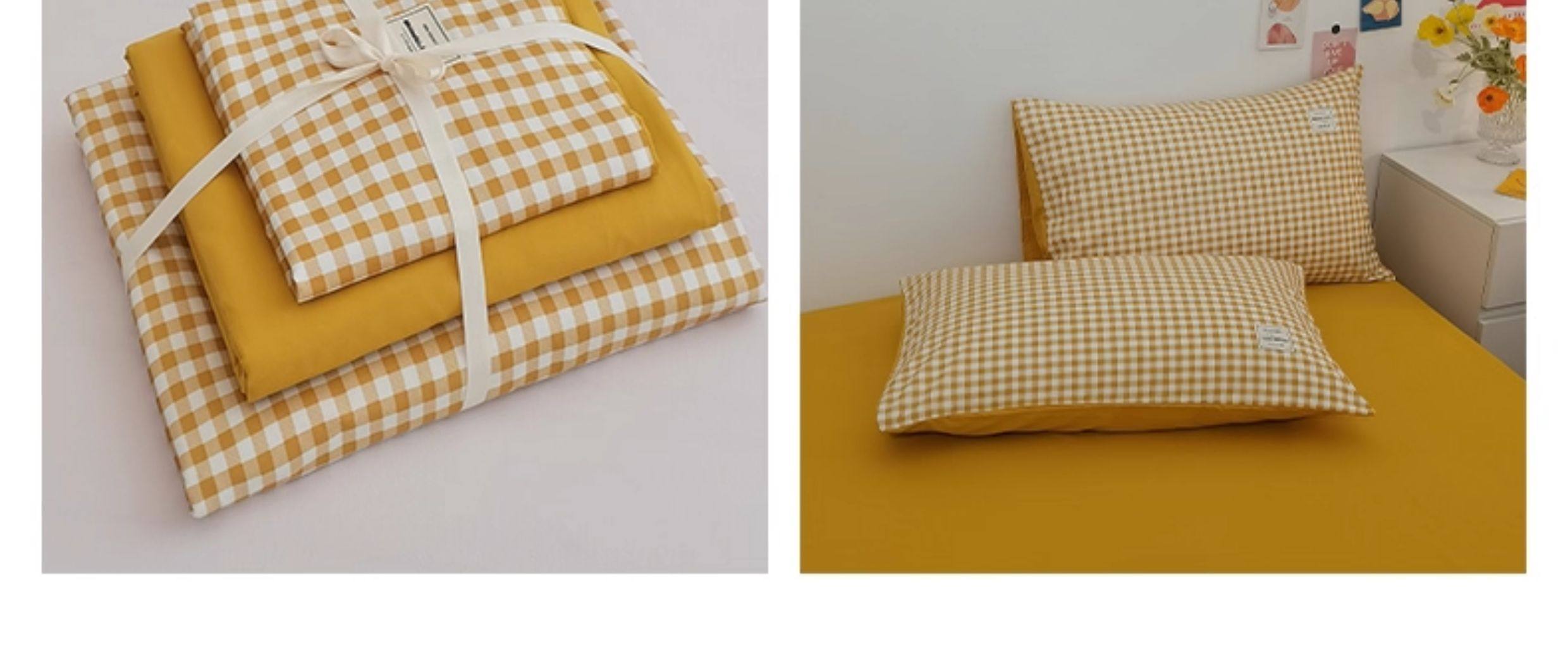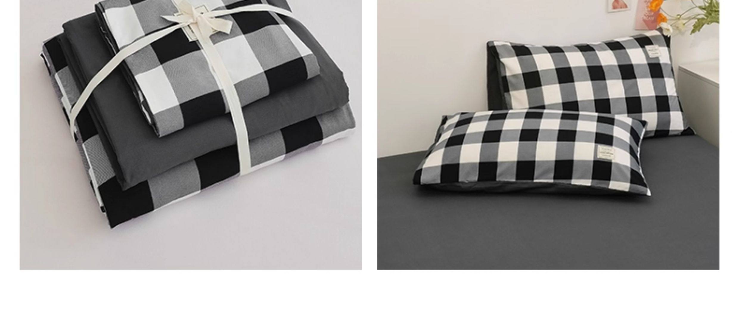 Simple Washed Cotton Four-Piece Set, Solid Color Plaid Stripe Four-Season Duvet Cover, Student Dormitory Bed Single Bed Fitted Sheet Three-Piece Set