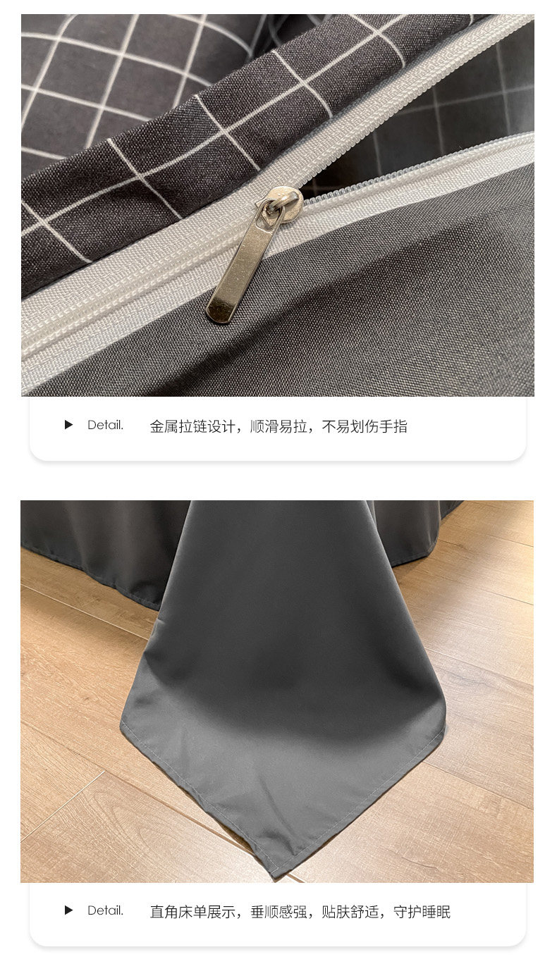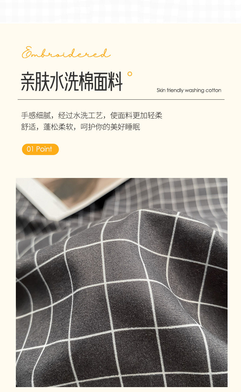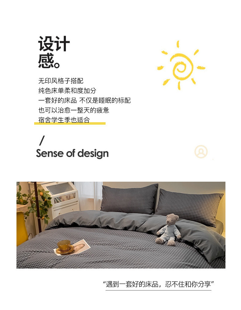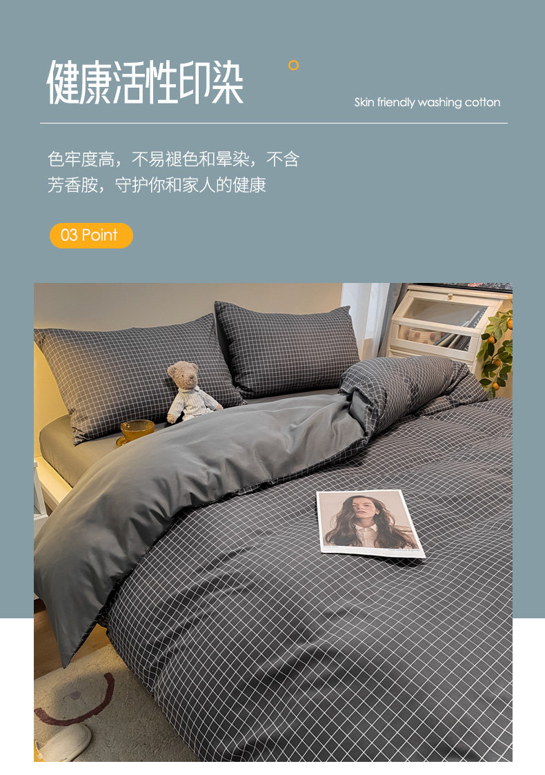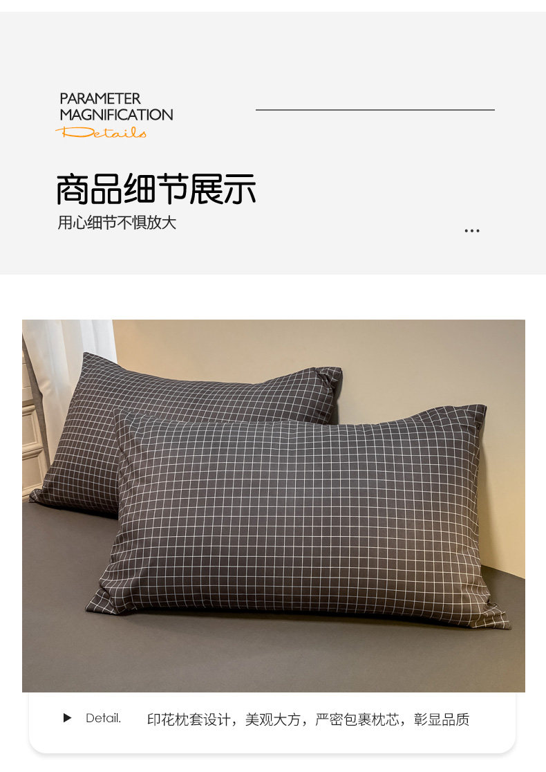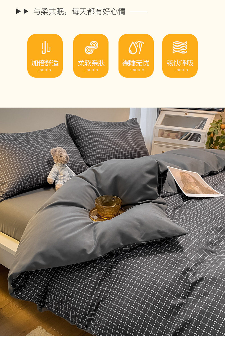 Simple Washed Cotton Four-Piece Set, Solid Color Plaid Stripe Four-Season Duvet Cover, Student Dormitory Bed Single Bed Fitted Sheet Three-Piece Set