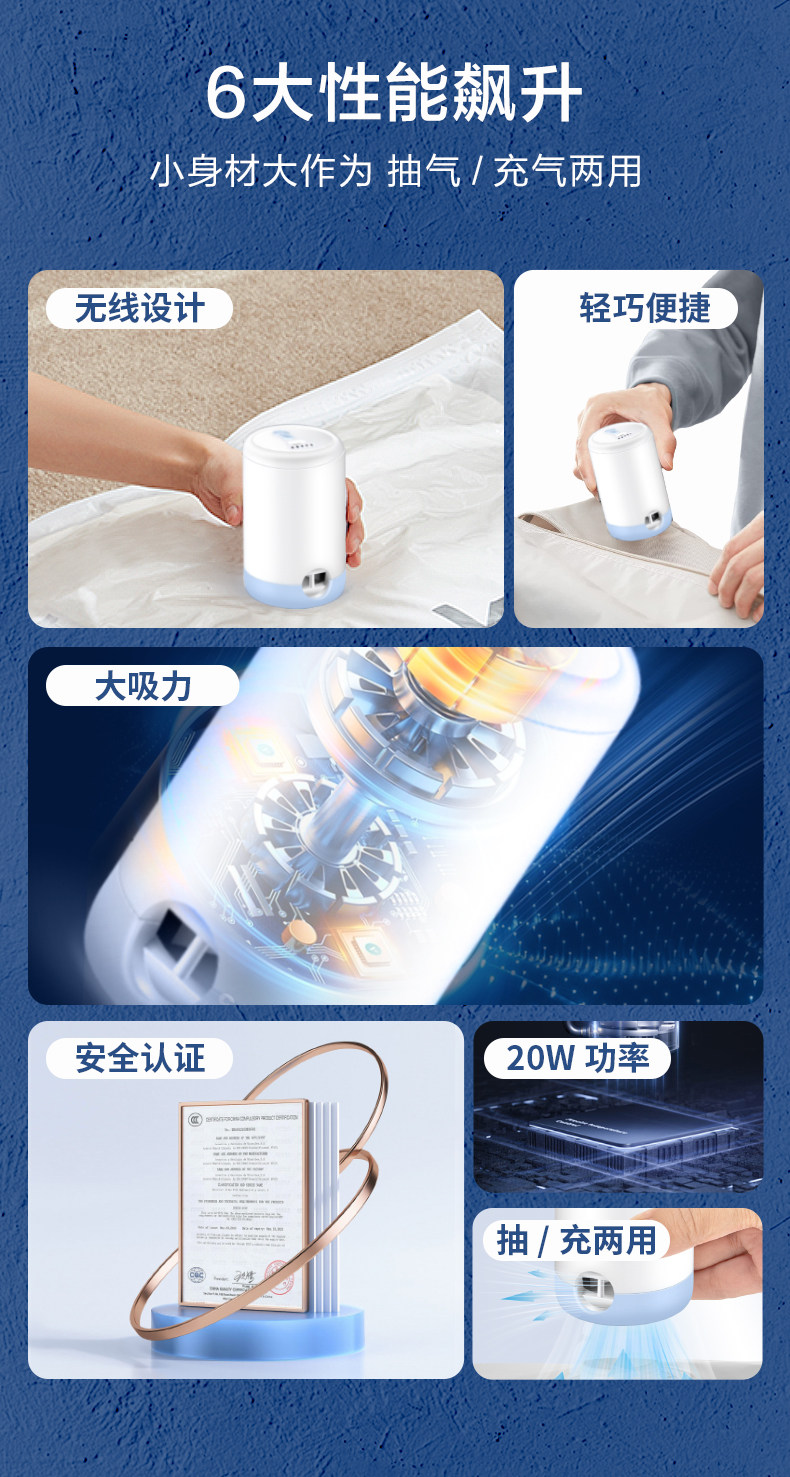 Storage Doctor Compression Bag Wireless Electric Air Pump Vacuum Machine Small Household Clothes Quilt Suitcase Special Use