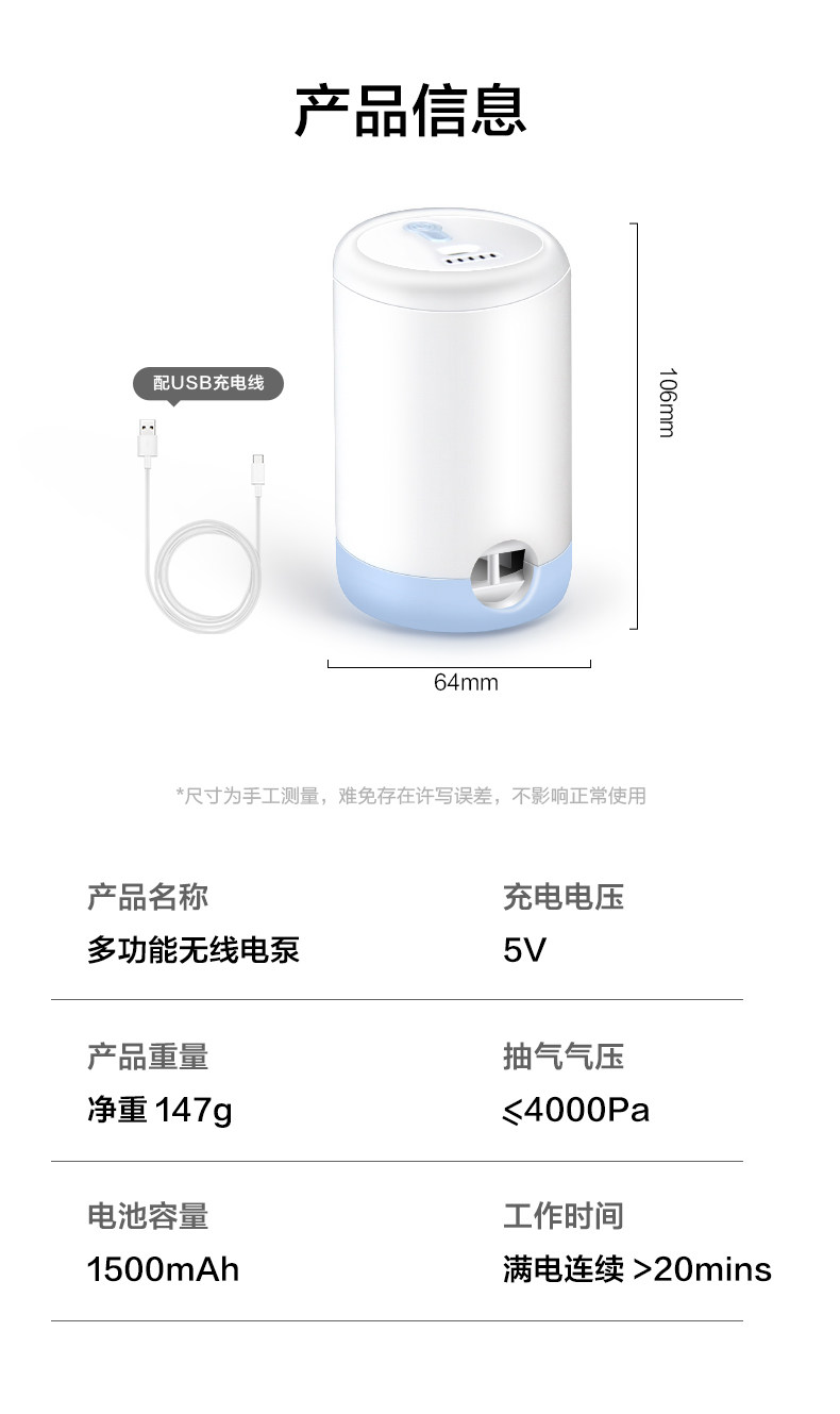| Color Classification | [Low Power - High Suction]Wireless Air Pump (Dual Use for Pumping and Filling),Wireless Air Pump (★Long-Term Use Without Burning★USB Fast Charging★Suitable for Luggage) (Jazz White) |