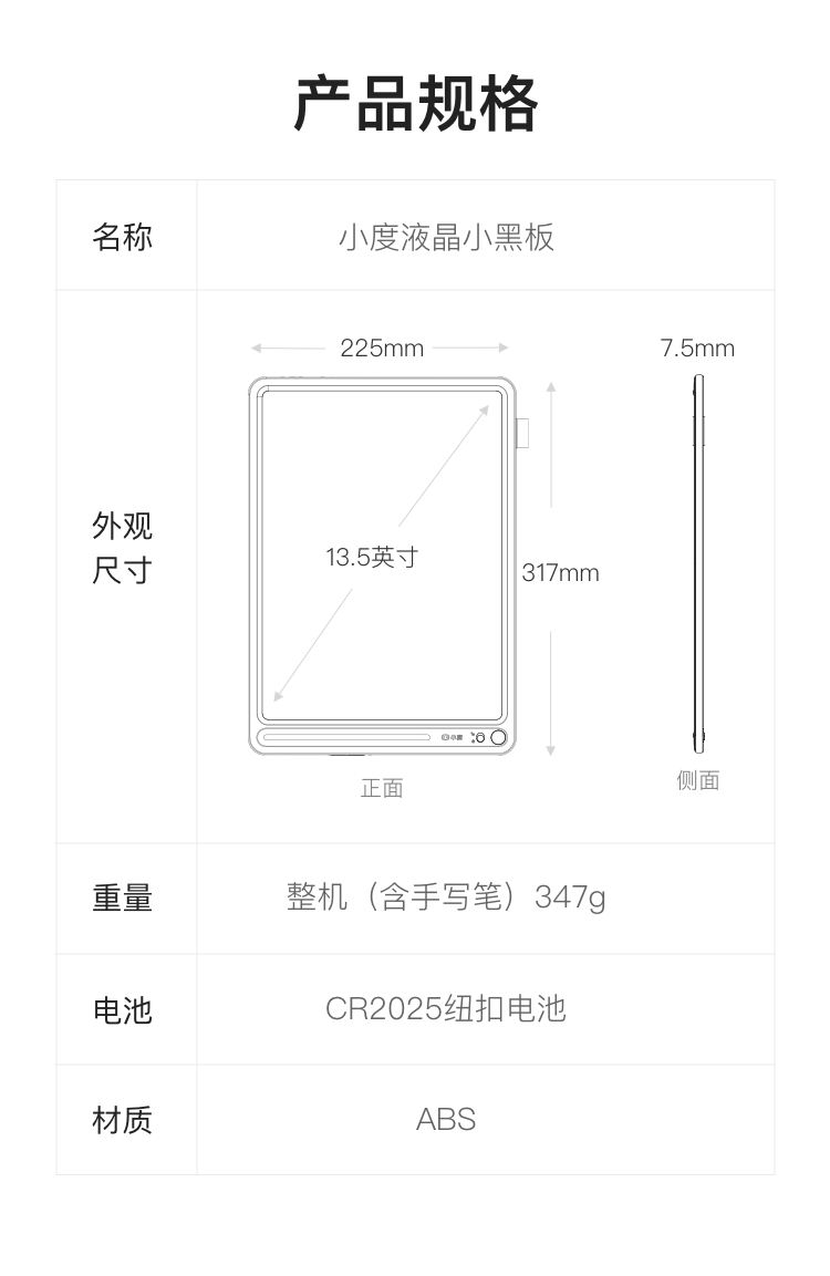 Xiaodu Lcd Small Blackboard 13.5inch Children's Drawing Board for Writing, Calculating, Handwriting, Drawing, and Doodling Electronic Drawing Board