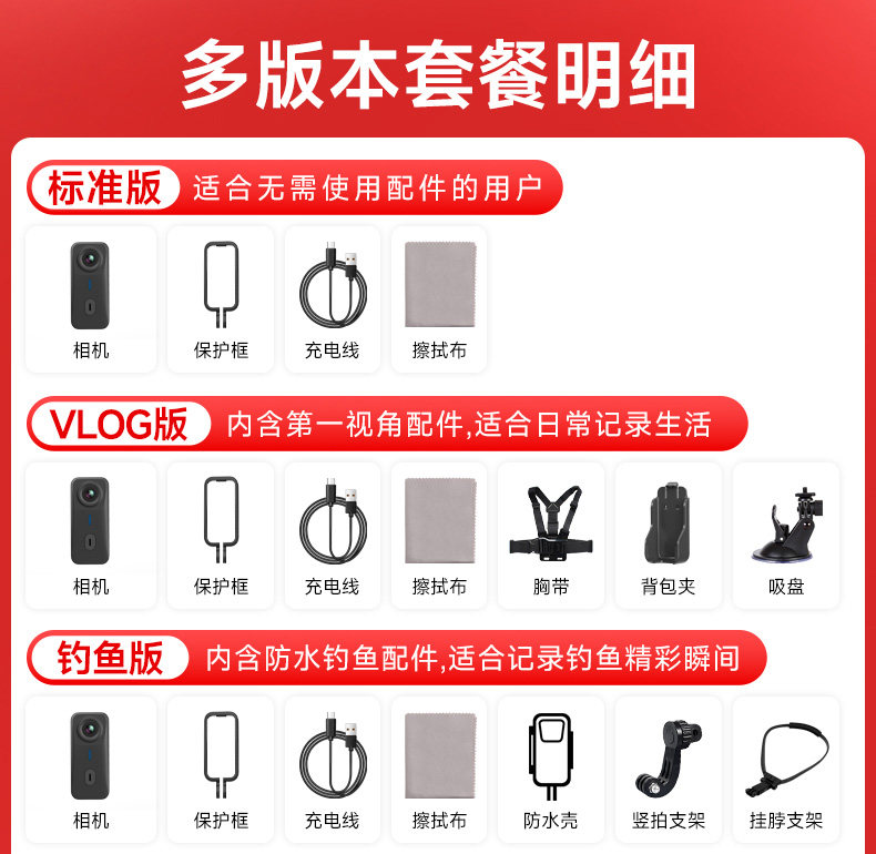 | Color Classification | [4K Ultra Clear] Standard Set,[4K Ultra Definition] Vlog Kit,[4K Ultra Definition] Travel Photography Kit,[4K Ultra Hd] Fishing Set,[4K Ultra Hd] Bicycle Set,[4K Ultra Hd] Cycling Suit,【1080P】Standard Package,【1080P】Vlog Set,【1080P】Travel Photography Kit,【1080P】Fishing Set,【1080P】Bicycle Set,【1080P】Cycling Suit |