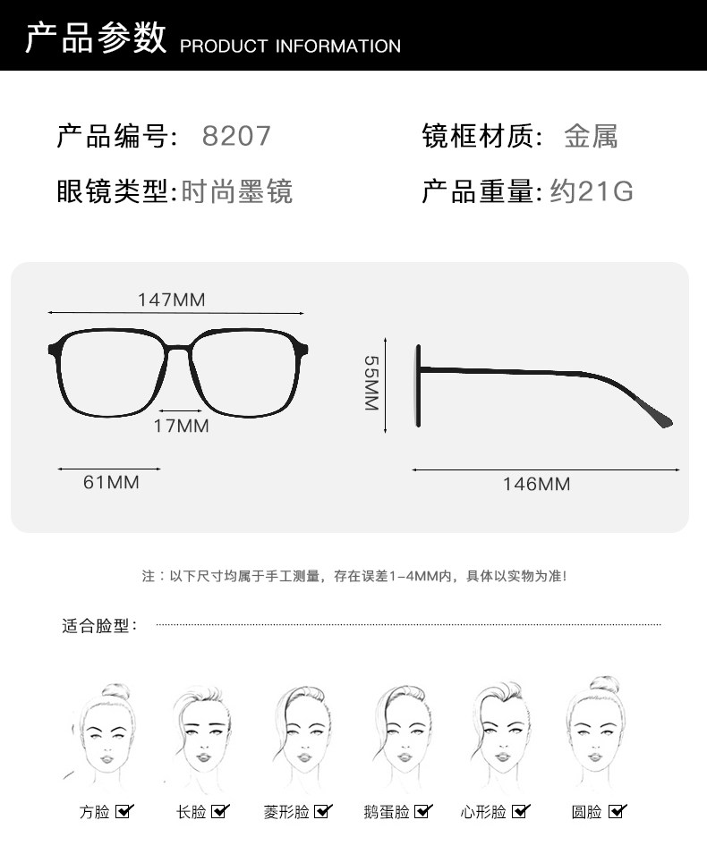 | Suitable for Face Shape | Round Face,Long Face,Square Face,Oval Face |