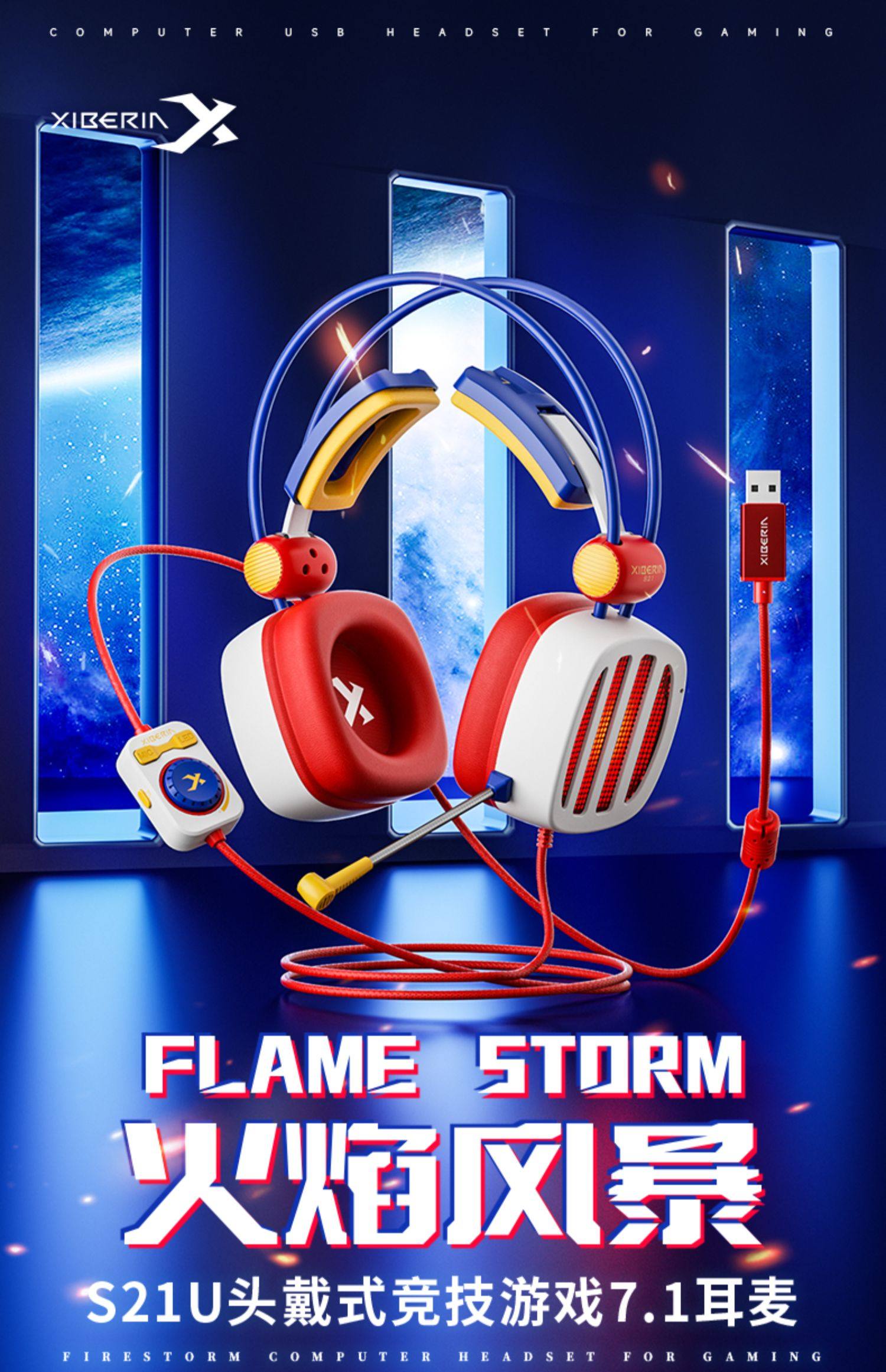 Siberia S21 Flame Storm Gaming Headset Limited Edition Mobile Game Computer Wired Headset 7.1 Channel