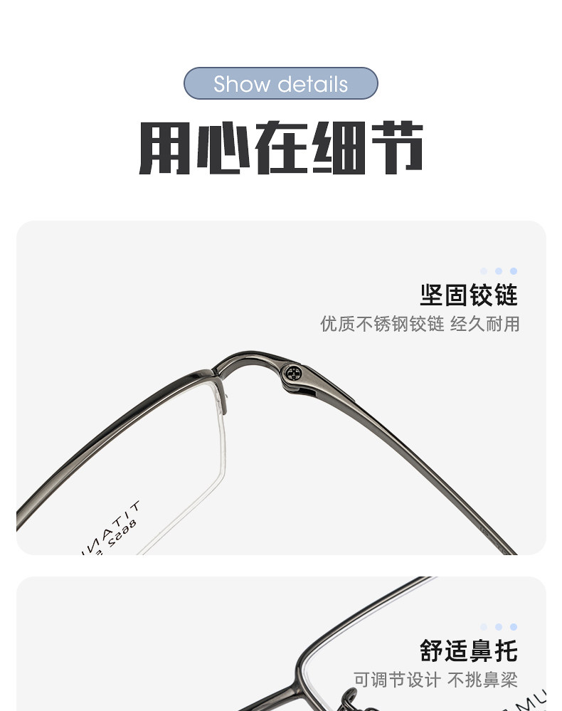 Gao Qilan's Same Style Half-Frame Myopia Glasses Frame for Women, Can Be Fitted with Prescription Lenses, Ultra-Light Pure Titanium Wire, Blue Light Blocking Eyeglass Frame for Men