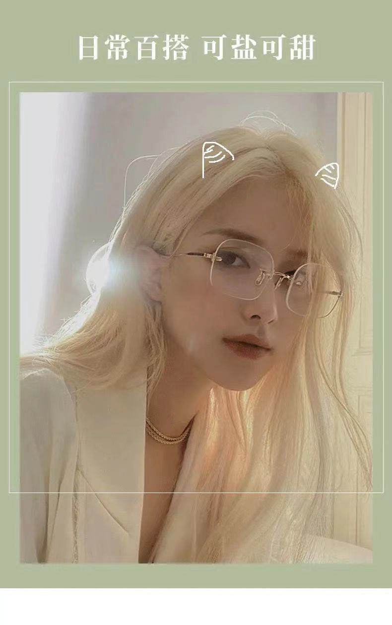 Xiaohongshu Style Retro Frameless Glasses for Women, Nearsightedness Makeup-Free Essential, Ins-Style Ultra-Light Non-Prescription Plain Glasses for Men