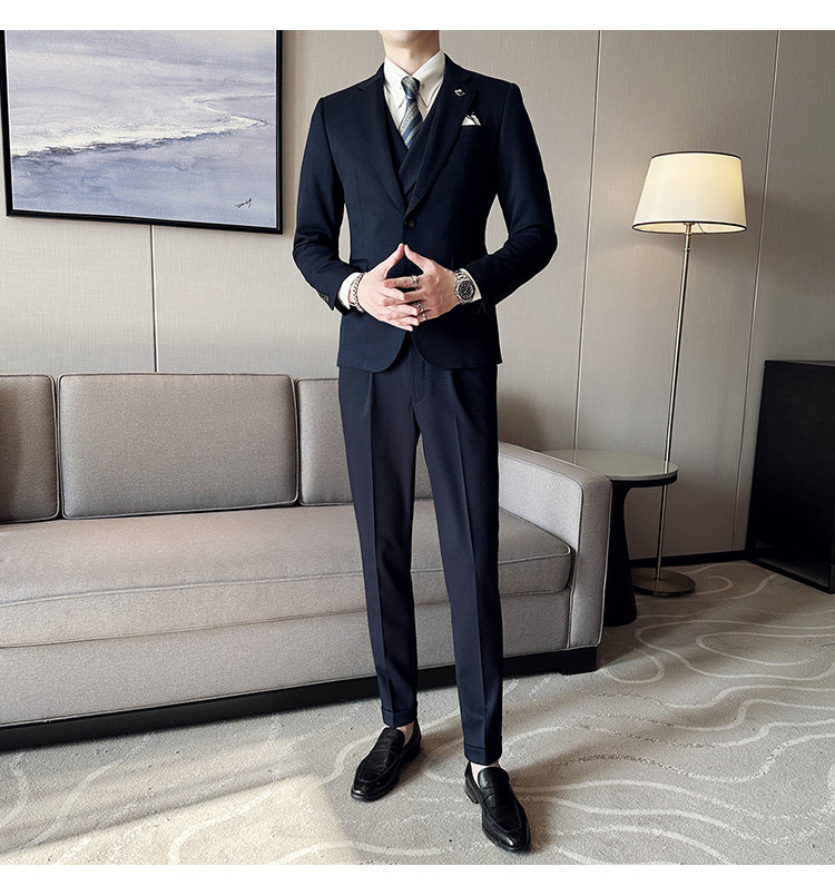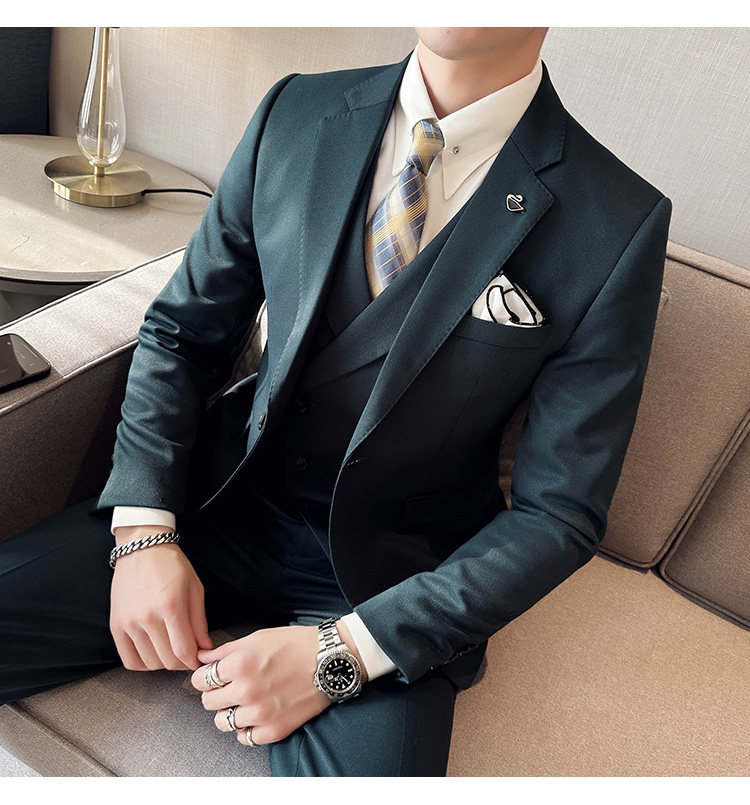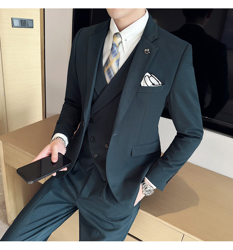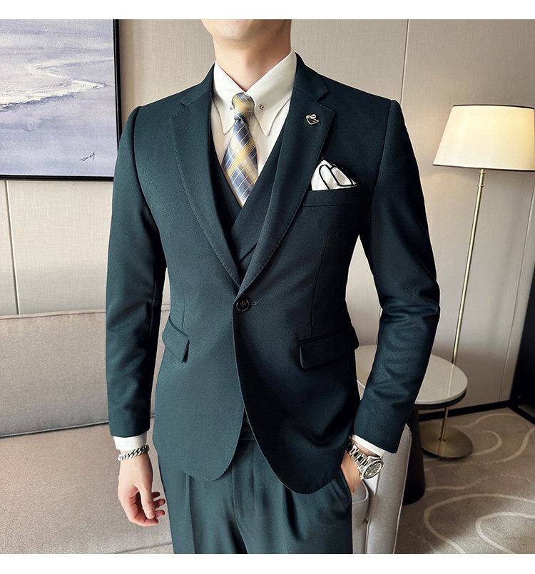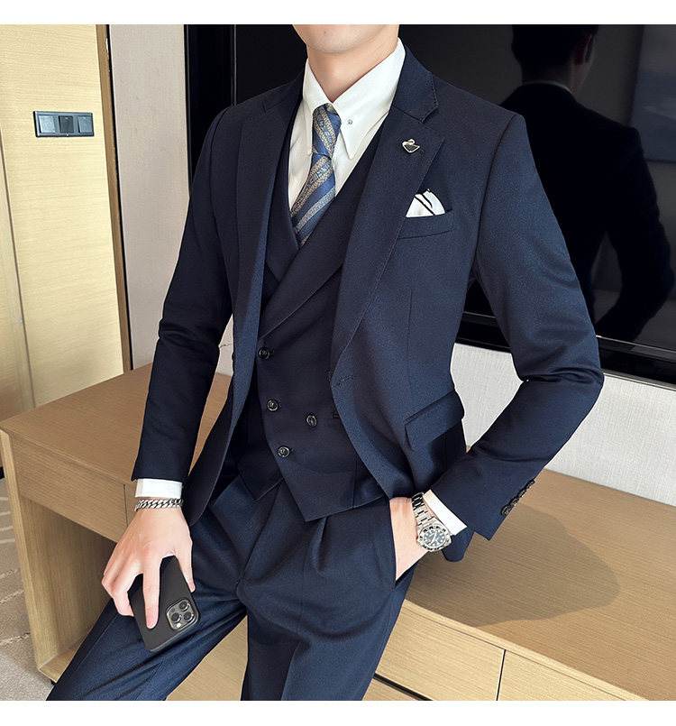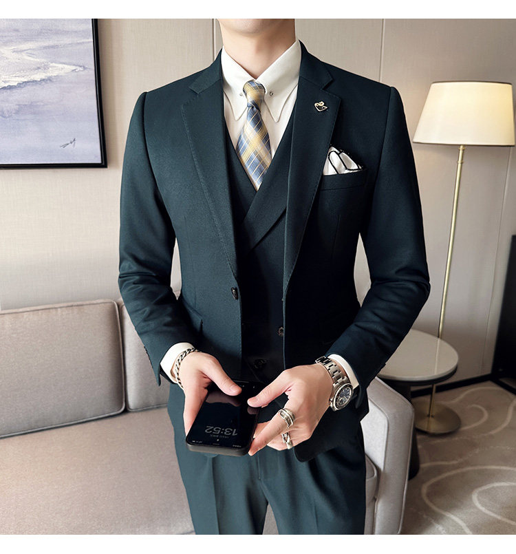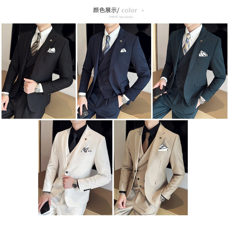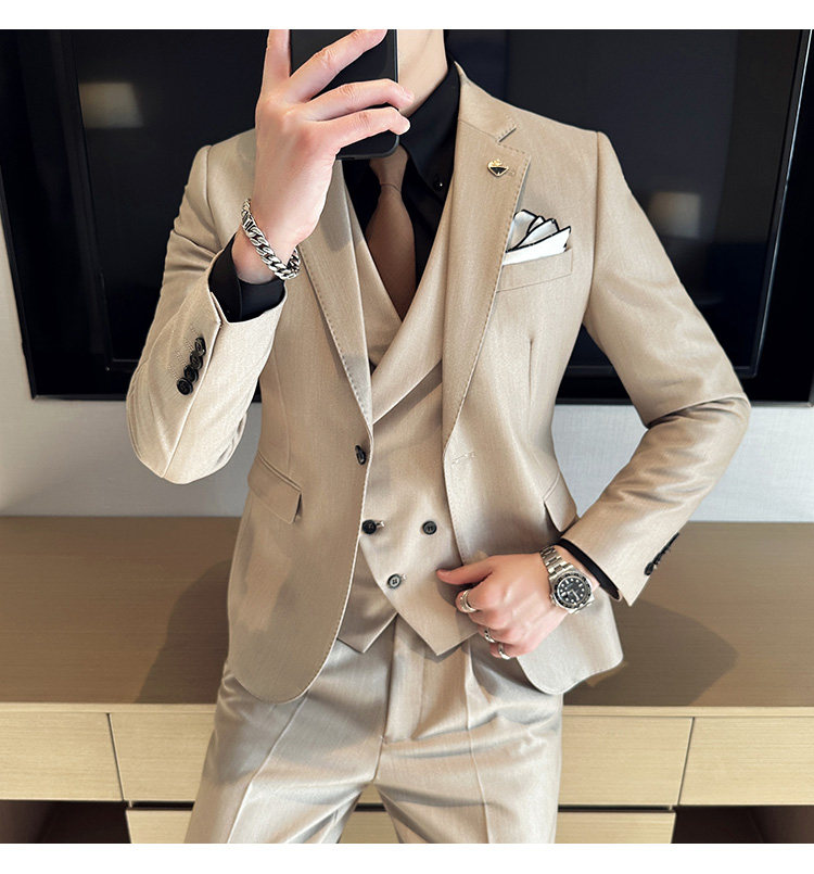 Men's Suit Set, Korean Style Casual Business Formal Jacket, Slim Fit, Groomsmen, Groom, Wedding Dress, No-Iron Suit