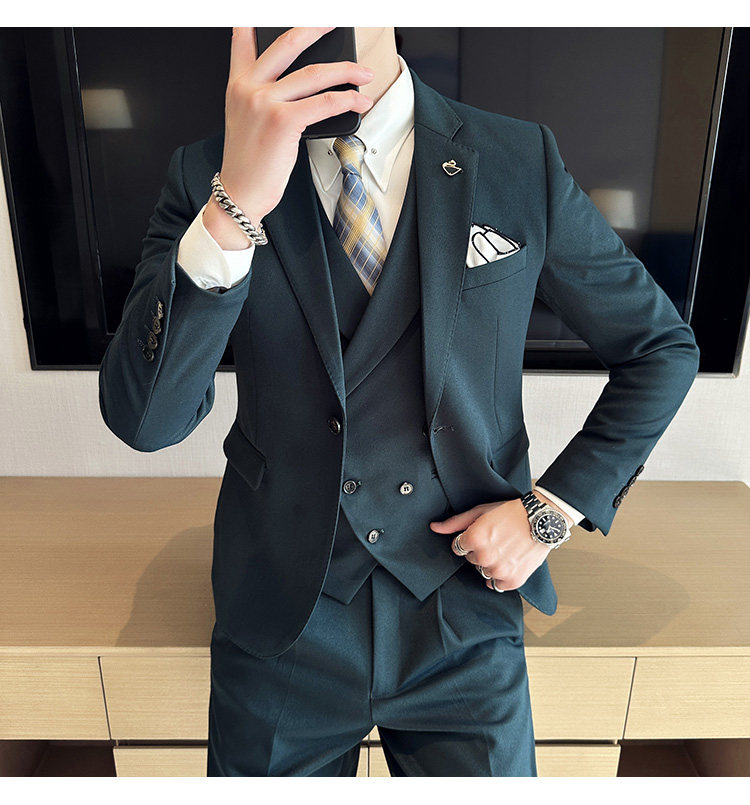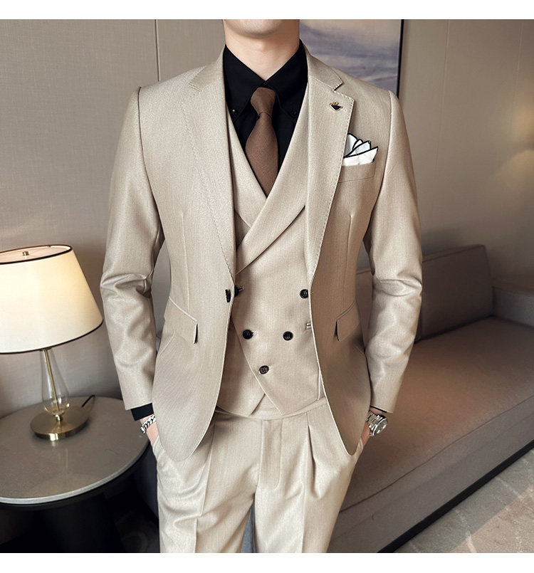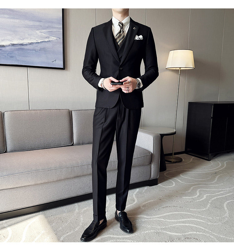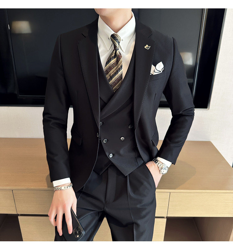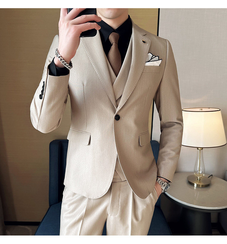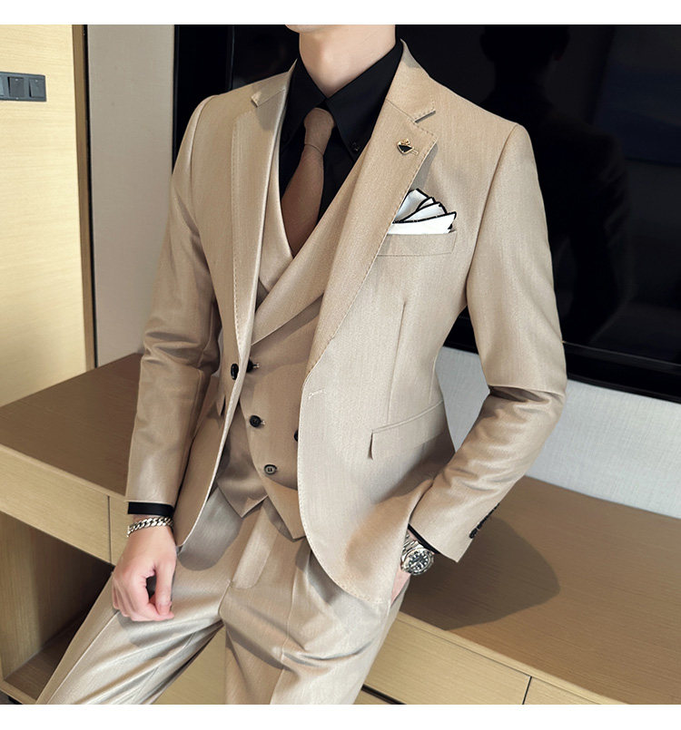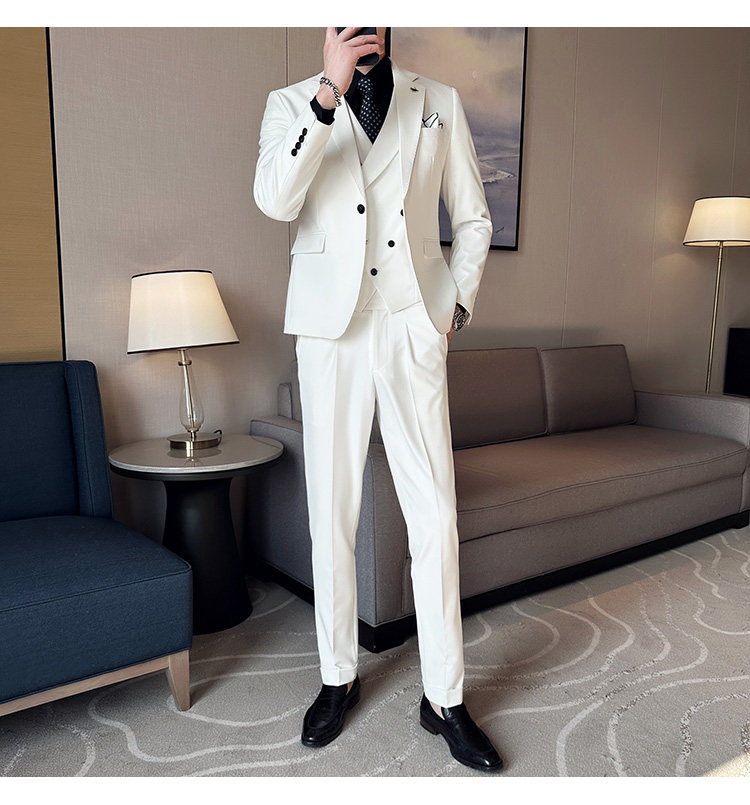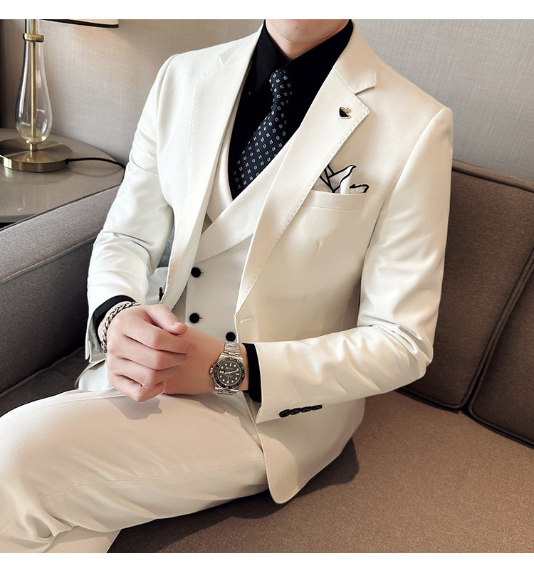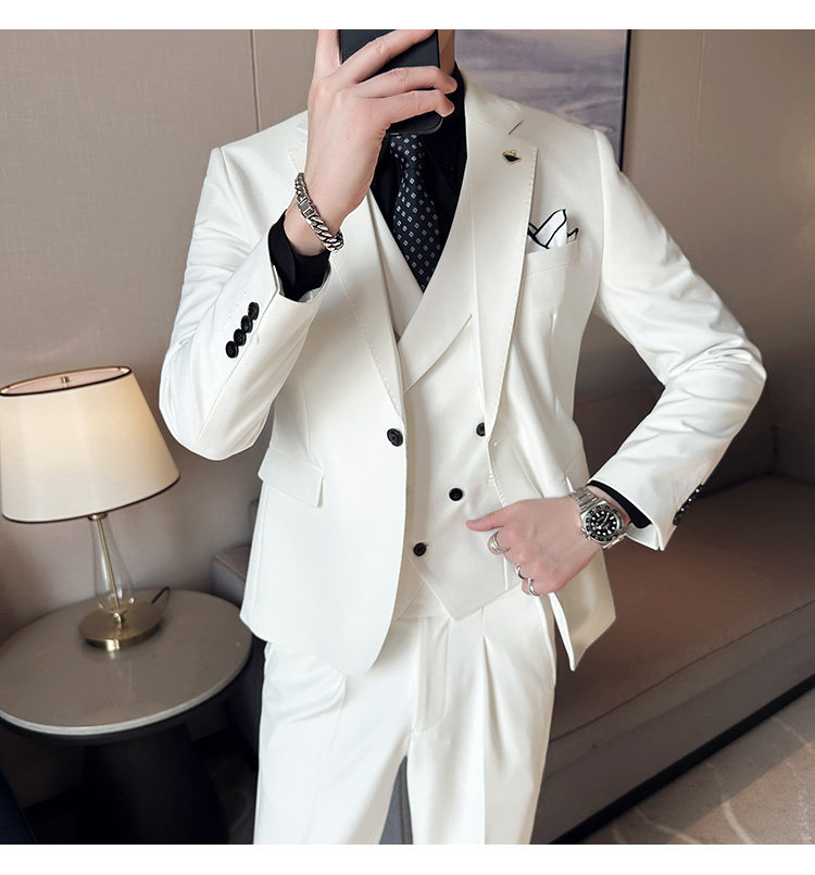 Men's Suit Set, Korean Style Casual Business Formal Jacket, Slim Fit, Groomsmen, Groom, Wedding Dress, No-Iron Suit