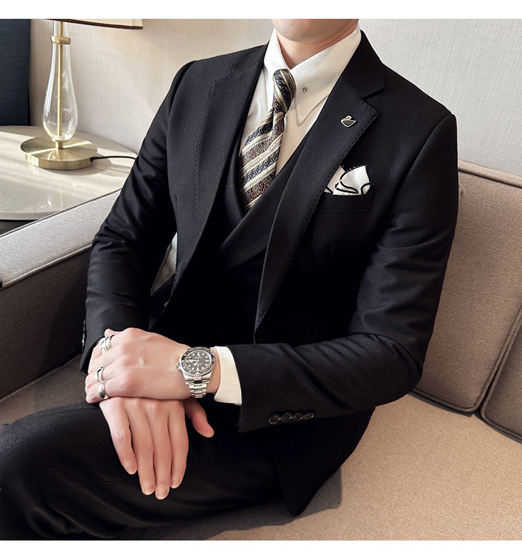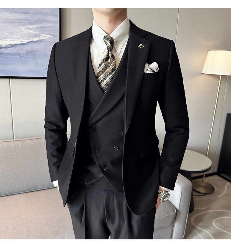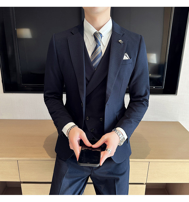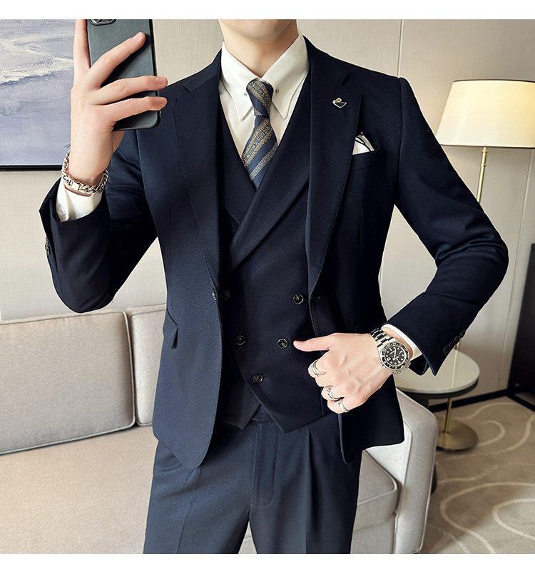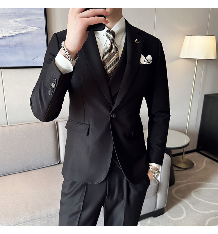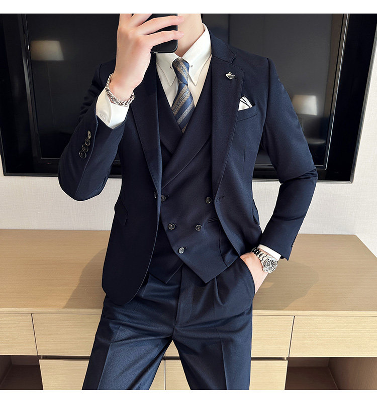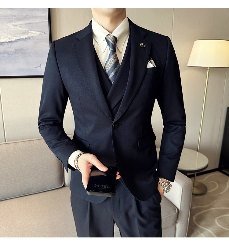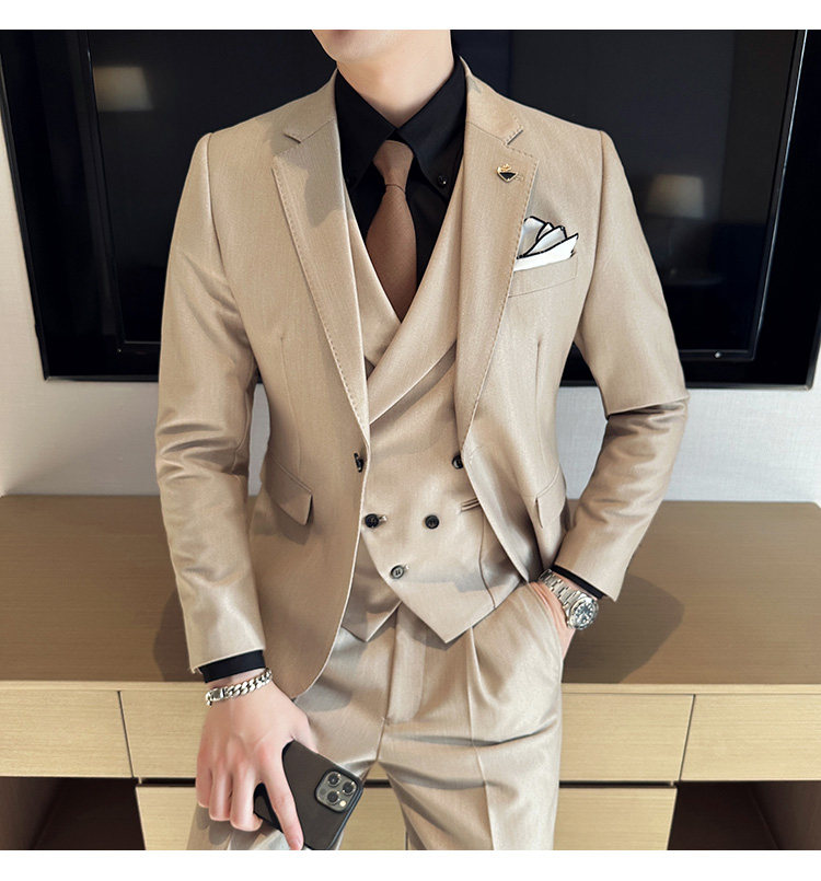 Men's Suit Set, Korean Style Casual Business Formal Jacket, Slim Fit, Groomsmen, Groom, Wedding Dress, No-Iron Suit