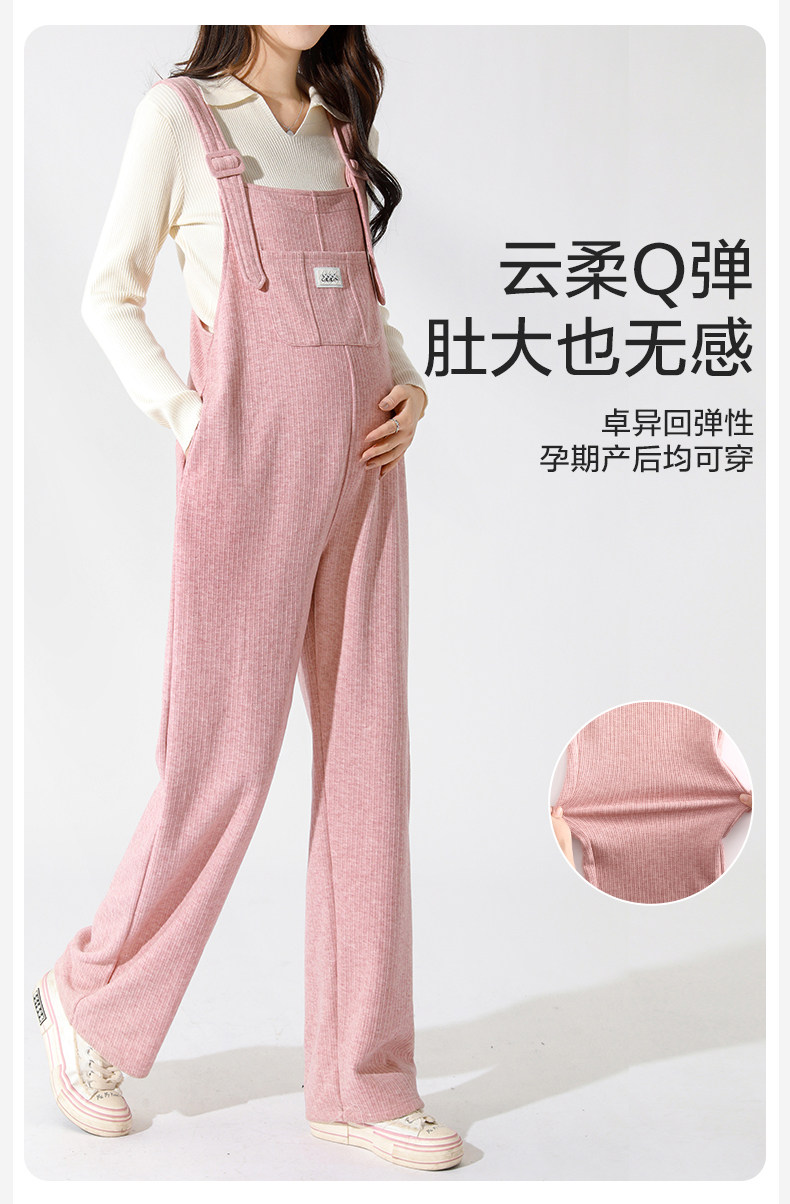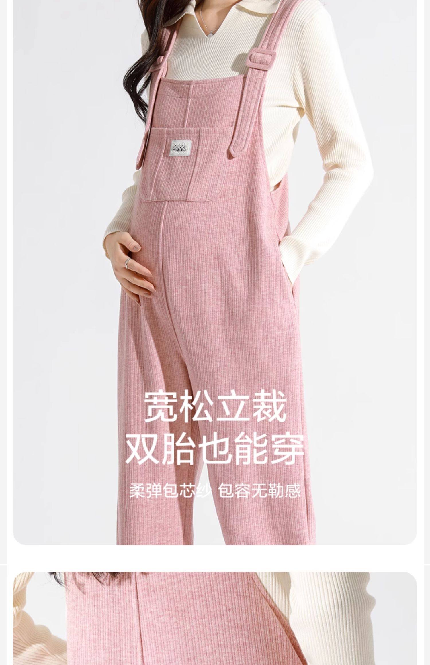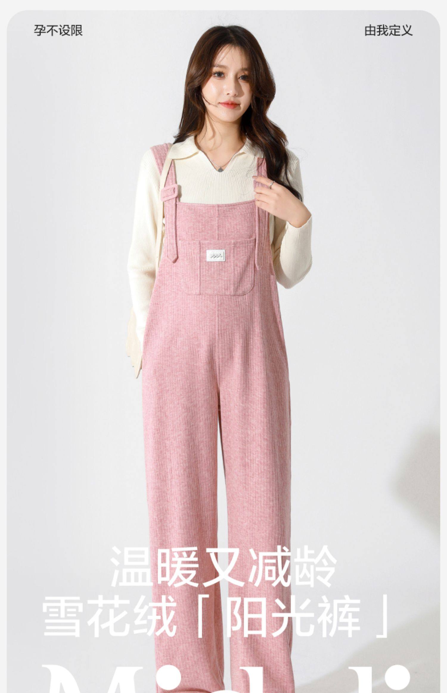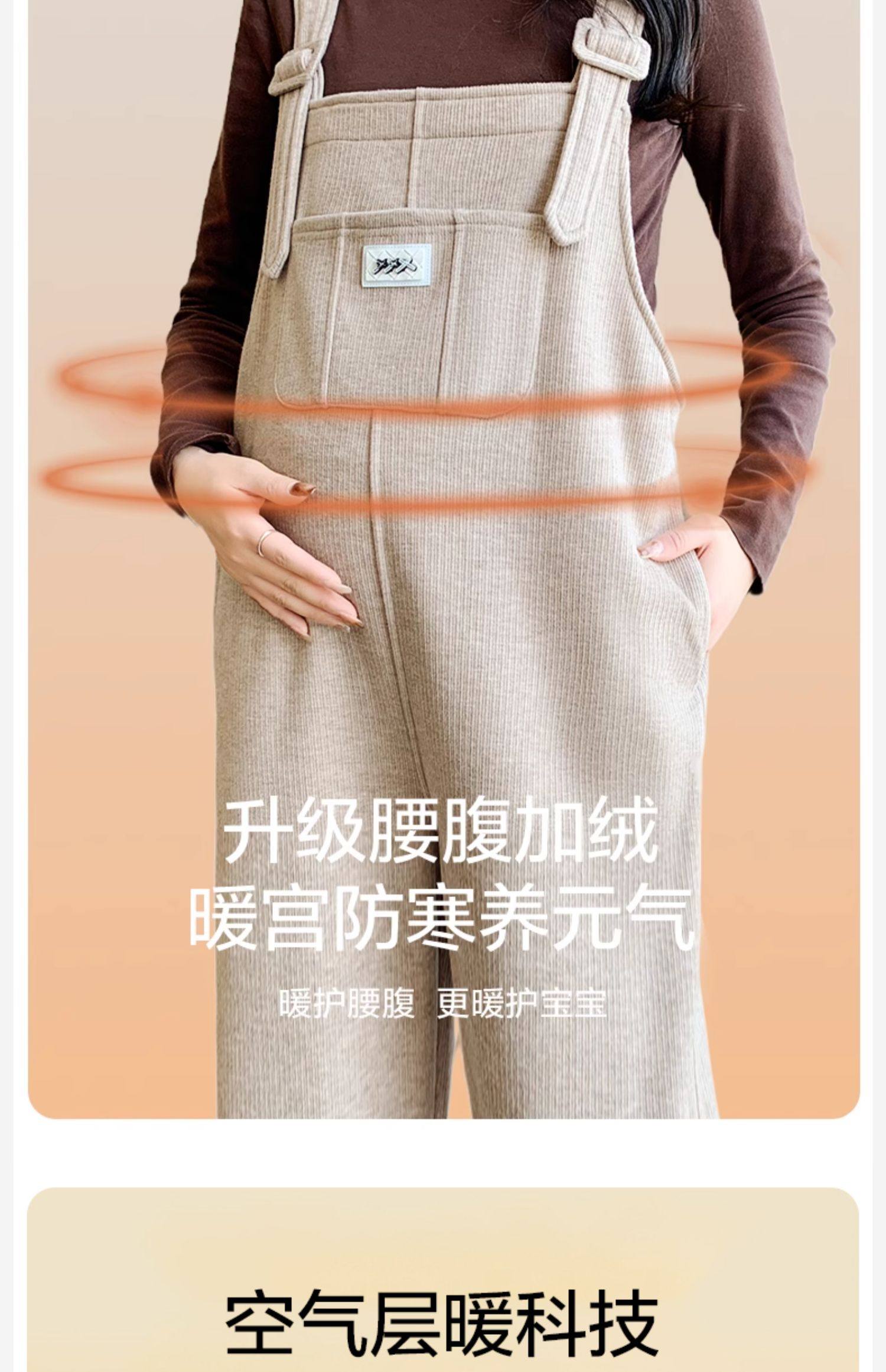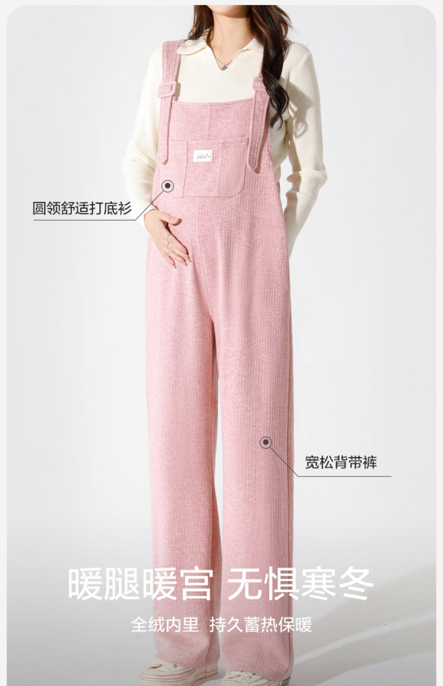 Maternity Overalls Set for Autumn and Winter, Fleece-Lined and Thickened, Suitable for Wearing Outside, Maternity Pants for Petite Women during Pregnancy, Wide-Leg Long Pants for Winter