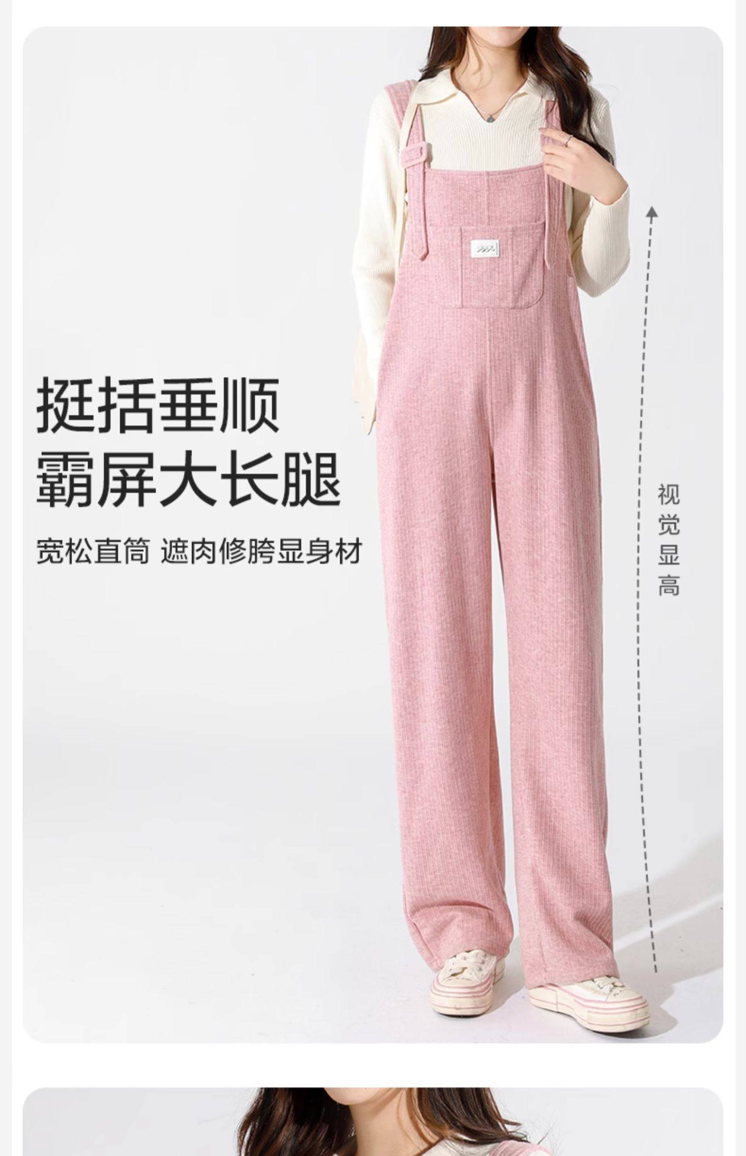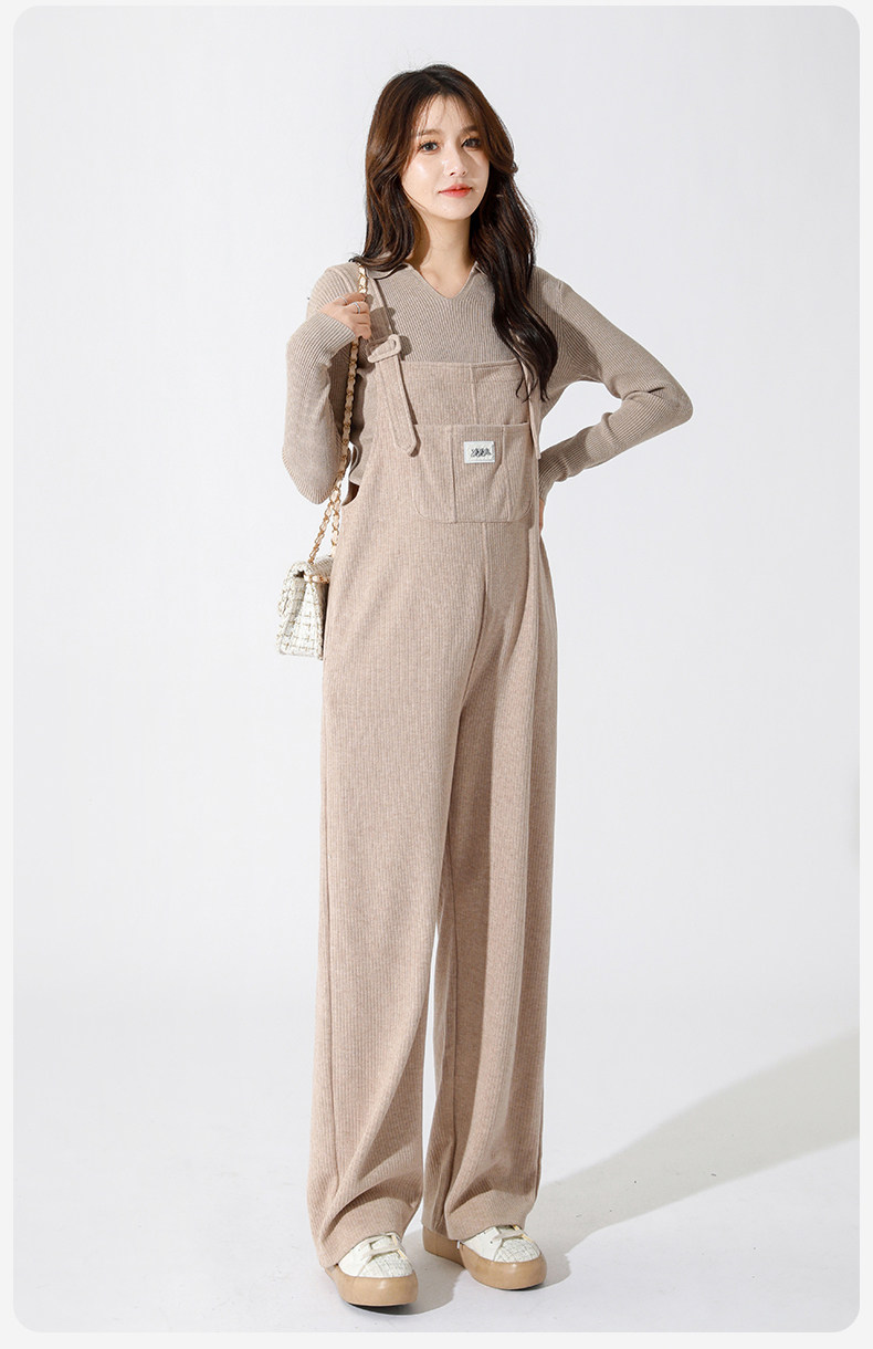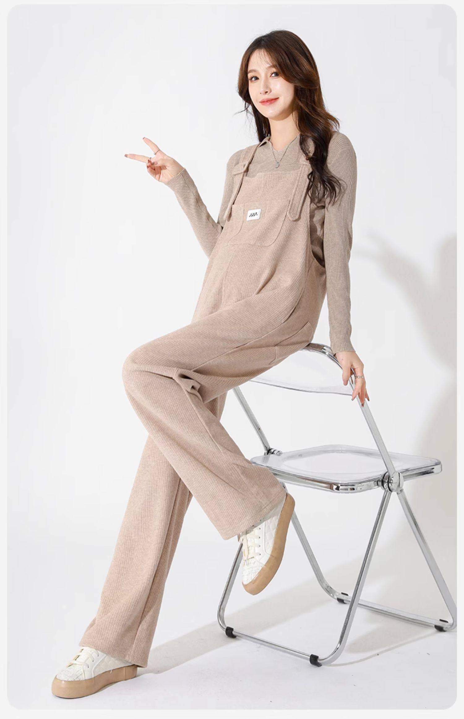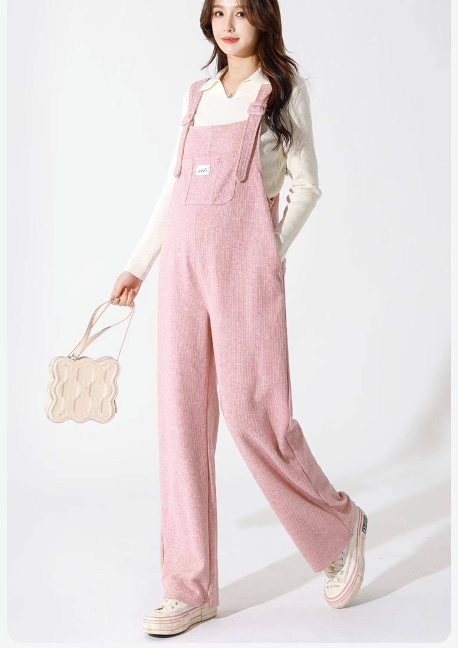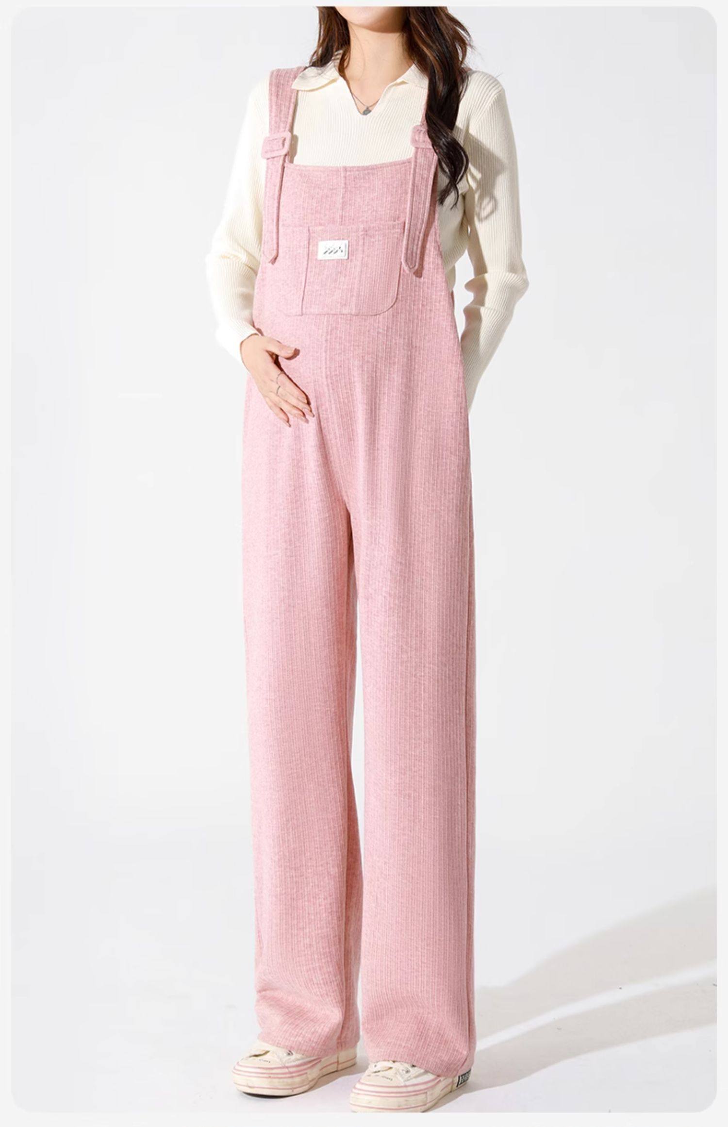 Maternity Overalls Set for Autumn and Winter, Fleece-Lined and Thickened, Suitable for Wearing Outside, Maternity Pants for Petite Women during Pregnancy, Wide-Leg Long Pants for Winter