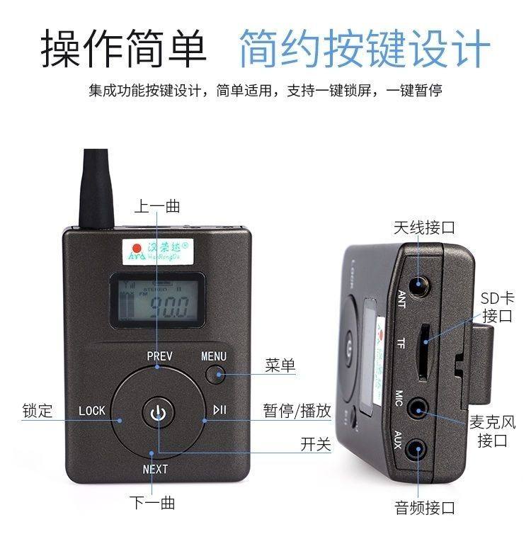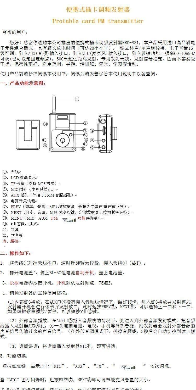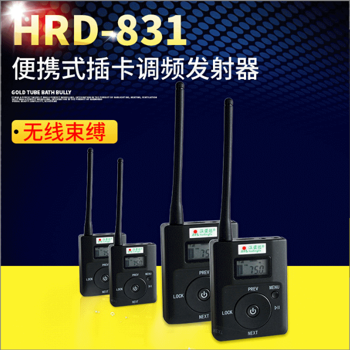 Hanrongda 831 Portable Wireless Fm Radio Transmitter with Card Slot, Audio Line Input, and Microphone