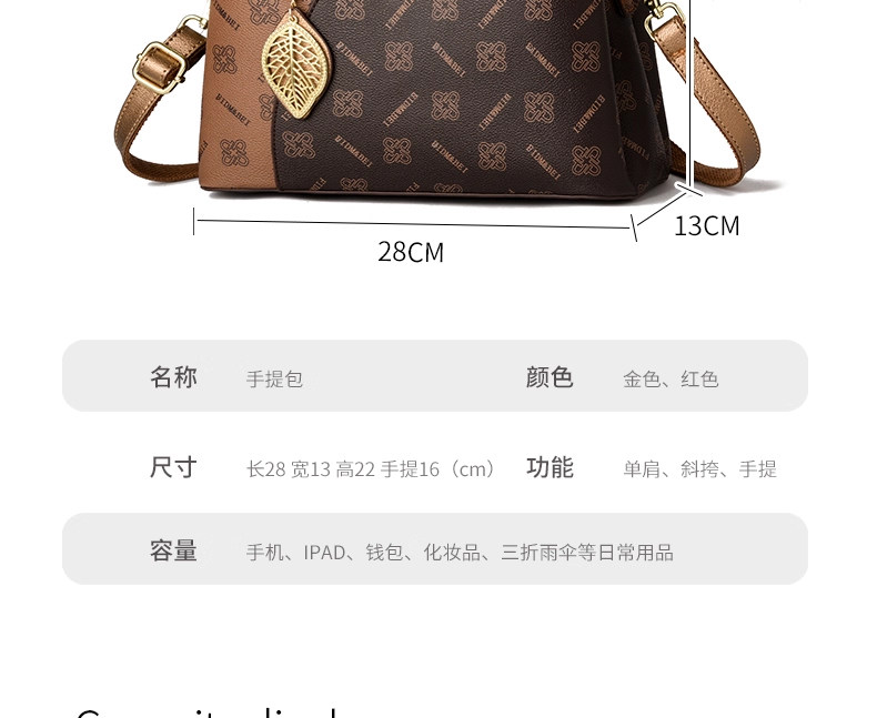 Brand Bag 2024 New Handbag for Women, High-End, Large Capacity, Fashionable, Middle-Aged Mother's Shoulder Crossbody Bag