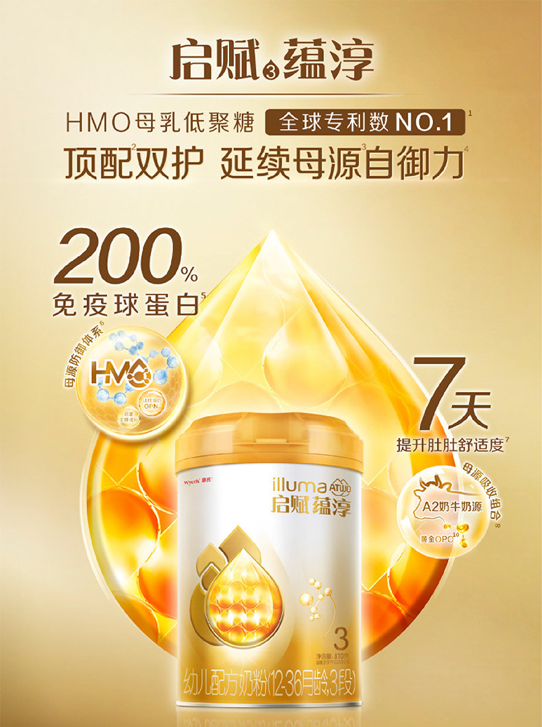 [High-End Flagship Product] Wyeth Qifu Yunchun Infant Formula Milk Powder Stage 3 for 1-3 Years Old + Hmo + A2 Milk Source