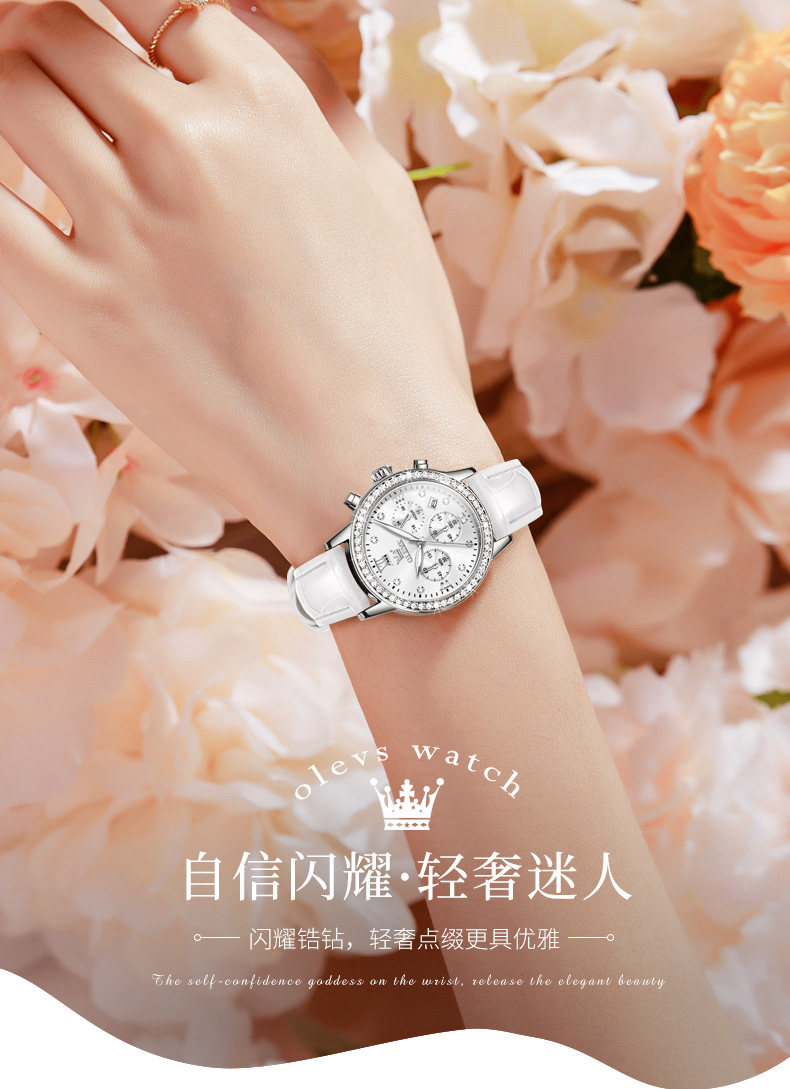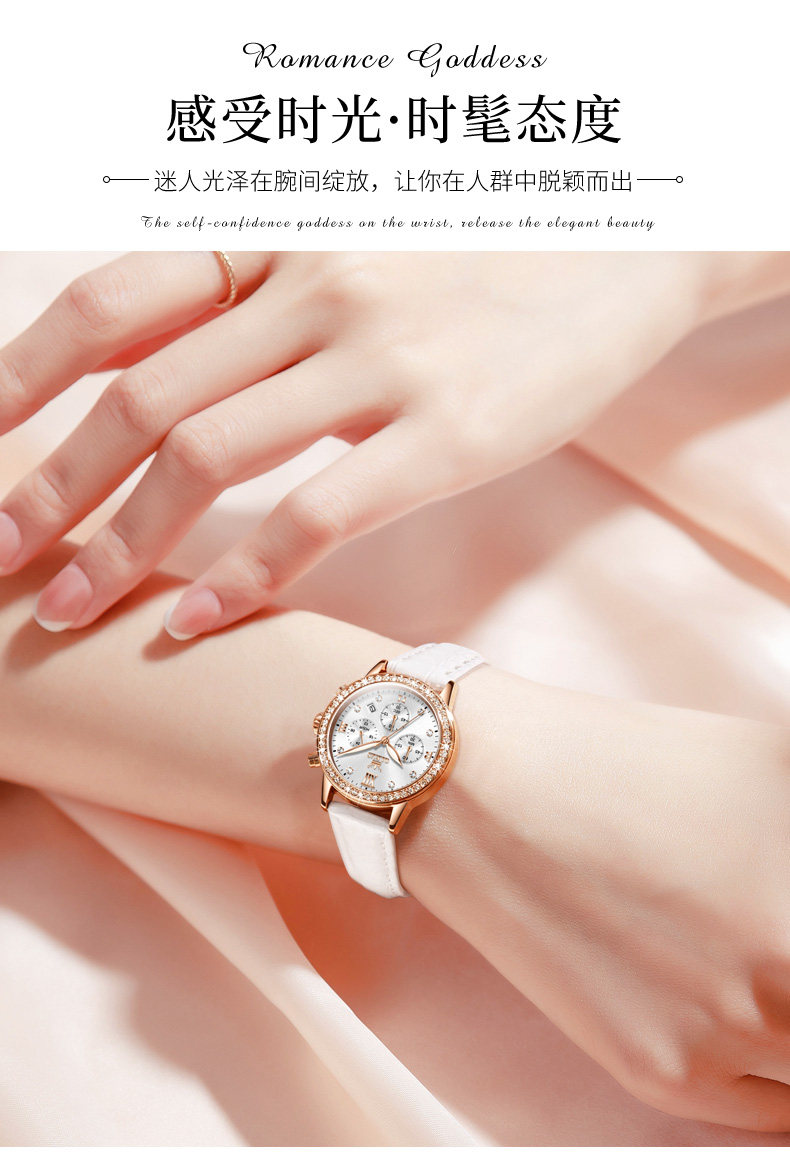 Liu Shishi's Same Style Watch for Women, Fully Automatic Multi-Function Three-Eye Women's Watch, Famous Brand Mechanical Leather Strap Quartz Waterproof