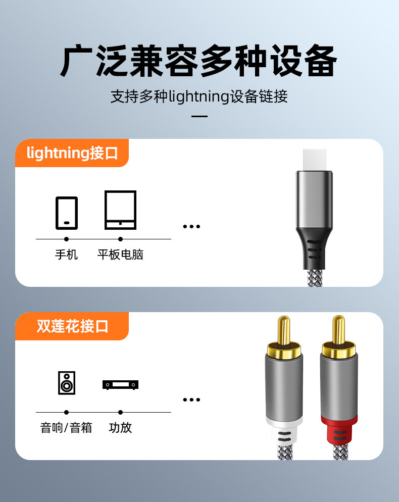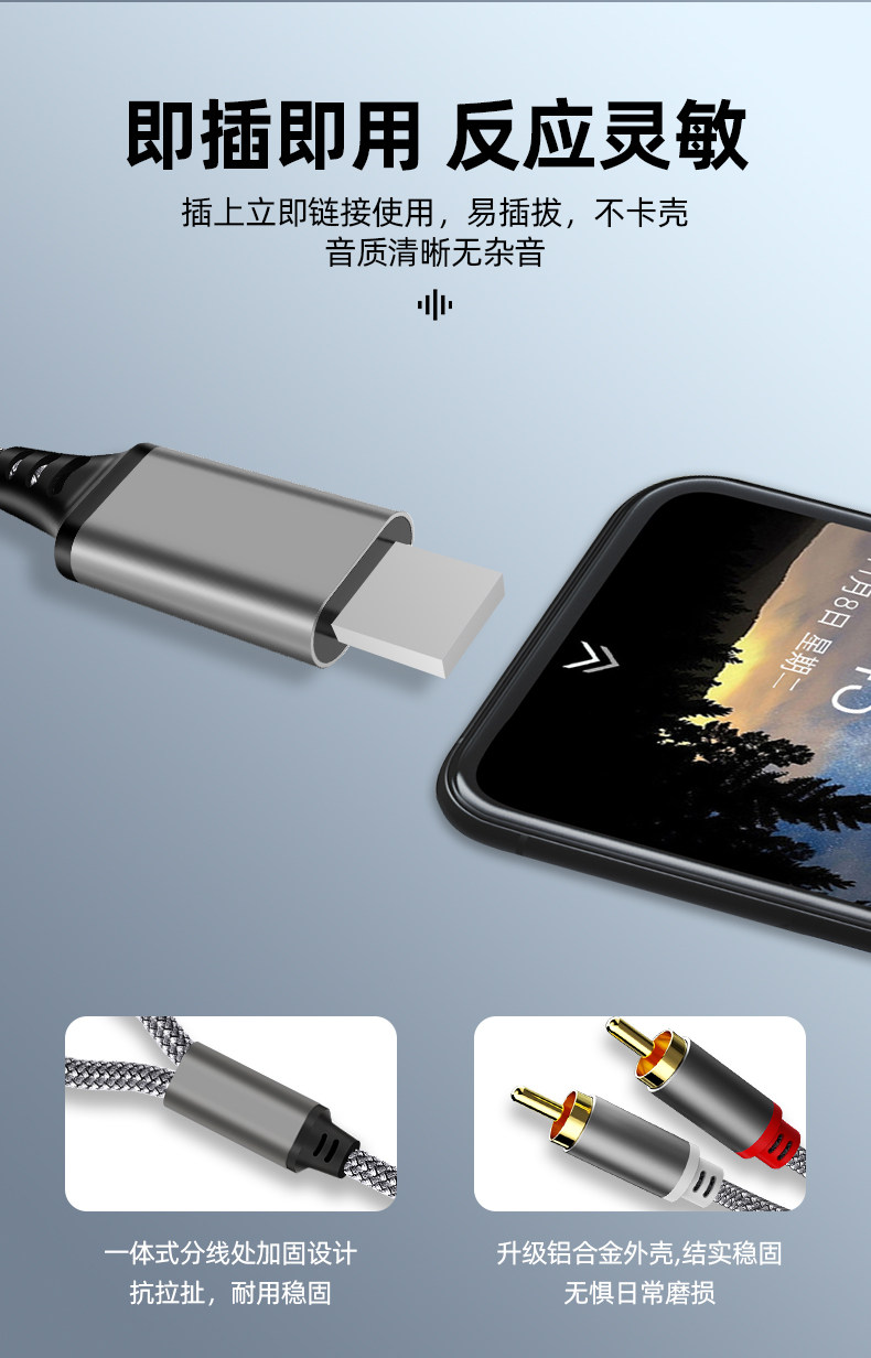 | Color Classification | 1m Fashion Gray[Apple to Dual Lotus Audio Cable],1.5m Fashion Gray[Apple to Dual Lotus Audio Cable],2m Fashion Gray[Apple to Dual Lotus Audio Cable],3m Fashion Gray[Apple to Dual Lotus Audio Cable],5m Fashion Gray[Apple to Dual Lotus Audio Cable] |