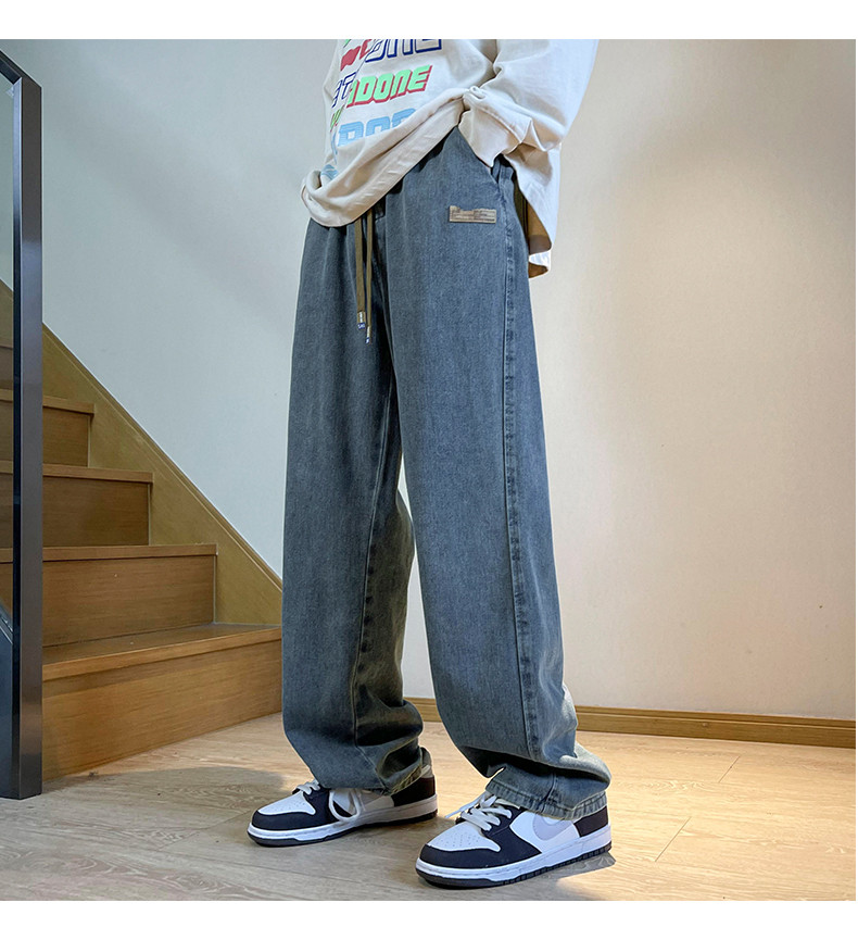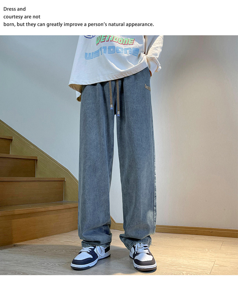 High-Waisted Straight-Leg Elastic Waist Jeans for Women, Plus Size, Loose Fit, Summer, Petite, American Retro, Thin Wide-Leg Pants