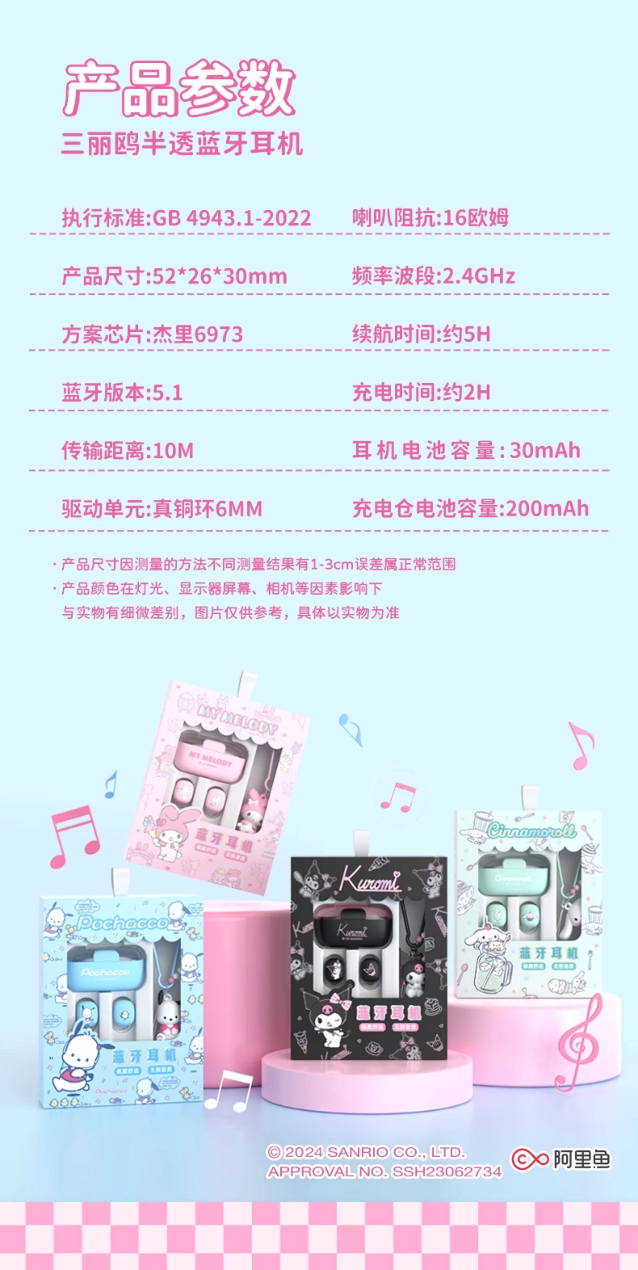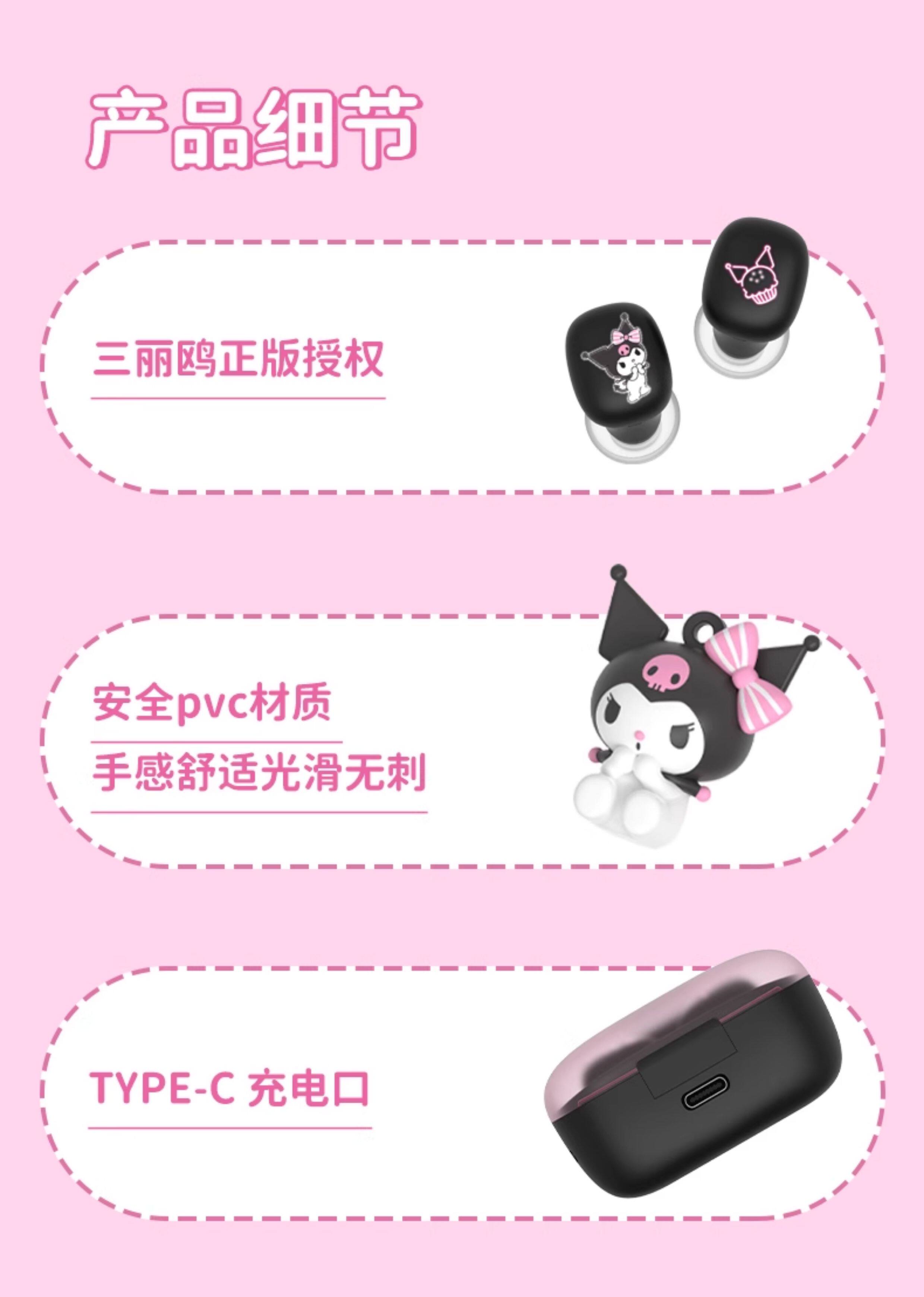 | Color Classification | Hello Kitty[Red]Mini☆Hd Call☆Long-Lasting Battery Life,Kuromi[Black]Mini☆Hd Call☆Long-Lasting Battery Life,Big Eared Dog[Blue-Green]Mini☆Hd Call☆Long-Lasting Battery Life,Melody[Powder]Mini☆Hd Call☆Long-Lasting Battery Life,Pochacco[Blue]Mini☆Hd Call☆Long-Lasting Battery Life,[Hello Kitty]Small and Mini/Lossless Sound Quality/In-Ear Design Js100,[Kuromi]Small and Mini/Lossless Sound Quality/In-Ear Design Js100,[Cinnamon Dog]Small and Mini/Lossless Sound Quality/In-Ear Design Js100,[Melody]Small and Mini/Lossless Sound Quality/In-Ear Design Js100,[Pochacco]Small and Mini/Lossless Sound Quality/In-Ear Design Js100,[Crayon Shin-Chan-Rose Red]Sugar Cube Series/In-Ear/High-Definition Noise Reduction Js100,[Crayon Shin-Chan - Blue]Sugar Cube Series/In-Ear/High-Definition Noise Reduction Js100,[Hello Kitty]Book-Style Design/Hd Noise Reduction/Ready to Use,[Kuromi]Book-Style Design/Hd Noise Reduction/Ready to Use,[Cinnamon Dog]Book-Style Design/Hd Noise Reduction/Ready to Use,[Melody]Book-Style Design/Hd Noise Reduction/Ready to Use,[Pochacco]Book-Style Design/Hd Noise Reduction/Ready to Use,[Crayon Shin-Chan - Yellow]Book Style/High-Definition Sound Quality/Long Battery Life Js-0106,[Crayon Shin-Chan - Blue]Book Style/High-Definition Sound Quality/Long Battery Life Js-0106,Hello Kitty Red Moonlight Box/High Appearance/Good Sound Quality,Hello Kitty Pink Moonlight Box/Good Looks/Good Sound Quality |