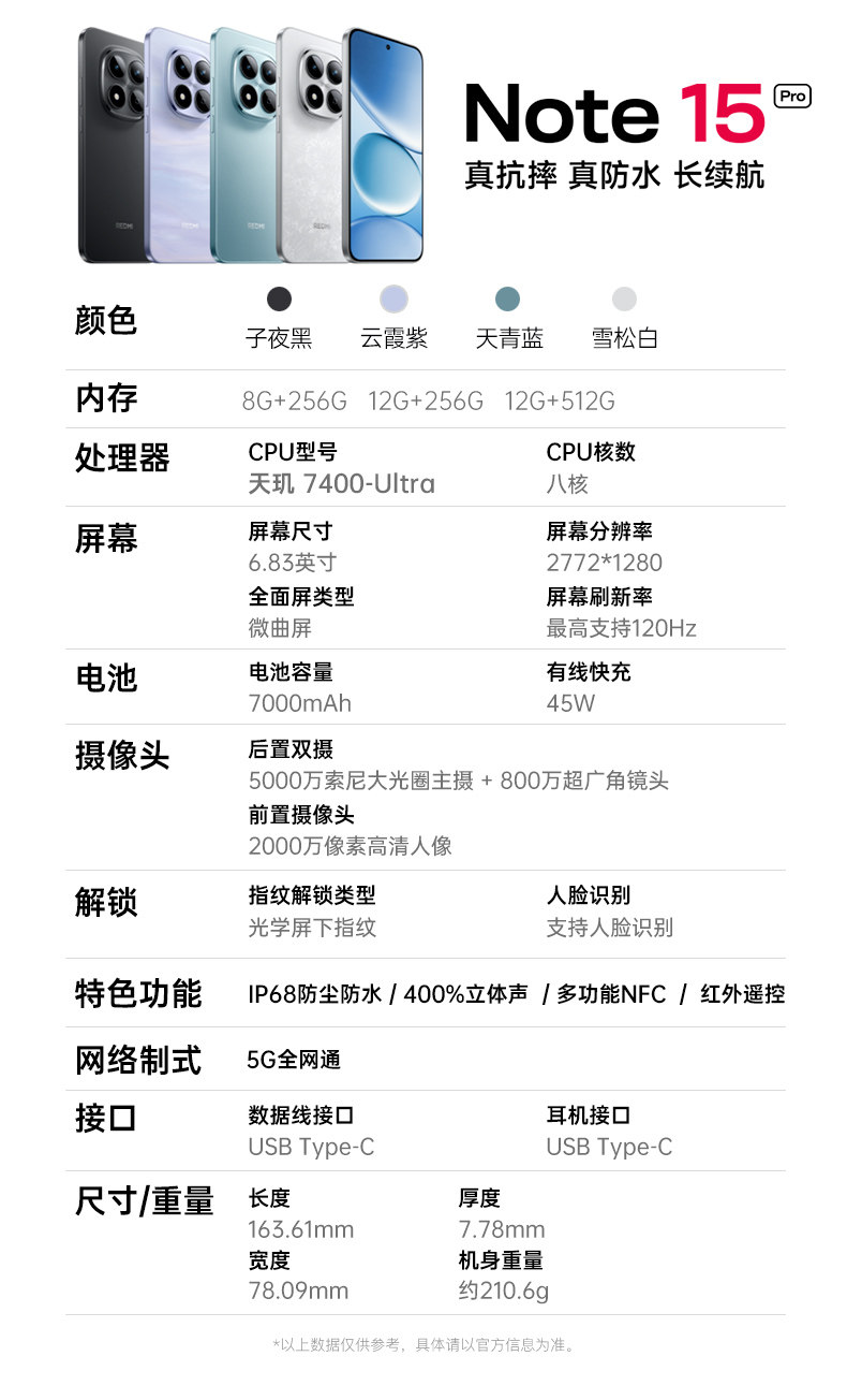 Interest-Free/Xiaomi Redmi Note 15 Pro Flagship Phone 2025 New Model Xiaomi Phone 1.5K Four Narrow-Edge Eye-Protection Straight Screen Gaming Fast Charging Student Smartphone Genuine Store