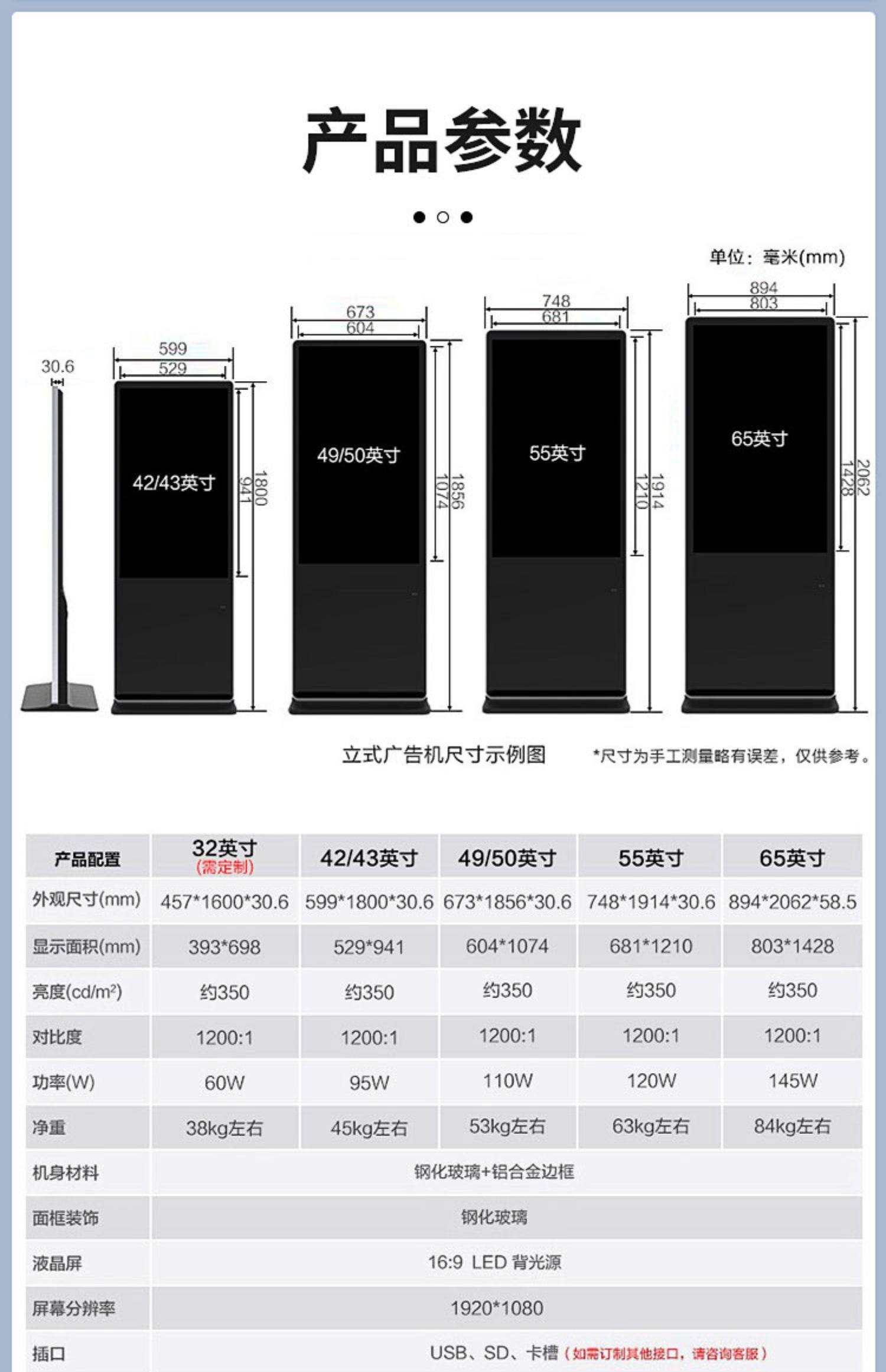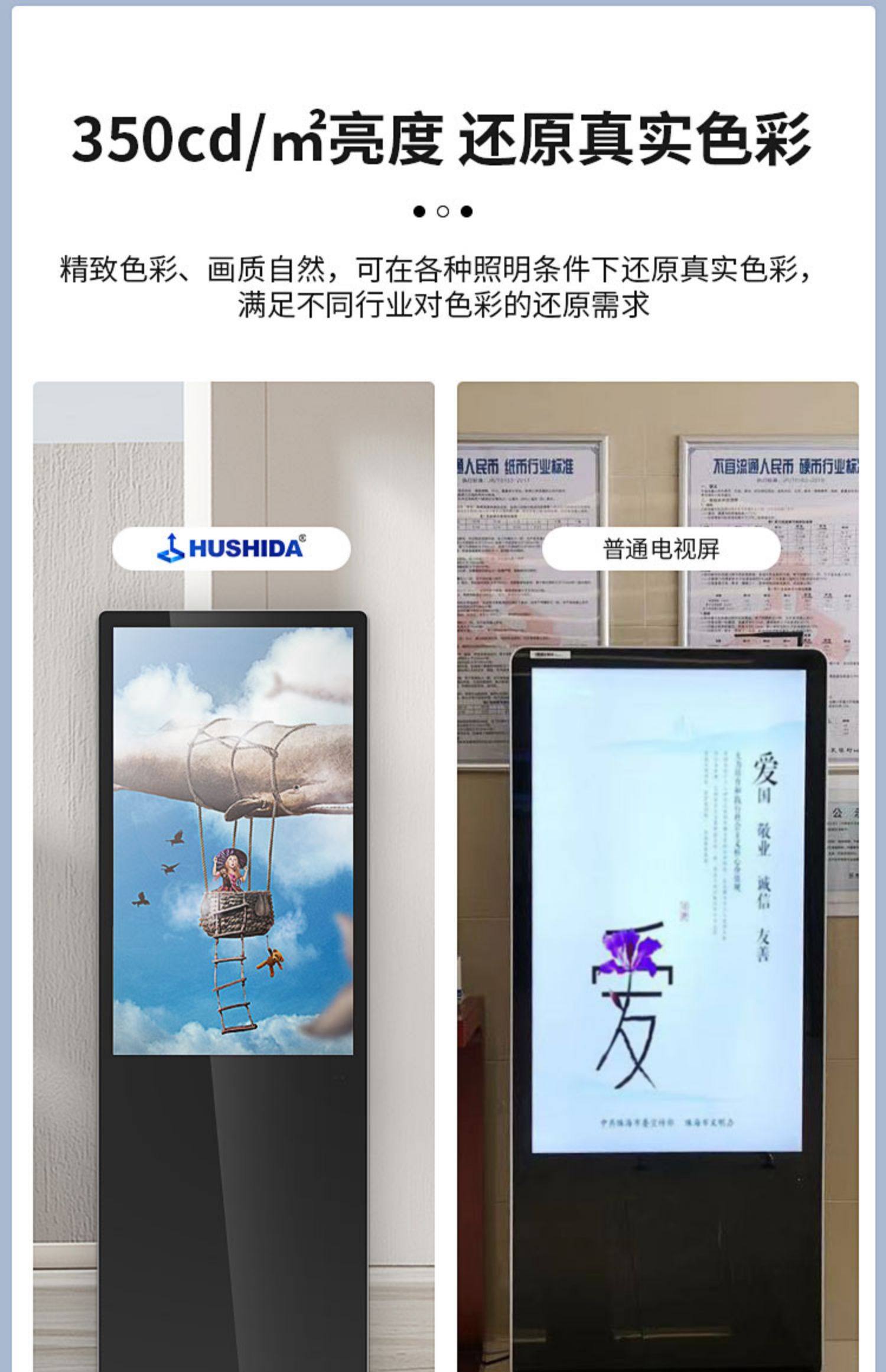 Hushida 42inch 55inch Led Lcd Display Advertising Machine Vertical High-Definition Network All-In-One Advertising Tv Promotional Screen Player Cw-Ls