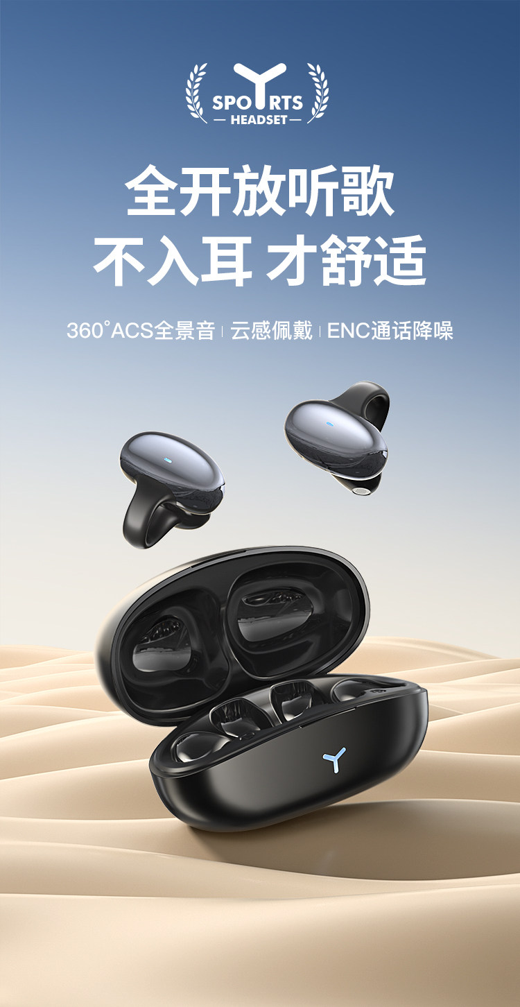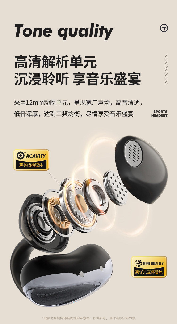 Newman Bluetooth Headset Open-Type Non-In-Ear Wireless Ear Clip Type Air Conduction Cycling and Running Sports Hm-20