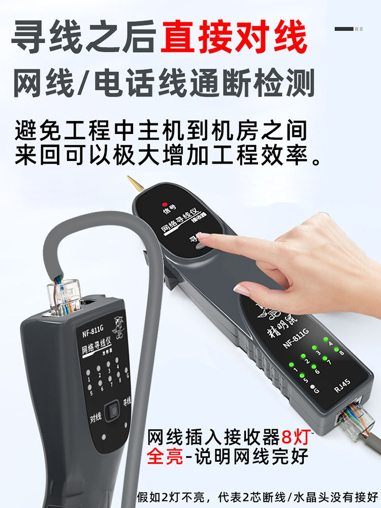 | Color Classification | Nf-811G Line Finder [Anti-Burn and 60V Voltage Resistance] + Official Gift Pack,Nf-811G Line Finder [Anti-Burn, 60V Voltage Resistance] + Official Gift Pack,(Super Cost-Effective) Nf-811G + Original 9V Battery, 10 Pieces in Total + [Official Gift Pack],811g+ Category 5E Crystal Head 50 Pieces [Gold-Plated to Standard] + [Official Gift Bag],Recommended for Frequent Network Cable Work: 811g + Network Cable Straightener Tool [Untangles and Straightens - Boosts Efficiency] + [Official Gift Pack],Industry Recommended 811g+ Multi-Function Network Cable Crimper (Crimping/Cutting/Stripping – All-In-One) + [Official Gift Pack],Industrial Recommendation: 811g + Industrial-Grade Network Cable Crimper (Ratchet-Action for Easier Use) + [Official Gift Pack],811g+ Right-Hand Cat7 Crimper with Dovetail Support + Official Gift Pack,Professionals Recommend 811g+ Category 7 Network Cable Pliers (Can Cut Perforated Crystal Heads) [Official Gift Pack],It Is Recommended to Use 811g+ Charging Set Frequently [Cycle Use Saves More Money] + [Official Gift Pack],For Frequent Use, We Recommend the 811g+ with Two Independent Rechargeable Batteries [Extensive Use Saves Huge Money] + [Official Gift Pack] |