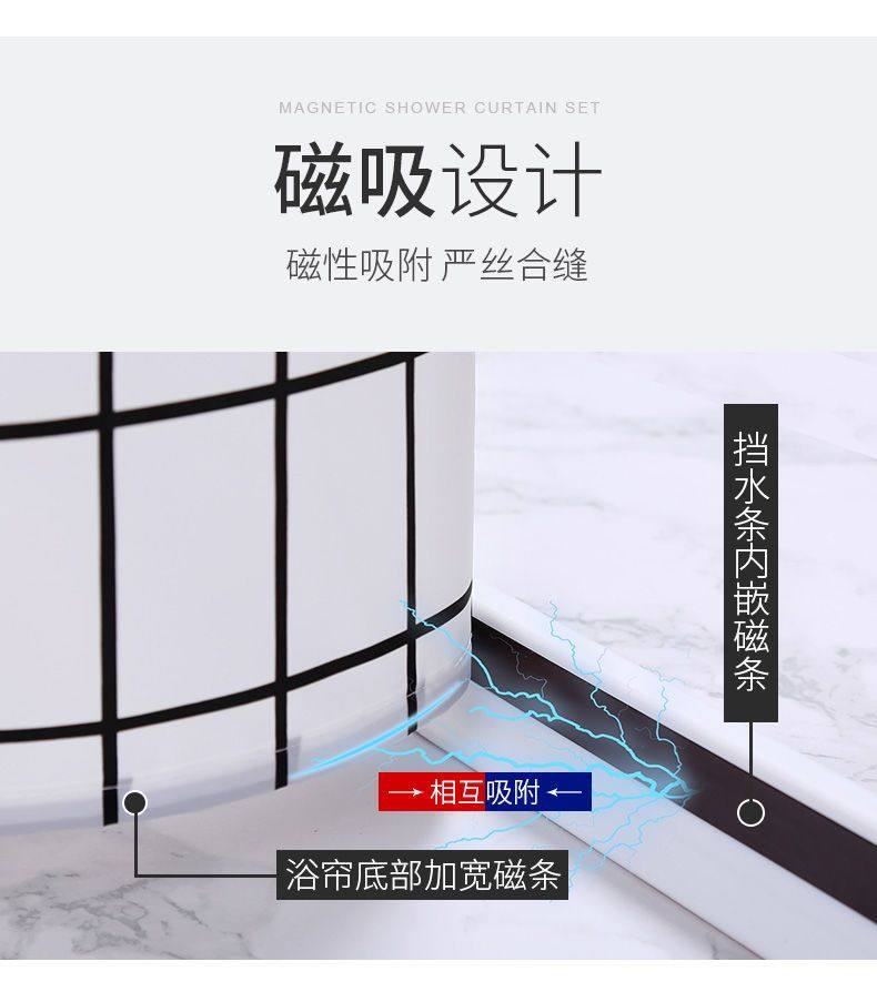 Bathroom Shower Curtain Set, Thickened Waterproof Fabric, No-Drill Magnetic Bathroom Curtain, Door Curtain, Partition Curtain