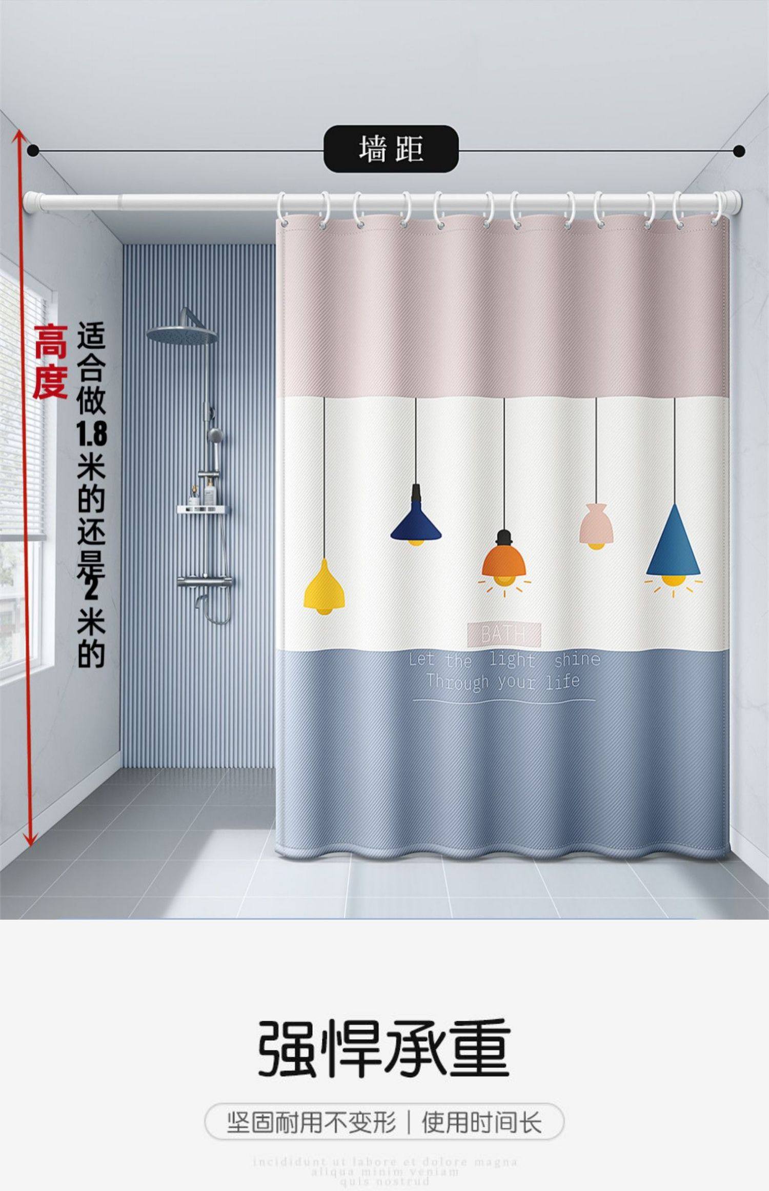| Size | Curtain Width 120 Height 180 + Rod + Water Retaining Strip 120,Curtain Width 120 Height 200 + Rod + Water Retaining Strip 120,Curtain Width 150 Height 180 + Rod + Water Retaining Strip 150,Curtain Width 150 Height 200 + Rod + Water Retaining Strip 150,Curtain Width 180 Height 180 + Rod + Water Retaining Strip 180,Curtain Width 180 Height 200 + Rod + Water Retaining Strip 180,Curtain Width 200 Height 200 + Rod + Water Retaining Strip 200,Curtain Width 240 Height 200 + Rod + Water Retaining Strip 240,Width 120*Height 180 (Comes with Hook) + Telescopic Rod,Width 120*Height 200 (Comes with Hook) + Telescopic Rod,Width 150*Height 180 (Comes with Hook) + Telescopic Rod,Width 150*Height 200 (Comes with Hook) + Telescopic Rod,Width 180*Height 180 (Comes with Hook) + Telescopic Rod,Width 180*Height 200 (Comes with Hook) + Telescopic Rod,Width 200*Height 200 (Comes with Hook) + Telescopic Rod,Width 240*Height 200 (Comes with Hook) + Telescopic Rod,Single Curtain 120*180 (Excluding Rod),Single Curtain 120*200 (Excluding Rod),Single Curtain 150*180 (Excluding Rod),Single Curtain 150*200 (Excluding Rod),Single Curtain 180*180 (Excluding Rod),Single Curtain 180*200 (Excluding Rod),Single Curtain 200*200 (Excluding Rod),Single Curtain 240*200 (Excluding Rod),Single Curtain 300*200 (Excluding Rod) |