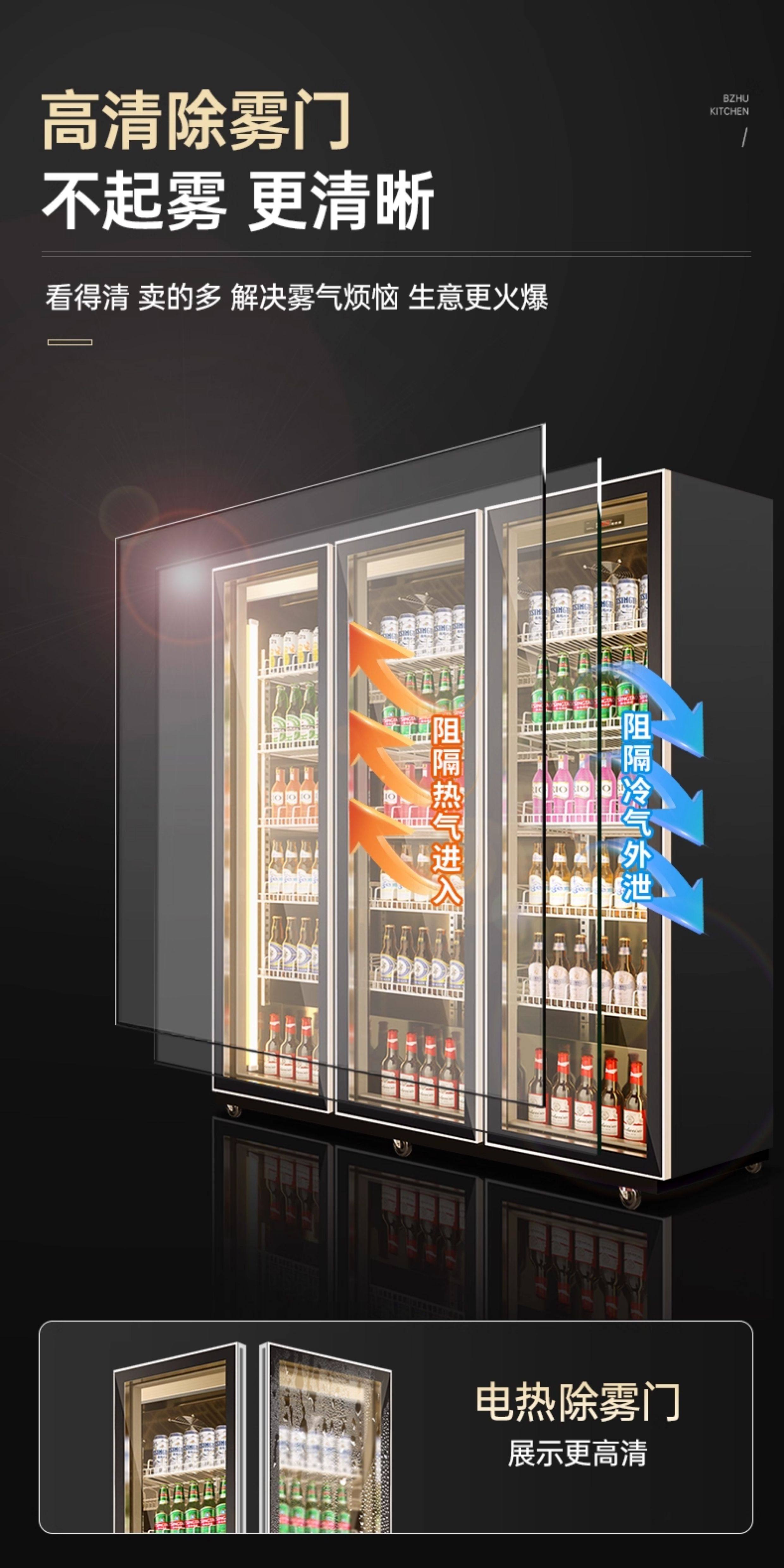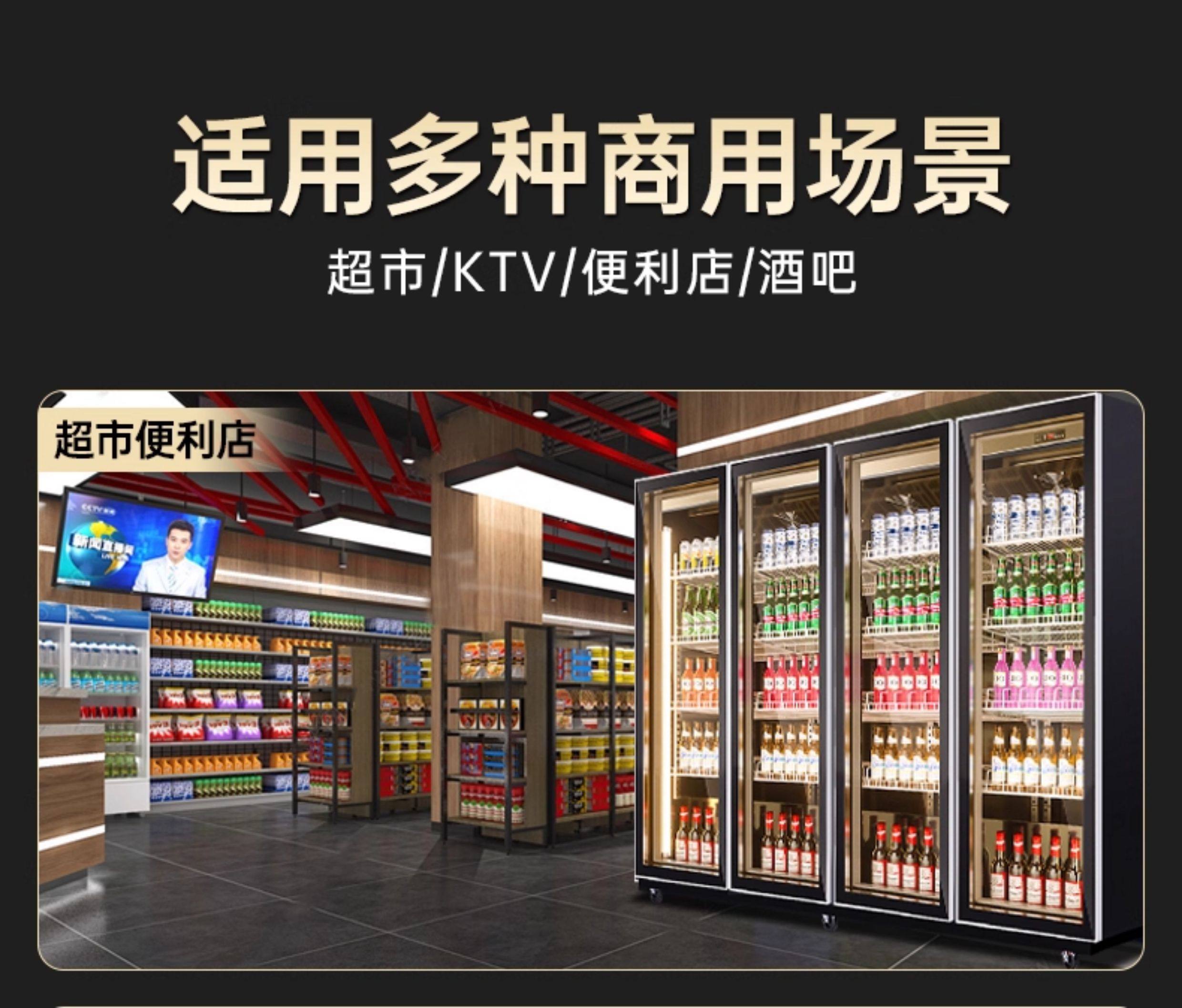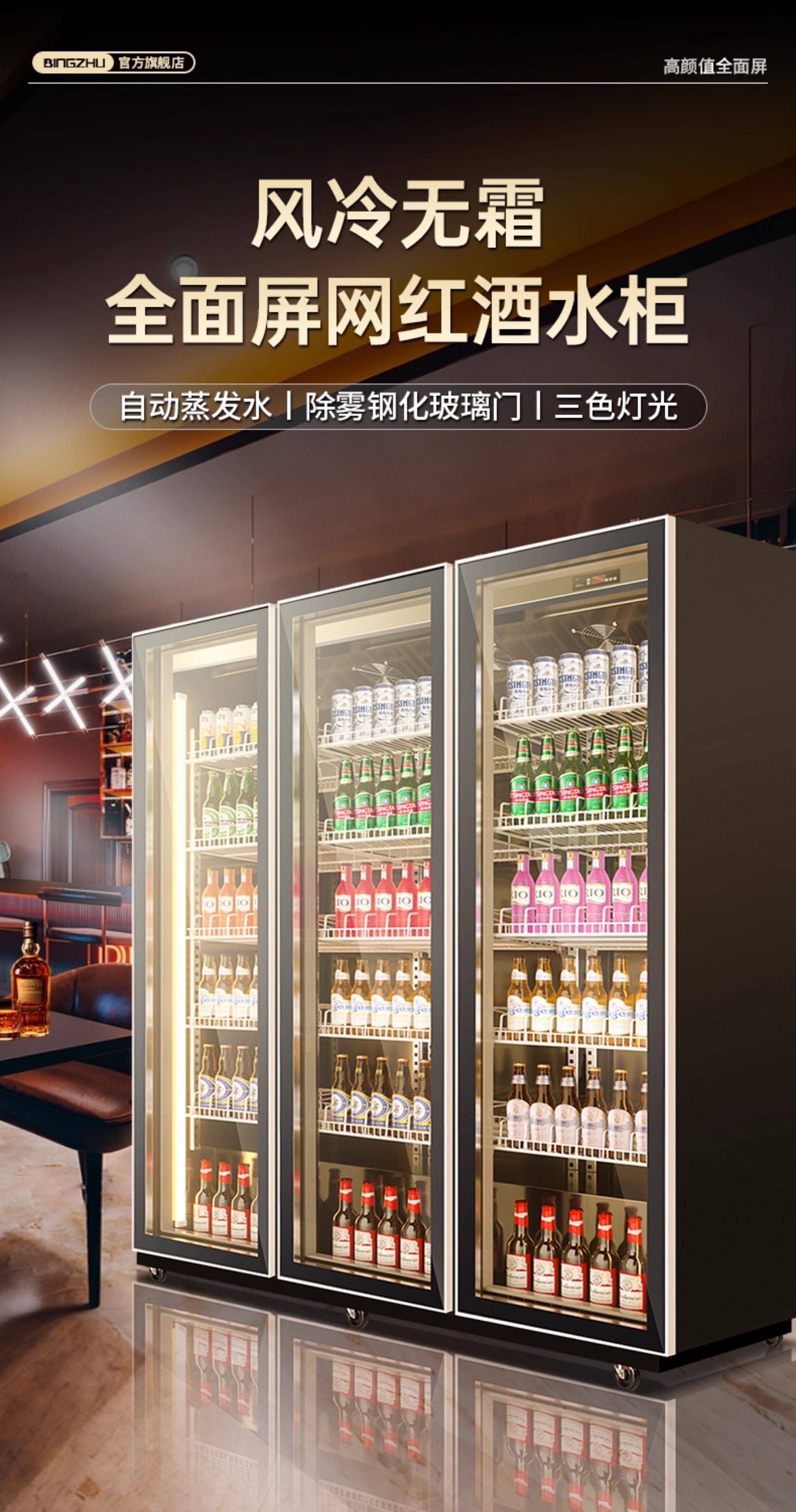 Ice-Casting Beer Cooler, Beverage Cabinet, Wine Display Cabinet, Refrigerated Trendy Freezer, Commercial Freezer, Three or Four-Door Bar Refrigerator