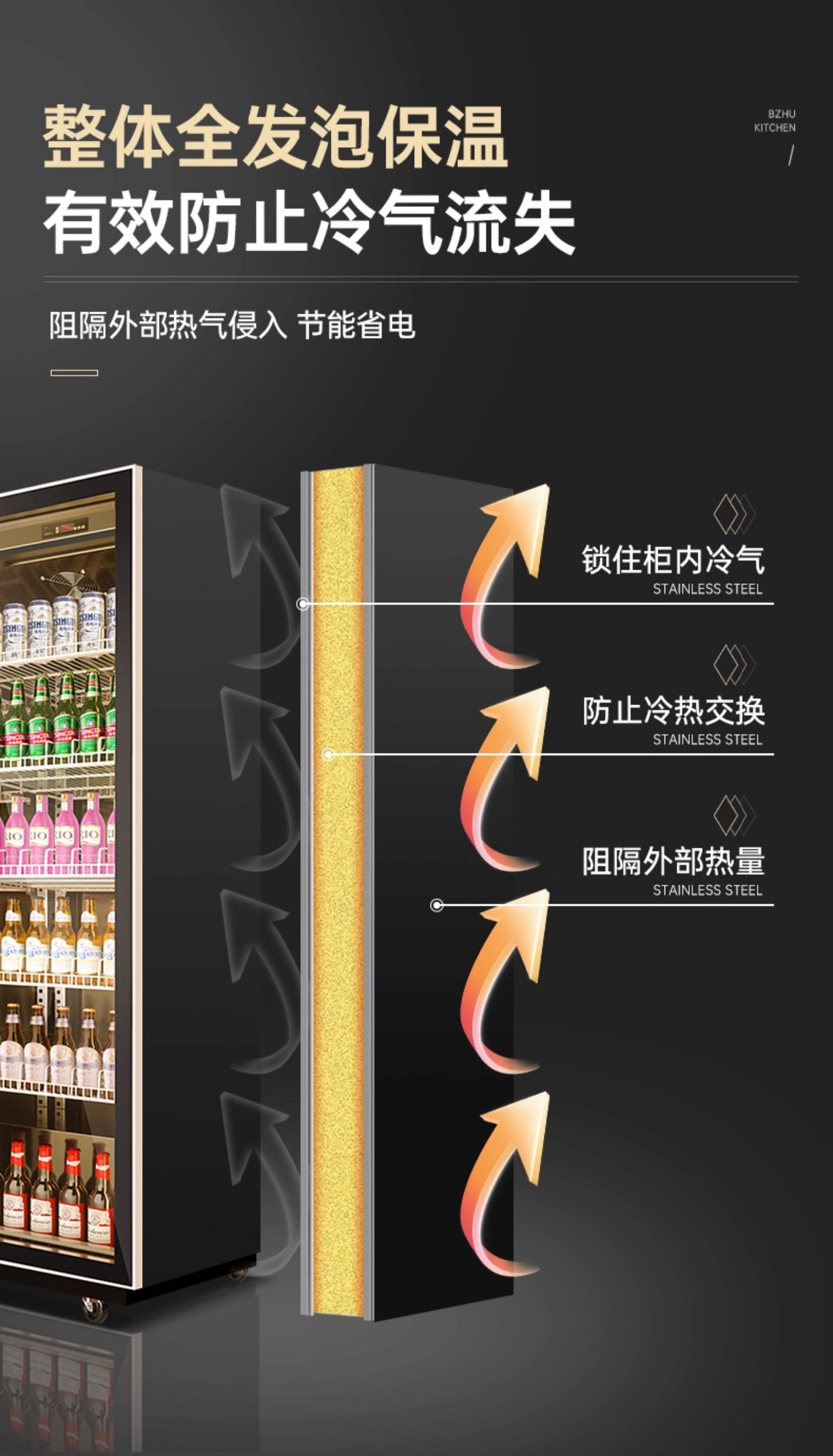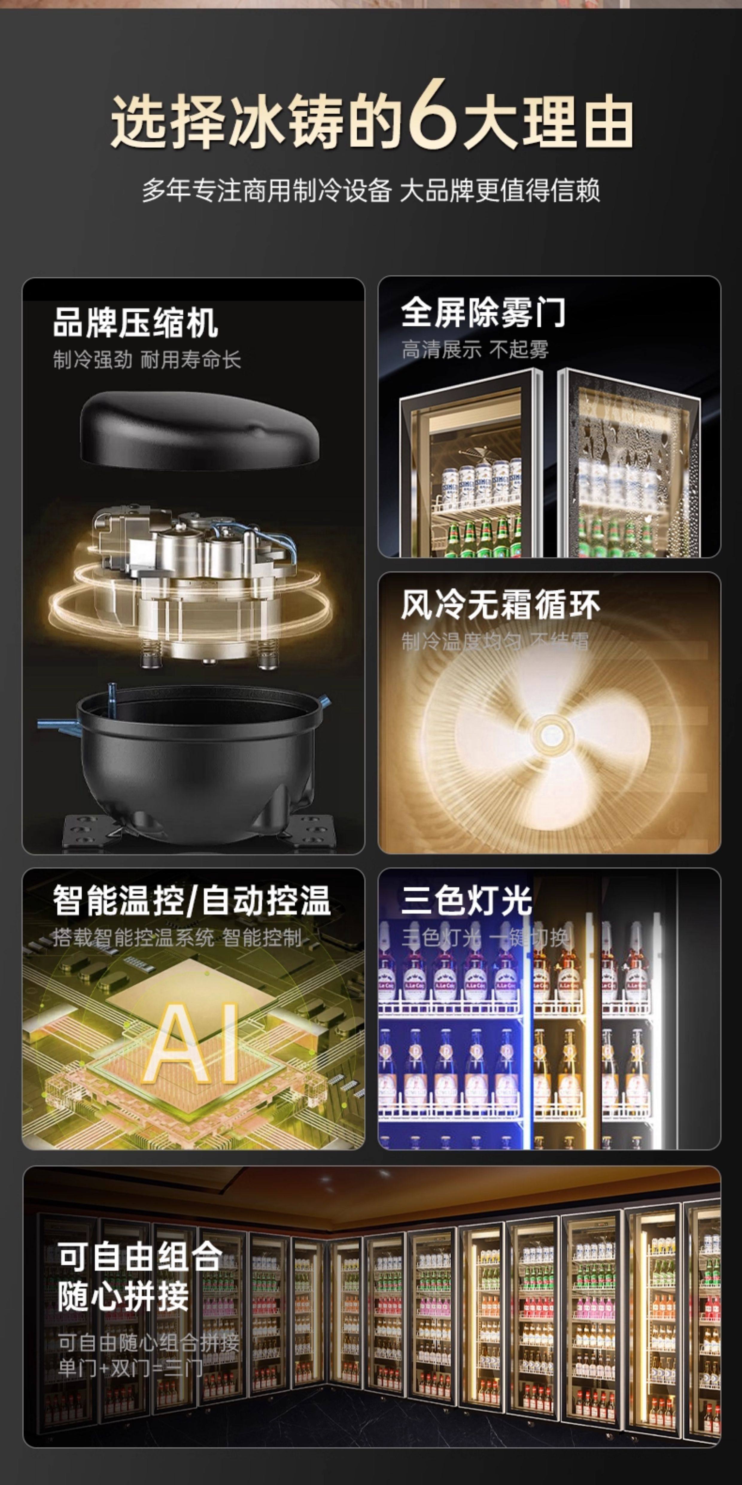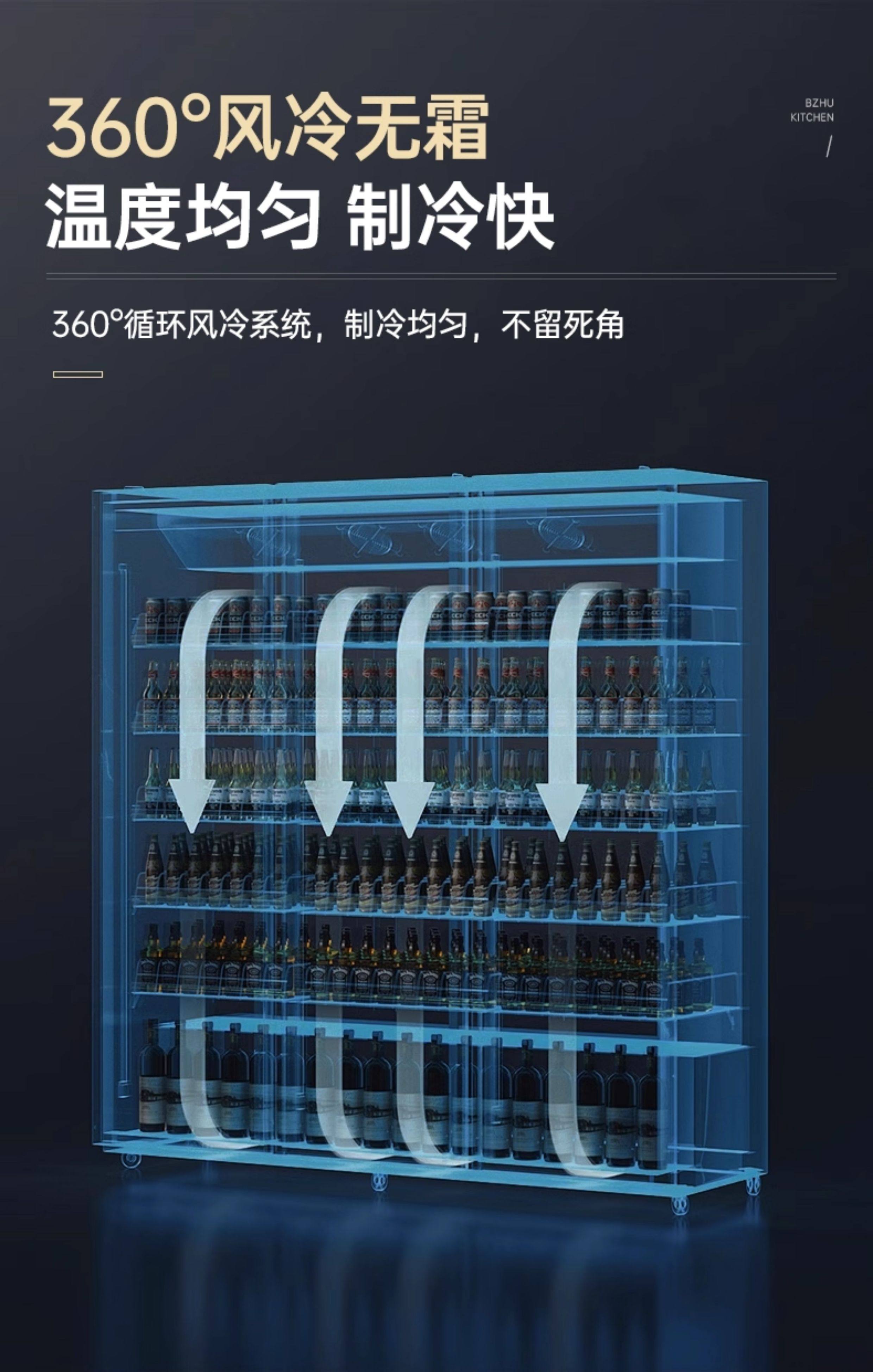 Ice-Casting Beer Cooler, Beverage Cabinet, Wine Display Cabinet, Refrigerated Trendy Freezer, Commercial Freezer, Three or Four-Door Bar Refrigerator